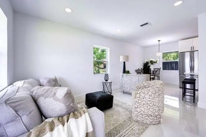 **SELLER MOTIVATED**Renovated three bedroom home with city permit, new kitchen and appliances, new bathroom, porcelain floor and all impact windows and front door. property has separate detached 96sq ft storage building. The home has an attached screened patio. Lots of parking. Close to shopping, schools and highway.
