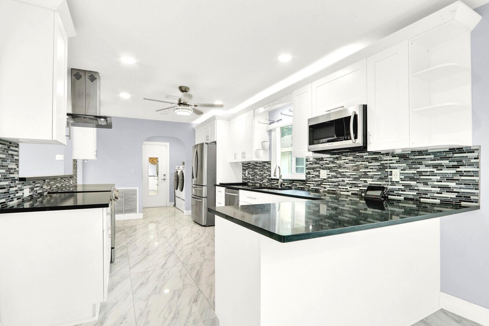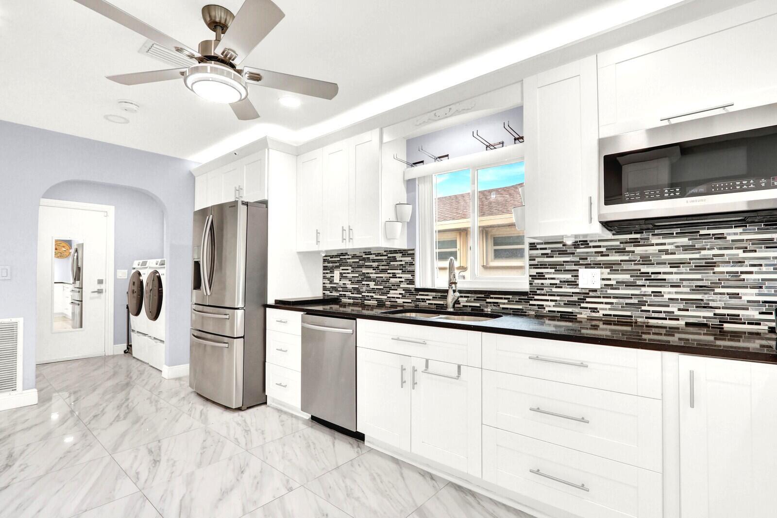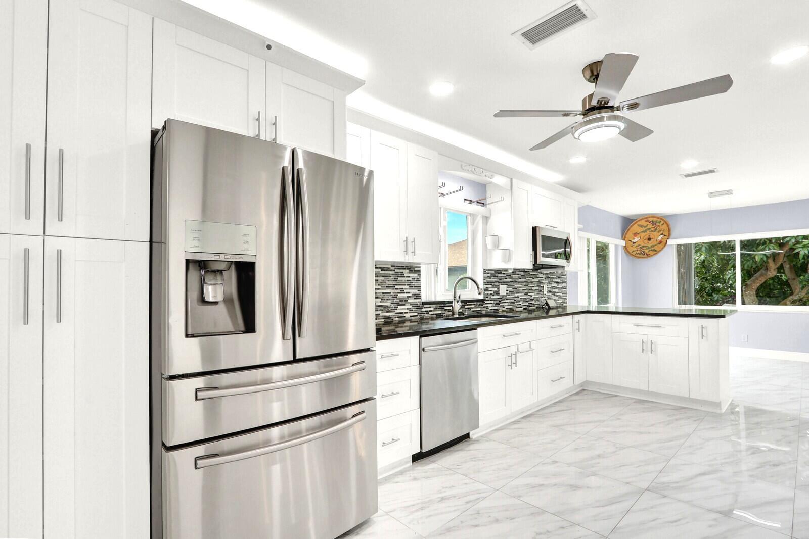 NEW ROOF along with IMPACT DOORS & WINDOWS. This beautifully updated single-family home offers nearly 2,200 square feet of sophisticated living space, featuring 3 bedrooms, 2 bathrooms, and a convenient 2-car garage. Nestled within the desirable, active 55+ community of Pine Tree Village which offers resort-style amenities. As you enter, you're welcomed by elegant tile flooring throughout the main living areas. The open-concept kitchen is a true highlight, showcasing luxurious countertops, contemporary shaker-style cabinets, premium stainless-steel appliances, and abundant recessed lighting. Natural light floods the home through large windows and sliding doors, enhancing the spacious and airy feel of every generously sized room. The primary suite is a private retreat, complete with a large walk-in closet and a bright, fully updated ensuite bathroom. Step outside to discover a beautifully redesigned exterior living space, featuring paver walkways that wrap around the home and lead to expansive patios. Here are some inspiring examples of the modern kitchen style featured in this home: The outdoor area includes a spacious front paved patio perfect for relaxation and entertaining, plus a serene backyard Jacuzzi ideal for unwinding in the evenings. Enjoy the Florida lifestyle with these inviting backyard paver and spa setups. Key Features & Upgrades: New Roof August 2025, paired with Impact-resistant doors and windows for superior hurricane protection Comprehensive video security system for added peace of mind. Advanced motion sensors and smart outlets, seamlessly integrate intelligent technology for enhanced convenience, efficiency, and modern living. Pine Tree Village provides an active lifestyle with Resort Style amenities such as Community Pool, Fitness center, and Pickle Ball, all just minutes from the beach, highly rated restaurants, shopping, and easy access to I-95.This move-in-ready home offers the perfect blend of comfort, security, and community. Schedule your private showing today and experience the lifestyle you've been waiting for!