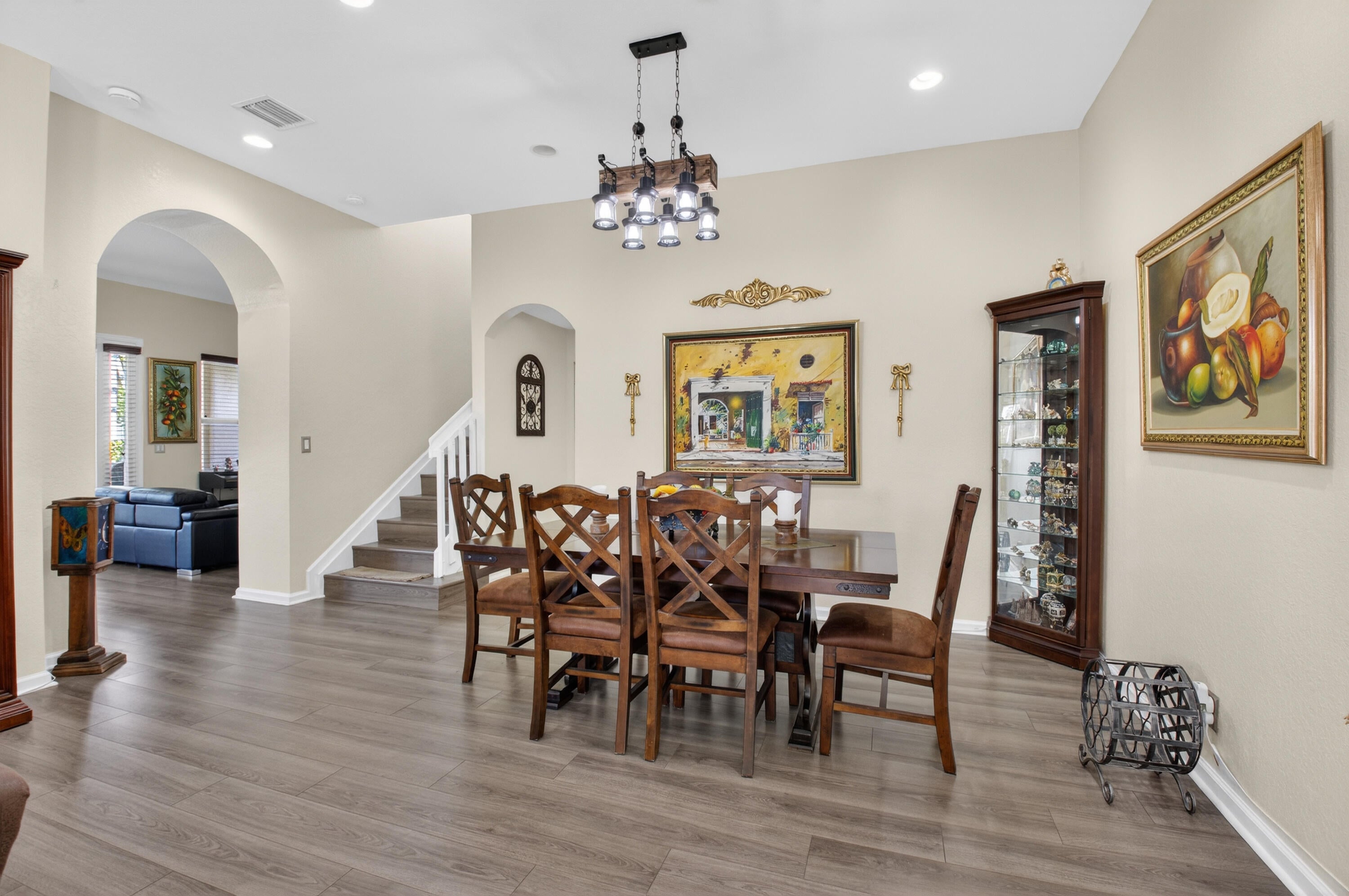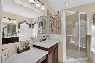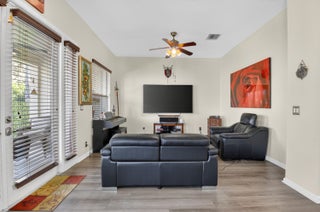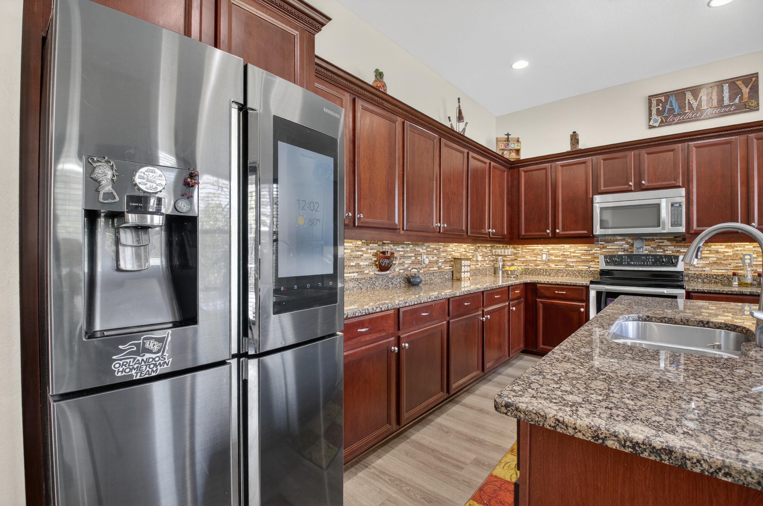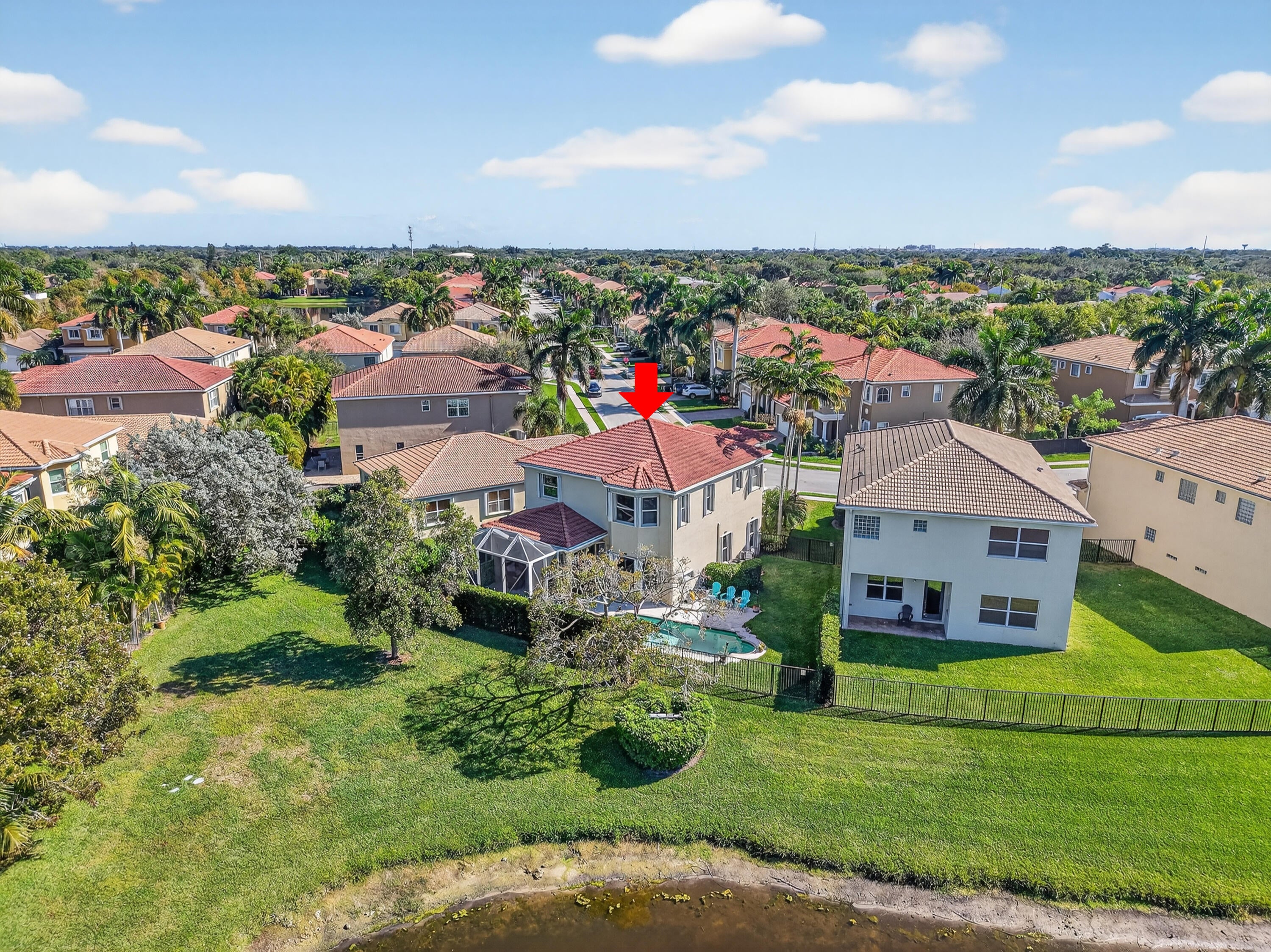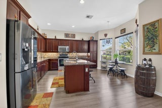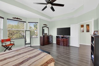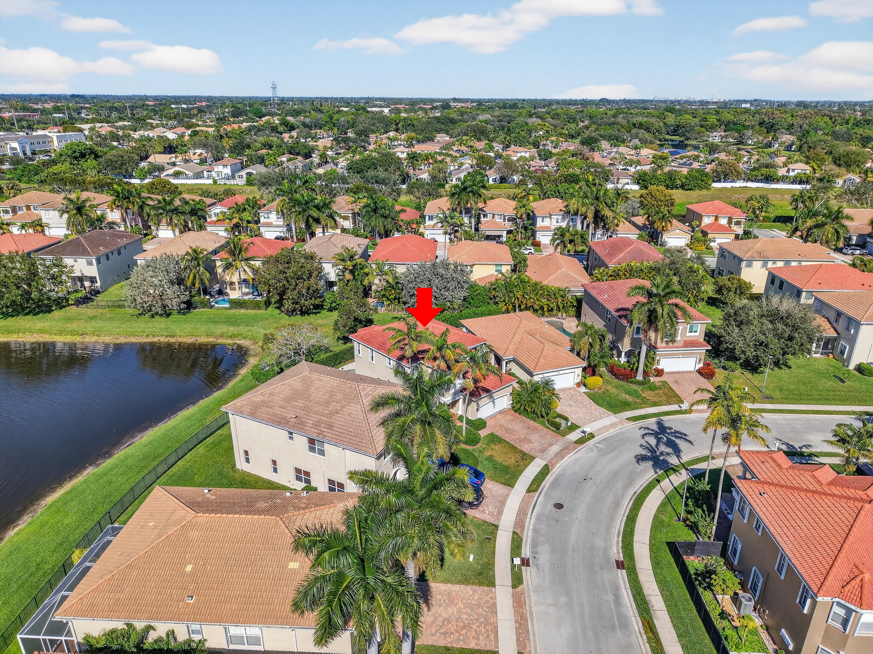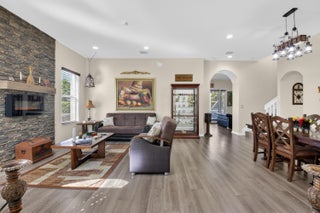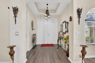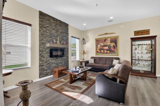 Stunning lakefront home with 4 bedrooms, 2.5 baths, and a 2-car garage on a premium pie-shaped lot. HOA includes internet, cable, and lawn care. Enjoy peaceful water views from the screened patio, heated pool, and travertine pool deck. High-end laminate flooring runs through main living areas, staircase, and primary bedroom. The modern kitchen offers wood cabinetry, granite countertops, stainless steel appliances, snack bar, and breakfast area open to the family room. Features include a stone-accent wall with electric fireplace, wireless alarm with cameras, EV charger, shutters, and paver driveway. Community amenities include a pool and children's playground.