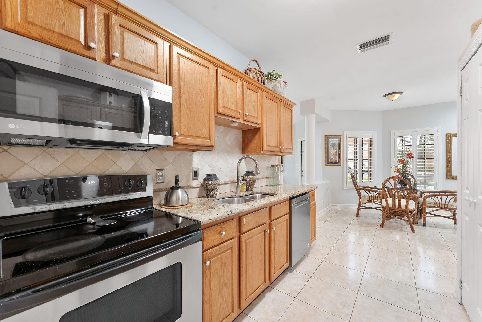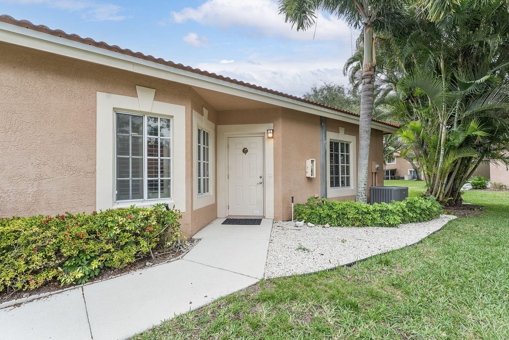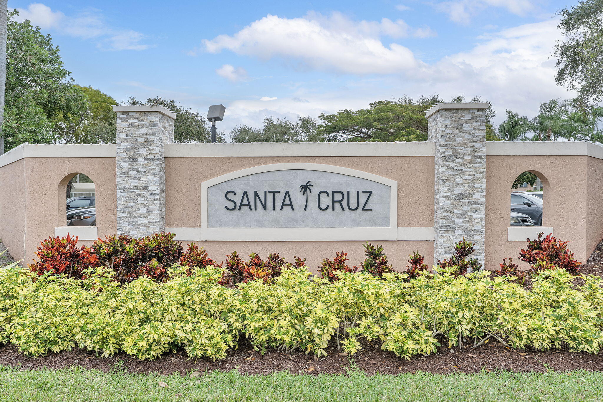 Welcome home to Santa Cruz. This cozy gated end unit townhome is located in central Boynton Beach and is 5 minutes from everything. This unit has 2 deeded parking spots right out front and is walking distance to the community pool. All fresh paint and new light fixtures give this unit a clean feel. 1 level townhome with a split floor plan. Enjoy privacy in the master which offers a large walk in closet and walk in shower. 2 guest rooms on the other side with a full bathroom. Kitchen offers granite countertops and SS appliances. Dining room just off the kitchen for convenience. W/D in unit. Private patio in the back. Close to shopping, dining, beach and places of worship. Complete Roof maintenance and replacement is covered under the HOA. AC is 2024