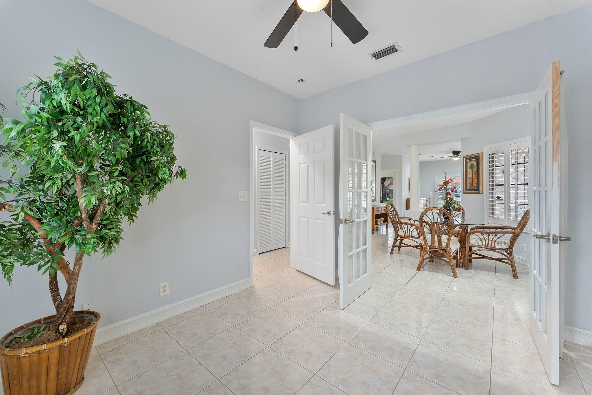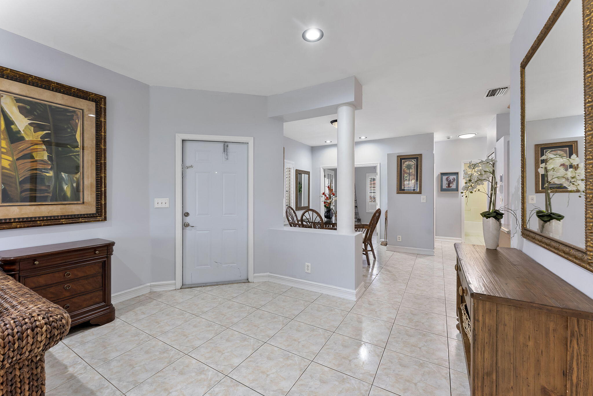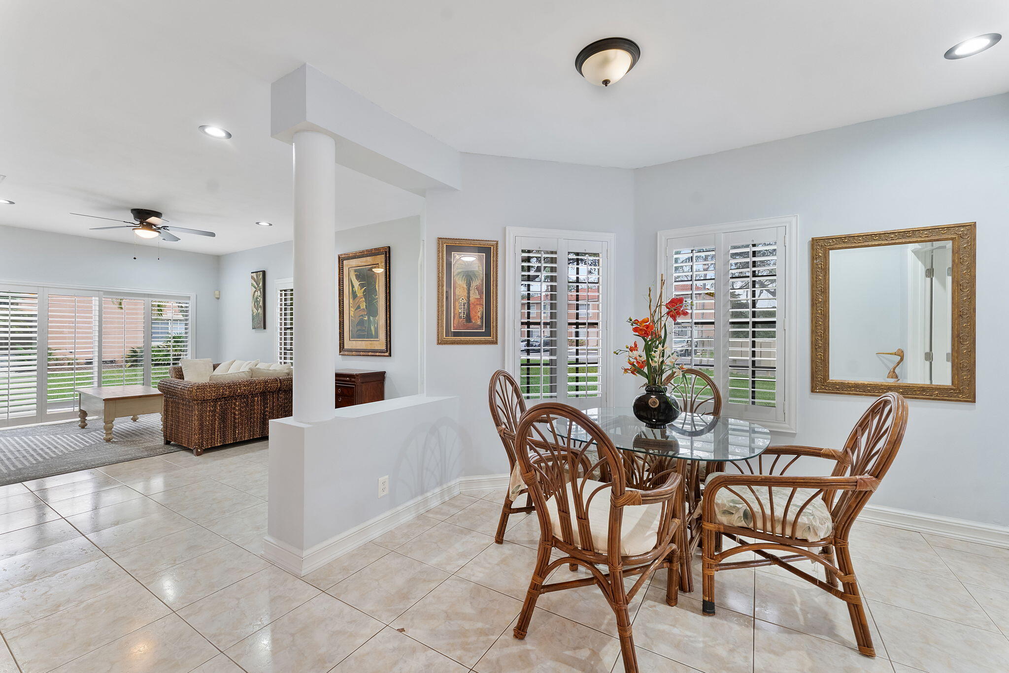 Welcome home to Santa Cruz. This cozy gated end unit townhome is located in central Boynton Beach and is 5 minutes from everything. This unit has 2 deeded parking spots right out front and is walking distance to the community pool. All fresh paint and new light fixtures give this unit a clean feel. 1 level townhome with a split floor plan. Enjoy privacy in the master which offers a large walk in closet and walk in shower. 2 guest rooms on the other side with a full bathroom. Kitchen offers granite countertops and SS appliances. Dining room just off the kitchen for convenience. W/D in unit. Private patio in the back. Close to shopping, dining, beach and places of worship. Complete Roof maintenance and replacement is covered under the HOA. AC is 2024