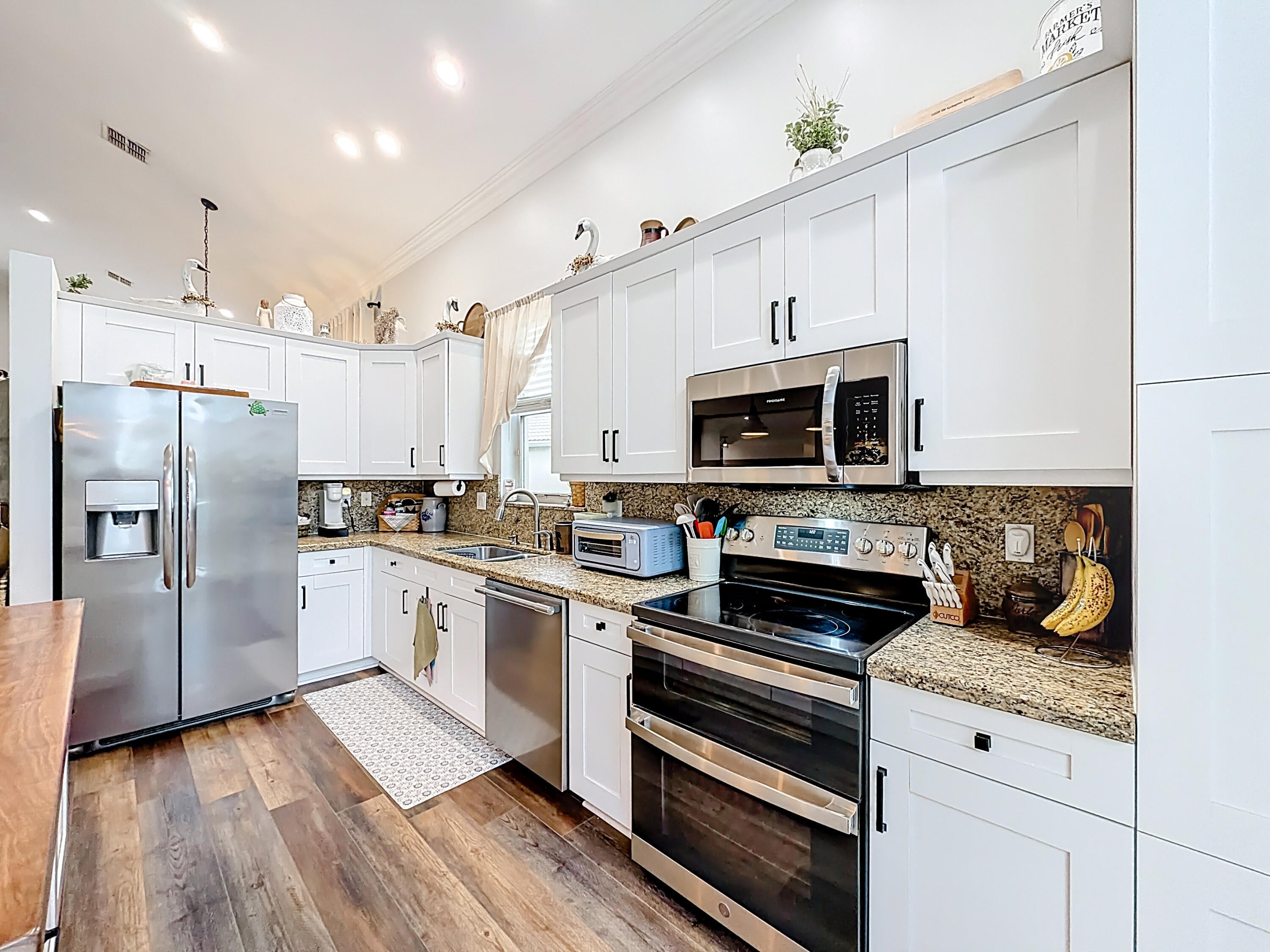 Auto Garage Open, Cooktop, Dishwasher, Disposal, Dryer, Fire Alarm, Microwave, Range - Electric, Refrigerator, Smoke Detector, Washer, Water Heater - Elec