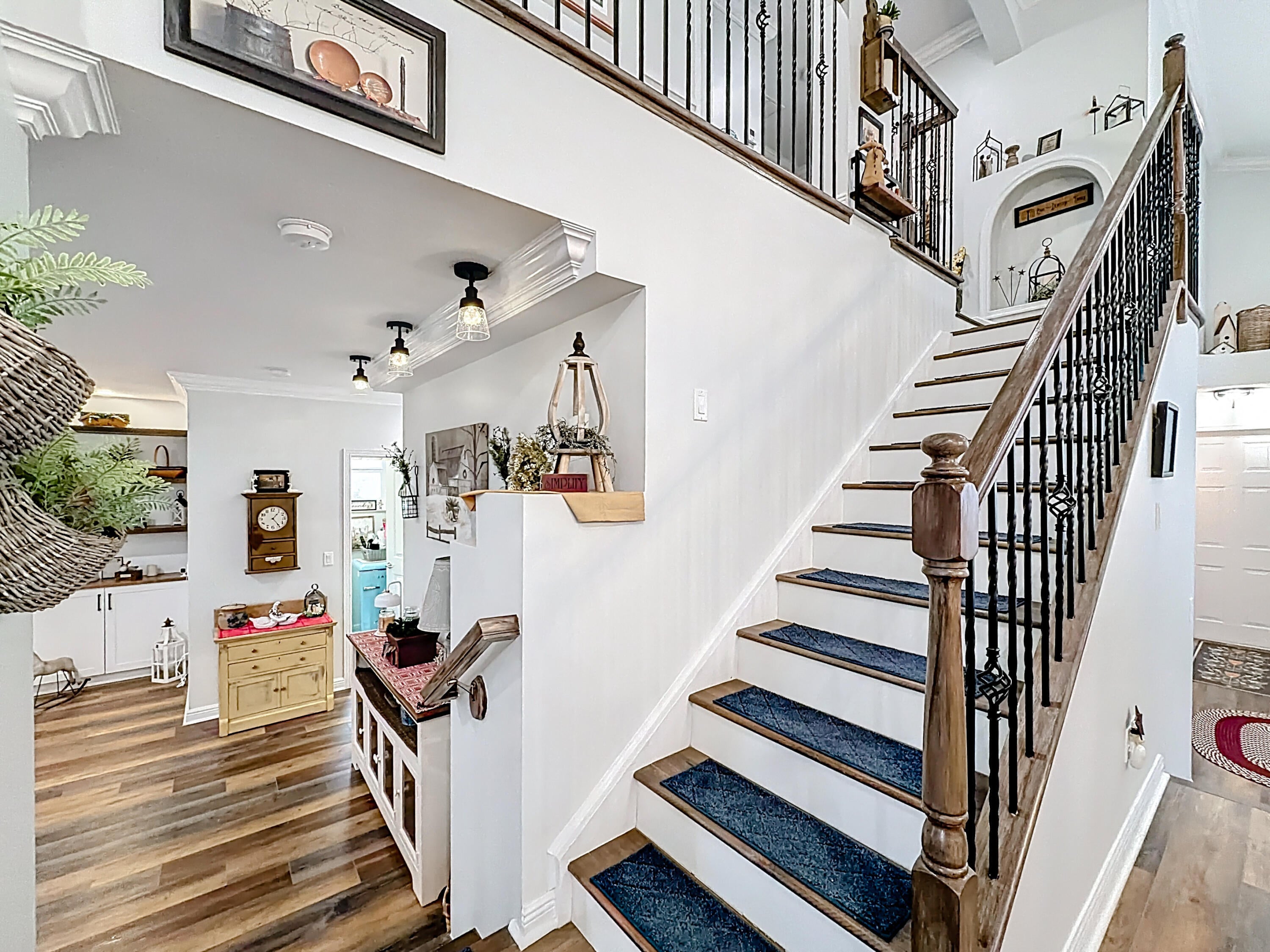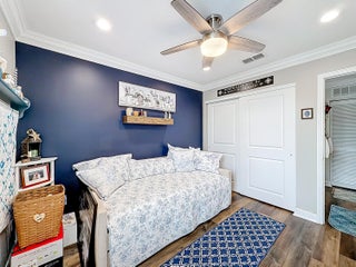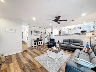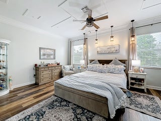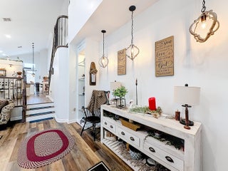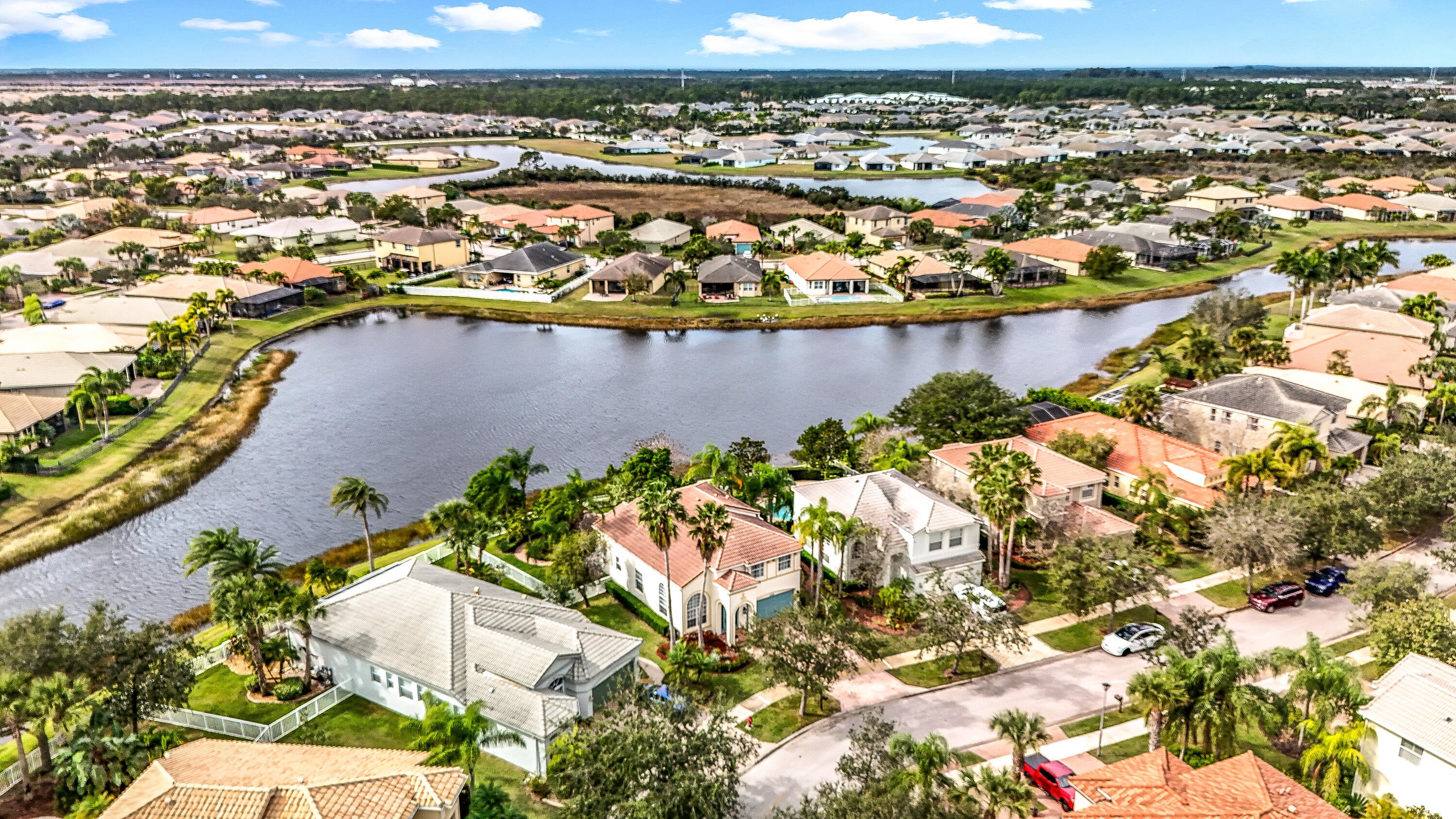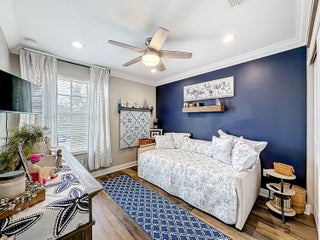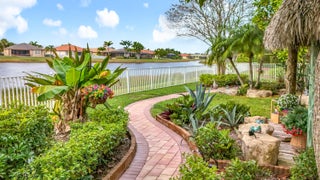 Picture perfect 2 story, former model home, in the exclusive community of Town Park at Tradition! This immaculate home has been meticulously maintained by the current owners. This was a former model home in the community and therefore comes with a ton of added extras. Crown molding throughout the home, upgraded fixtures, quality laminate floors and MORE! You'll be safe and secure in this home with concrete block construction on both floors and IMPACT GLASS on all windows. The backyard is a tropical paradise with a wide lake view, fence, and beautiful landscaping. Mango, avocado, banana trees, and a Tiki Hut! BRAND NEW screened lanai installed 2025. Most furniture is negotiable and all furniture in the 2nd and 3rd bedrooms are included! Cable TV with HBO, high speed internet and monitored security alarm are ALL included in your HOA fee. Hurry, this beautiful home won't last!