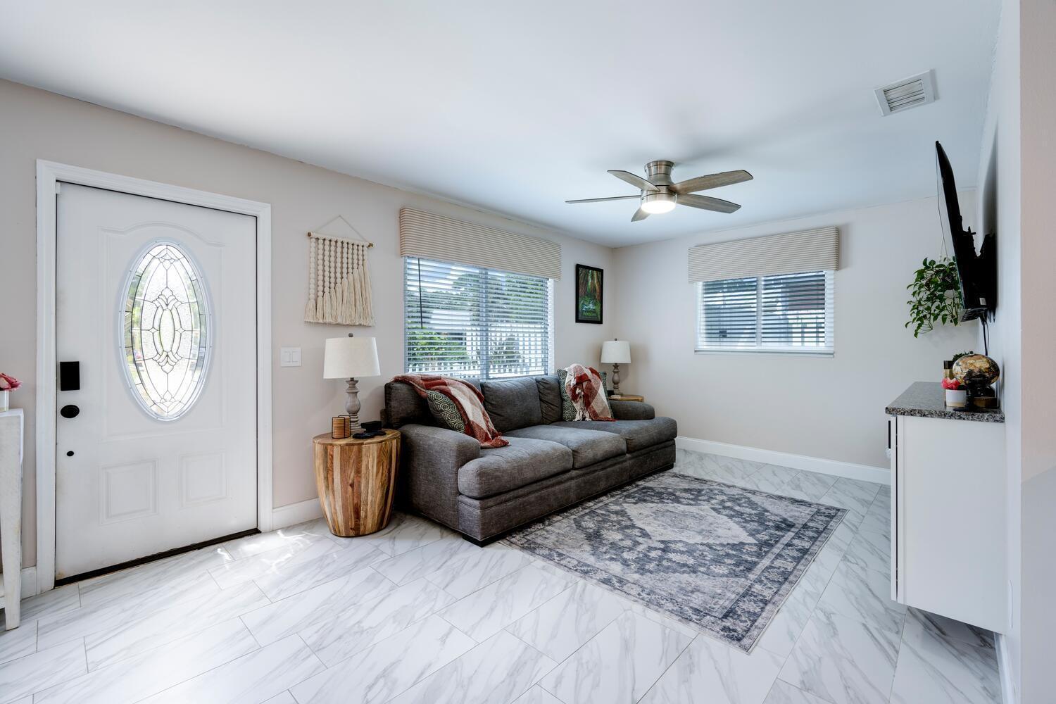 Explore this updated 3-bed, 2-bath ocean-access home with a dock in the boating community of Rustic Hills, Palm City. This turnkey property features an oversized lot with ample parking for multiple vehicles and all your toys. It is a short boat ride to the inlet with low HOA fees and no need for flood insurance. Recent improvements include a newer roof, AC, windows, flooring, bathrooms, a kitchen boasting granite and quartz countertops, newer appliances, an irrigation system, and professional landscaping. The open floor plan is great for entertaining, and both the den and primary bedroom have French doors leading to a 30 ft wide covered patio and a 38 ft dock with a 10K boat lift. Rustic Hills is an ''Old Florida'' style community that is minutes from everything. More...