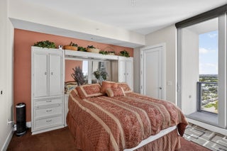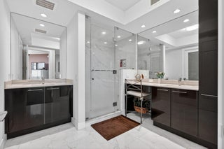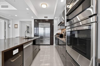 Immaculate ''Cobalt'' model in the desirable south tower at the Water Club. This 15th-floor home boasts breathtaking Intracoastal views and expansive views of the ocean. The comfortable floor plan offers two bedrooms and two and a half baths and features a private entry foyer with private elevator access. A beautiful den with expansive floor-to-ceiling windows greets you as you enter. The contemporary designer open kitchen features European Nolte cabinets, elegant countertops and a tiled backsplash. The kitchen also boasts a large center island and separate bar area with extra storage and even includes a separate Jennair wine refrigerator. Appliances include a 42-inch Jennair built-in refrigerator, a Jennair induction cooktop, and a Bosch dishwasher The main living area has ample spacefor open seating, a dining area, and, most striking of all, spectacular water views of the Intracoastal and the Atlantic Ocean. You can literally sit on your couch and be mesmerized watching glorious sunrises every morning, and, later, admire the ships sailing in the distance. You can also enjoy the huge covered veranda that you access through one of three large, floor-to-ceiling sliding glass doors, one in the living room, one in the dining room, and one more in the master suite. The oversized master suite enjoys bright sunlight from the floor-to-ceiling sliding doors that open out to the main veranda. The suite features a large walk-in closet with beautiful built-in cabinetry. The expansive master bathroom's focal point is a spacious frameless glass door walk-in shower. It also features marble counter tops and double sinks. The large secondary guest suite has two ample closets and a floor-to-ceiling sliding glass door leading to a secondary wrap-around terrace for gorgeous sunset views. Upgrades include designer blinds and porcelain tile flooring, along with designer lighting fixtures. There's nothing like the Water Club's incomparable resort lifestyle--- waterfront living at its finest. Luxury amenities include guest suites, private club, day dock, fire pits, two state-of-the art fitness centers, pickleball court, event lawn space, and two resort-style pools as well as a lap pool and two hot tubs. The gated entry, the spacious underground parking, the individual storage units, the secured private elevator access and the attentive concierge service along with 24/7 security provide both peace of mind and the luxurious living of a full-service condo building.