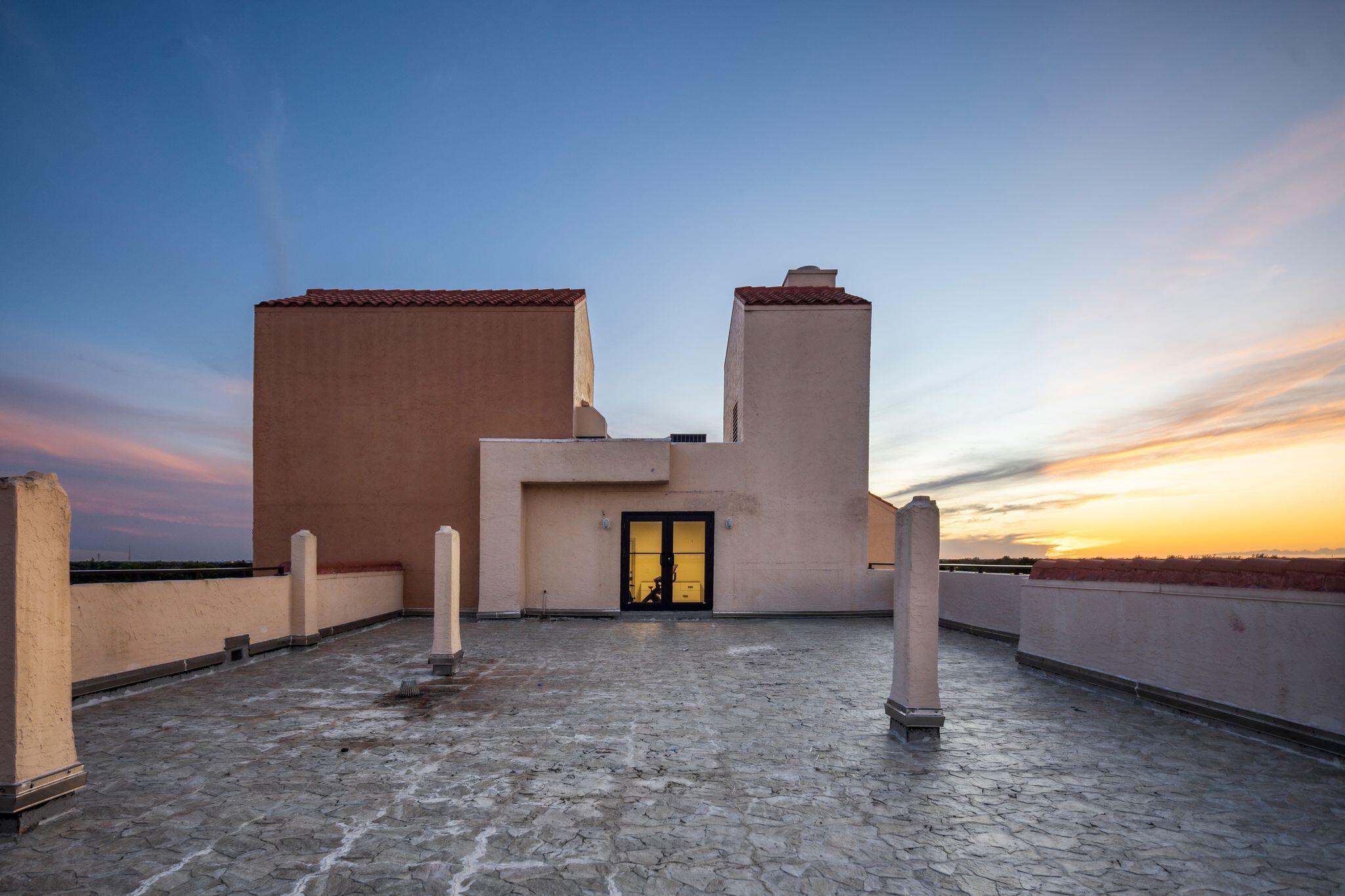 Penthouse perfection in the heart of Boca Raton. This one-of-a-kind 3-bedroom, 2-bath residence occupies the entire floor, offering total privacy and panoramic views in every direction. With no shared walls and direct elevator access, this exclusive unit includes an expansive 1,800+/- square foot private rooftop terrace -- ideal for entertaining, sunbathing, or enjoying the sunrise and sunset with unobstructed views to the east, north, south, and west. Inside, the home is rich with character and elevated finishes, including elegant custom built-ins, curved architectural walls, and a classic built-in bar. Hardwood, marble, and laminate flooring flow throughout the living spaces, blending warmth and sophistication. The updated kitchen features a brand-new refrigerator and modern touches,while the bedrooms offer custom closets and abundant storage. Furniture is negotiable. Additional features include a first-reserved covered parking space located directly by the front entrance, a resort-style pool, and an on-site manager for added convenience and peace of mind. The building has recently undergone major improvements, including a new roof and new elevator, with all assessments fully paid. Located within a top-rated school district, close to premier shopping, dining, houses of worship, and just five miles from the beach. No rentals allowed during the first year of ownership. All serious offers will be considered.
