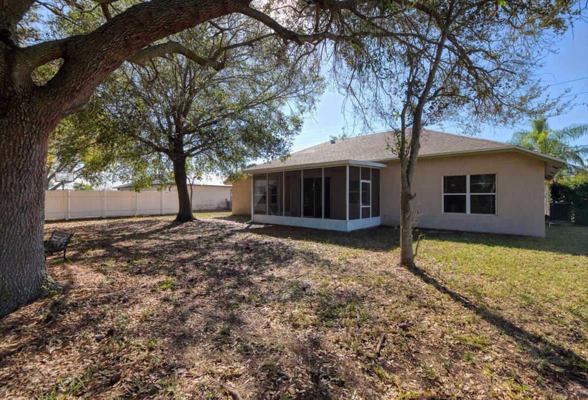 Welcome to this 3 bedroom 2 bath plus a den.(4th bedroom) in desirable Port St Lucie. Backing up to a utility right of way for added privacy. Enjoy peace of mind with a 2026 roof & 2023 AC system. Newly installed Garage door opener. Functional kitchen with ample cabinet space & room for a prep Island. Primary suite with separate shower & bath. Double sinks. Conveniently located minutes to shopping, dining, schools, parks & major roadways. NO HOA. A fantastic opportunity for homeowners or investors alike.