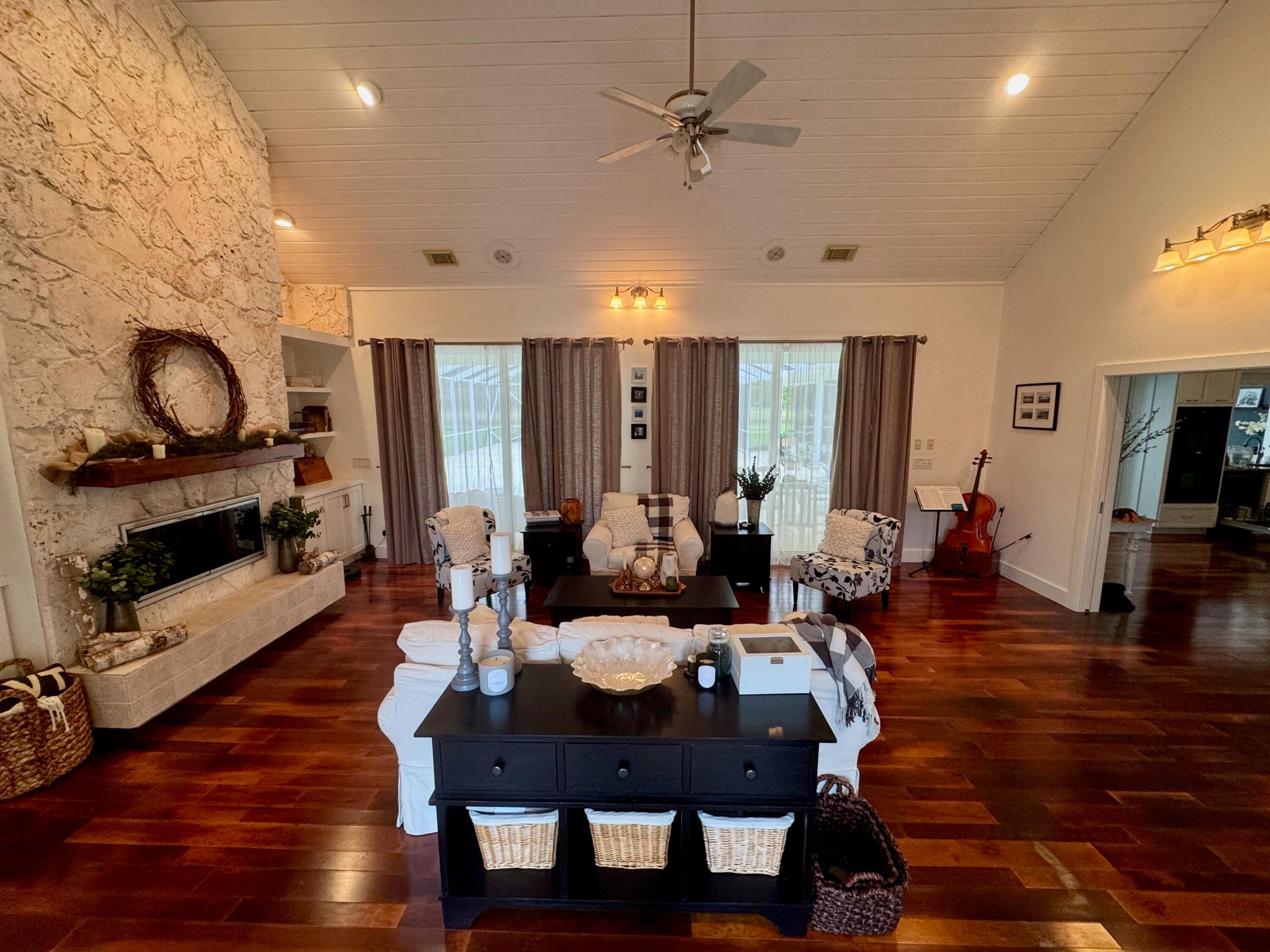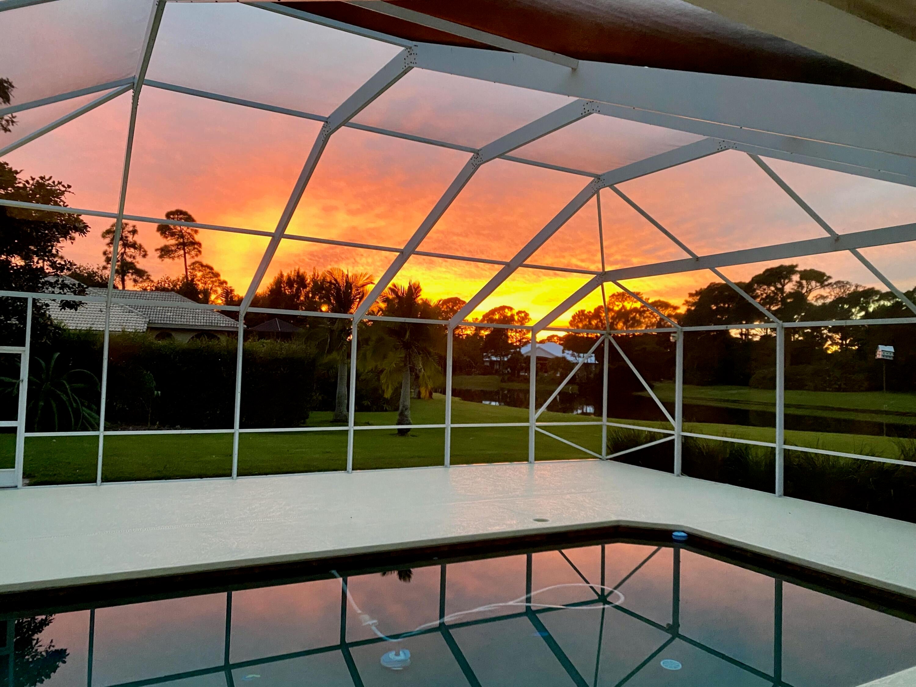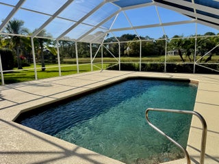 Rare Lakefront Home in PGA Village / Reserve Plantation. This Key West-style lakefront home is set on a private 1.34-acre lot with expansive water and sunset views. Homes on the lake in this quiet, gated neighborhood are seldom available. With 3,326 square feet of living space, the residence features three bedrooms and three full bathrooms with a layout well suited for both daily living and entertaining. The living room showcases a coquina stone fireplace and large glass sliders opening to the pool and lake, while the spacious family room captures extended water views and includes a custom built-in wet bar--great for gatherings and entertaining. A split-bedroom floor plan provides privacy and flexibility, with generous room sizes and adaptable spaces for a home office, hobbies, or guests. Multiple sets of sliders and well-placed windows create a strong indoor-outdoor connection and fill the home with natural light throughout the day. Outdoors, mature landscaping and tropical foliage enhance privacy and reinforce the estate setting. A large screened lanai surrounds the swimming pool and deck area, offering an inviting space for outdoor dining, relaxation, and enjoying lake views and evening skies. The expansive lot provides rare space and separation from neighboring homes within a gated community. Residents enjoy 24-hour manned security and access to the Island Club community center, featuring a fitness center, heated pool with lap lanes, meeting rooms, tennis, pickleball, basketball courts, and additional recreational amenities. PGA Village includes three public PGA-branded golf courses, plus an additional private course within the community. Located in St. Lucie County with a Port St. Lucie address, the property has convenient access to I-95 while maintaining a quieter county setting. Public water, private septic, fiber-optic internet, and twice-weekly trash collection add to the home's practical appeal. A distinctive lakefront property with space, privacy, and lifestyle amenities that are increasingly difficult to find in Port St. Lucie.