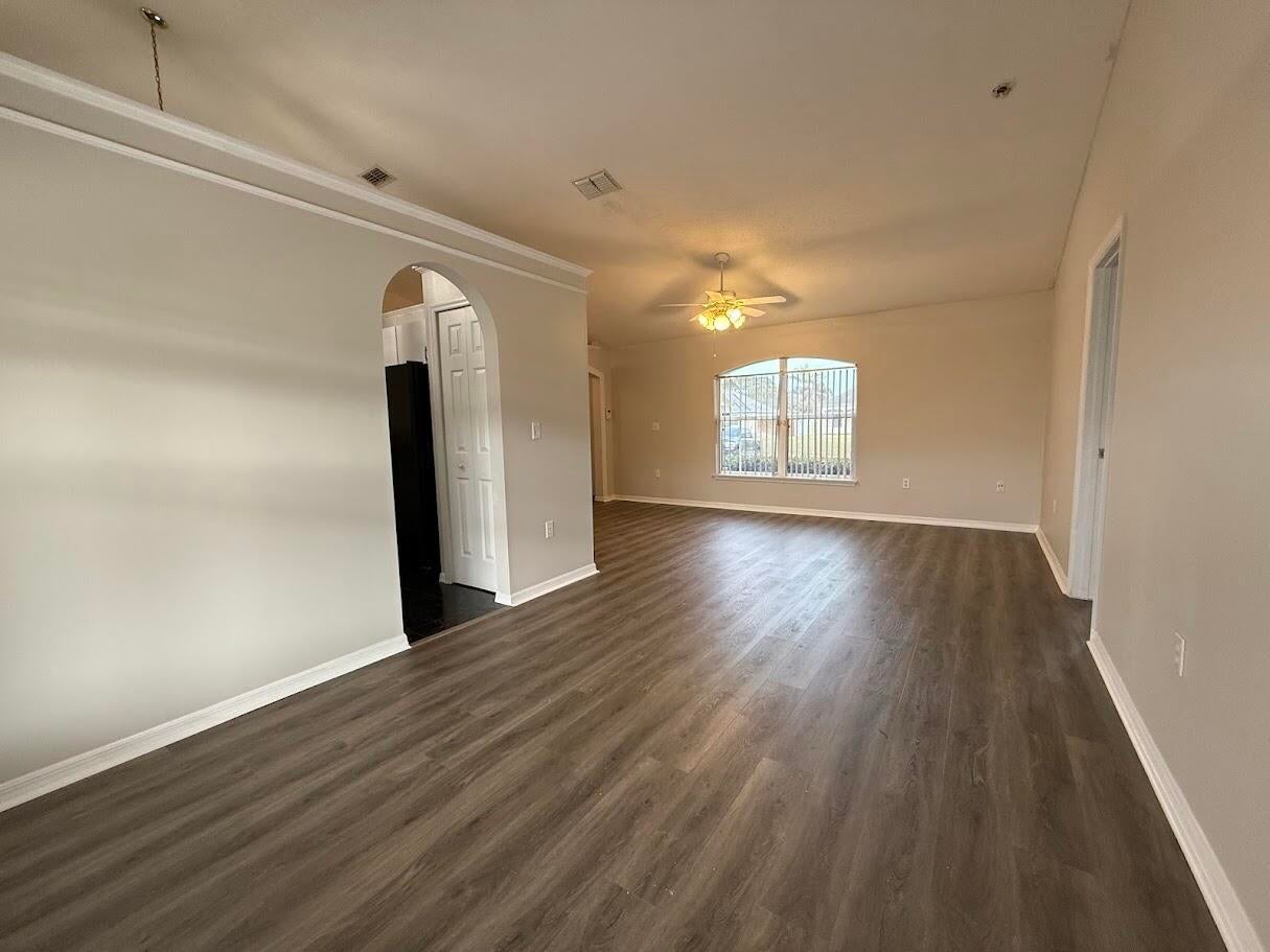 Well-maintained single-family home offering 3 bedrooms and 2 full bathrooms with approximately 1,794 sq ft of living space. Split floor plan with multiple living areas, including a living room, family room, and dining area. Kitchen offers ample cabinet and counter space. Primary suite includes walk-in closet and ensuite bath with separate tub and shower. Tile and laminate flooring throughout. Screened rear patio overlooks a fenced backyard. Attached two-car garage, interior laundry room, and storage shed. Conveniently located near shopping, dining, schools, and major roadways. Available for rent--schedule your showing today.