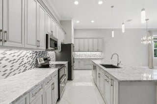 Must-see home priced to sell with $200K+ in upgrades! Modern open layout with bonus room/3rd bedroom, no carpet, and a sleek quartz kitchen with designer cabinetry. The 1,466 sq. ft. outdoor oasis is the true star with a huge screened lanai with peaceful, unobstructed lake views. Owner-added features include stamped concrete, electric shade, synthetic turf, pristine hot tub, full summer kitchen, Vegepod garden, LED lighting, TV mount, extra outlets, and hammock with umbrella. Lush landscaping and stone accents create a tropical vibe without blocking the view. Enjoy resort-style living with three pools (one indoor), two gyms, 27 pickleball courts, tennis, basketball, sauna, dog park, and scenic walking paths. SELLER OFFERING $6,000 INCENTIVE TOWARDS CLOSING COSTS