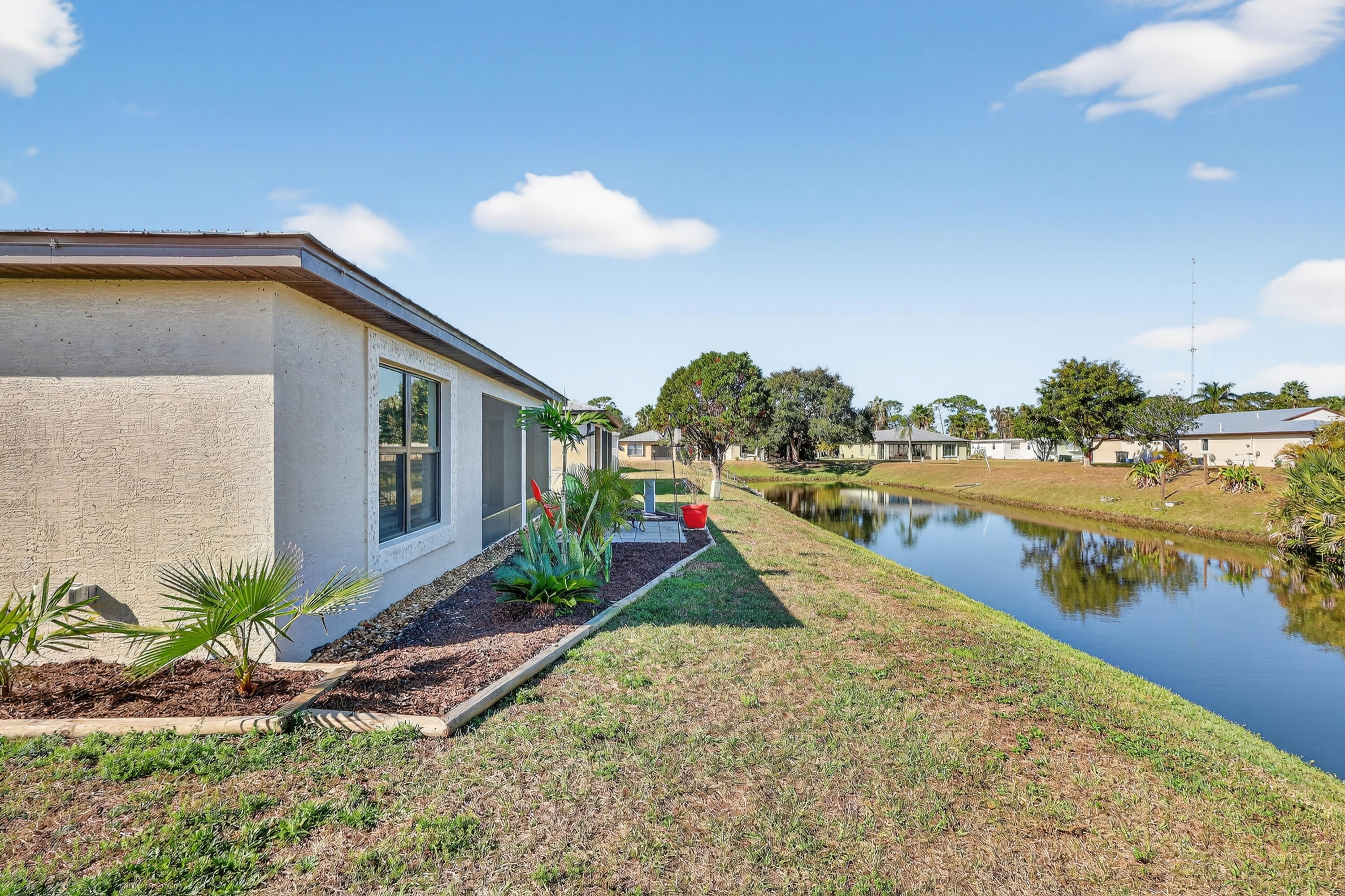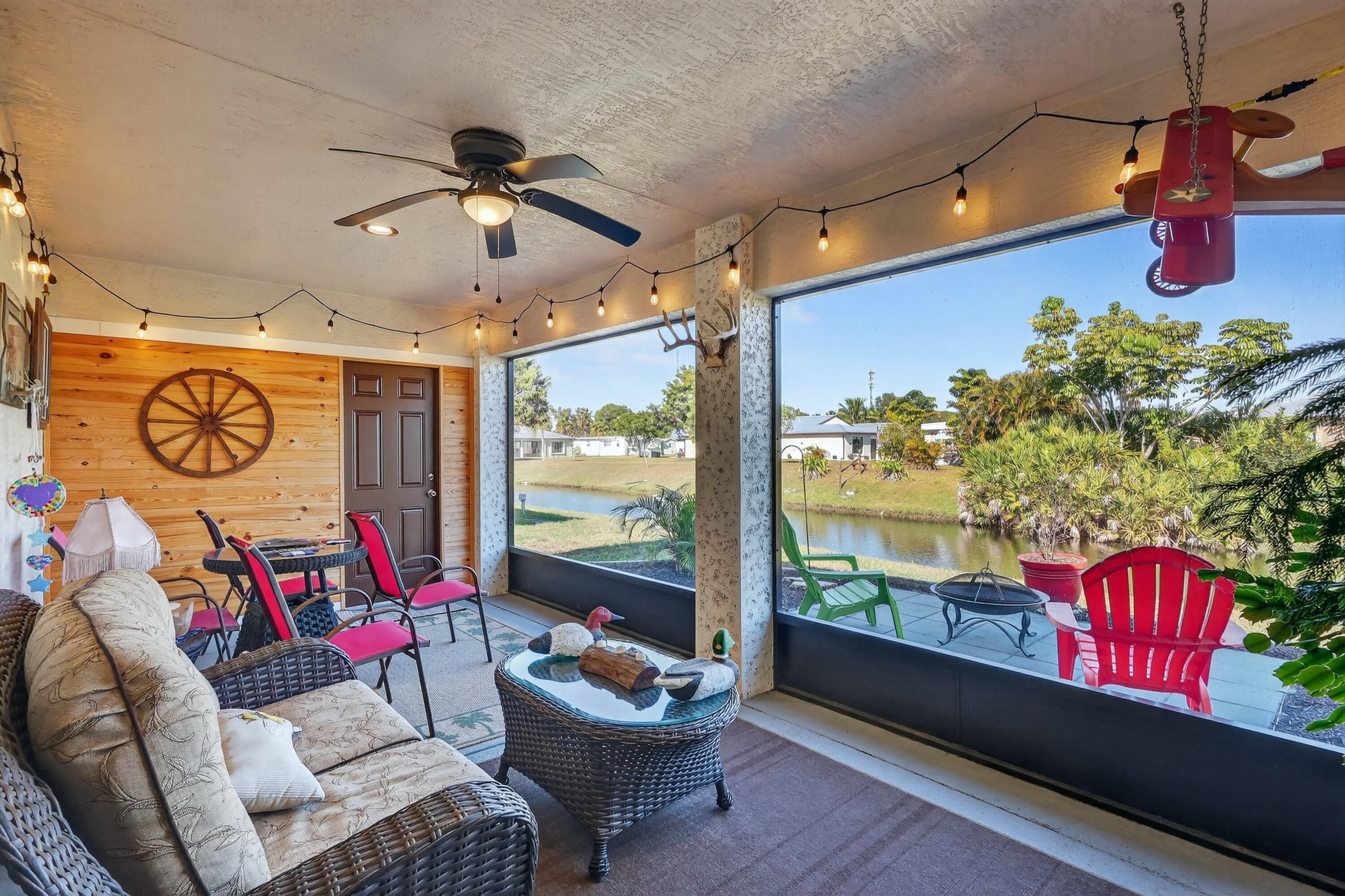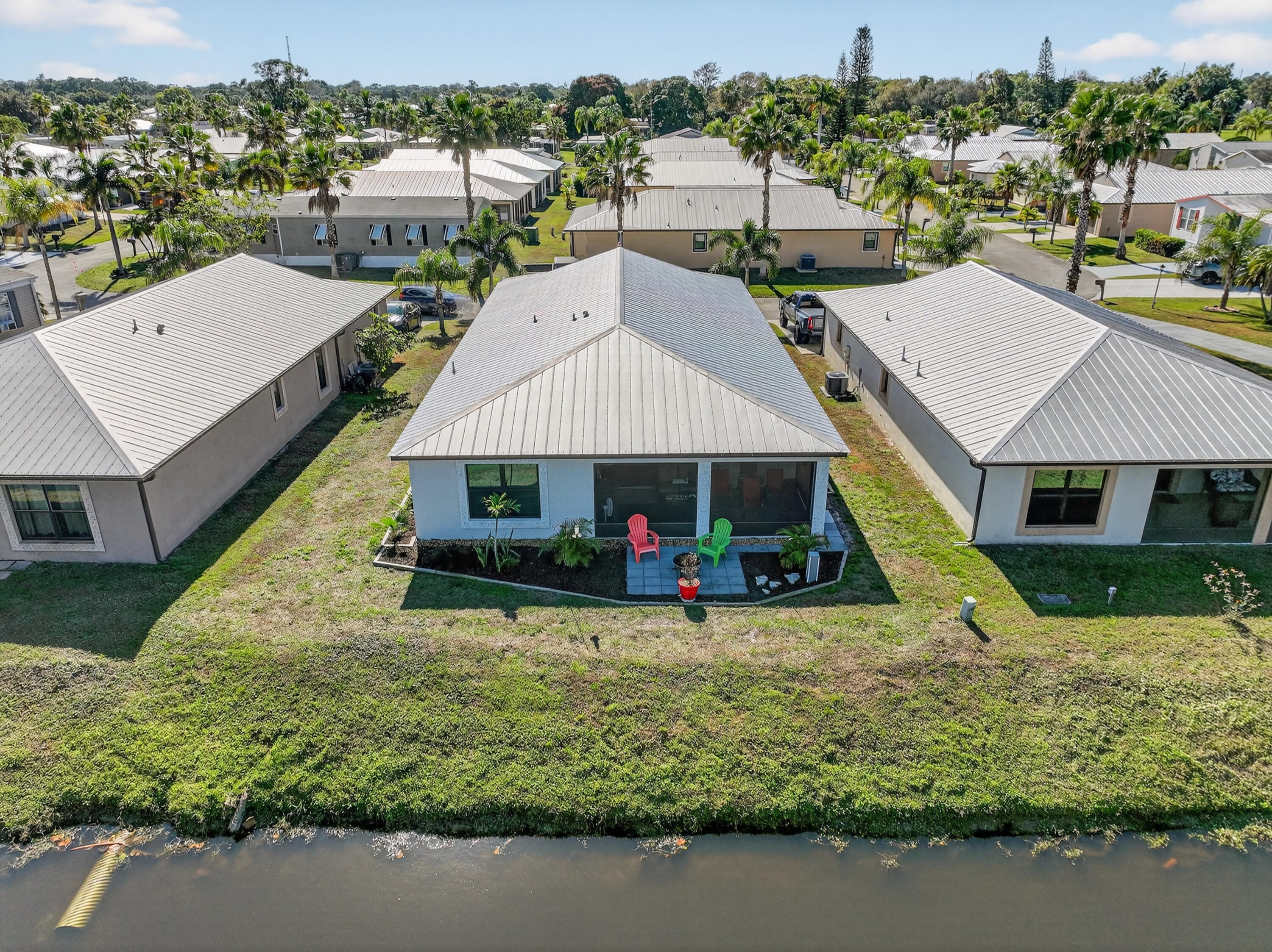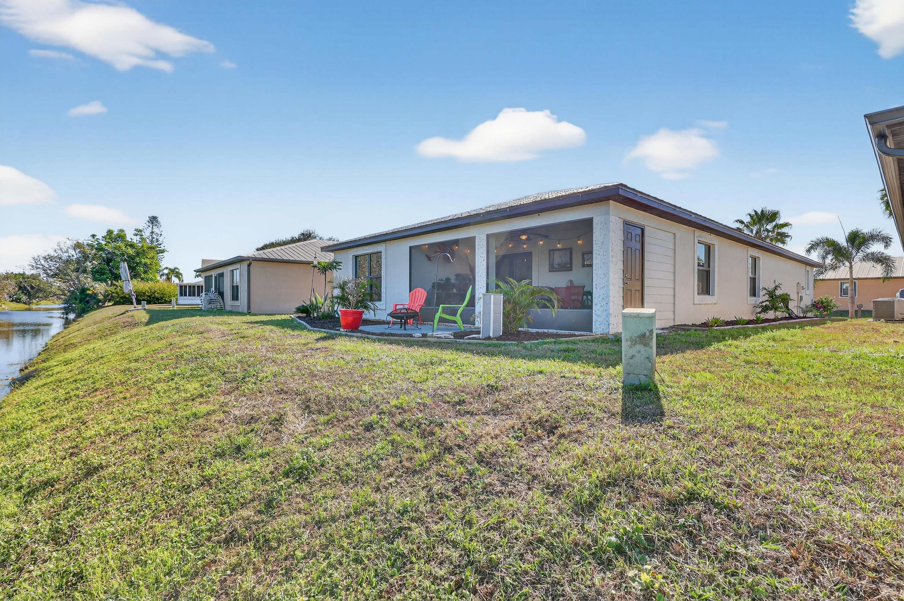 ELEGANT, DURABLE, SAFE, AFFORDABLE on WATRFRONT! 2021 3/bed/2bath home w/ Concrete Block Construction, IMPACTWINDOWS & DOOR, METALROOF on 5/8'' Plywood for maxstrength. Fish by Canal. Relax, Grill, Dog play or Garden from your own maintenance free yard. Large Screened Lanai w/ ped door & Custom Blinds offers oasis views - beauty continues inside;Plant.Shutters,Upgraded lights,BUILT in FULLWALL FIREPLACE&HANDMADE HEARTH,Cathedral Ceilings,CeilingFans,SSappliance,Walk in Closet,Designer Landscape w/ ext Outlets, SecureKeypadEntry. Walk to Clubhouse from this PRIME LOCATION in 55+ comm, near hospital,pharmacy,postal,grocery,mall& more! Lot lease868.74 includes free PrivateGolfCourse, heated pool, security, bingo,pickleball, tennis,billiards,shuffleboard, bocce,gym,library,trash, lawn & more!