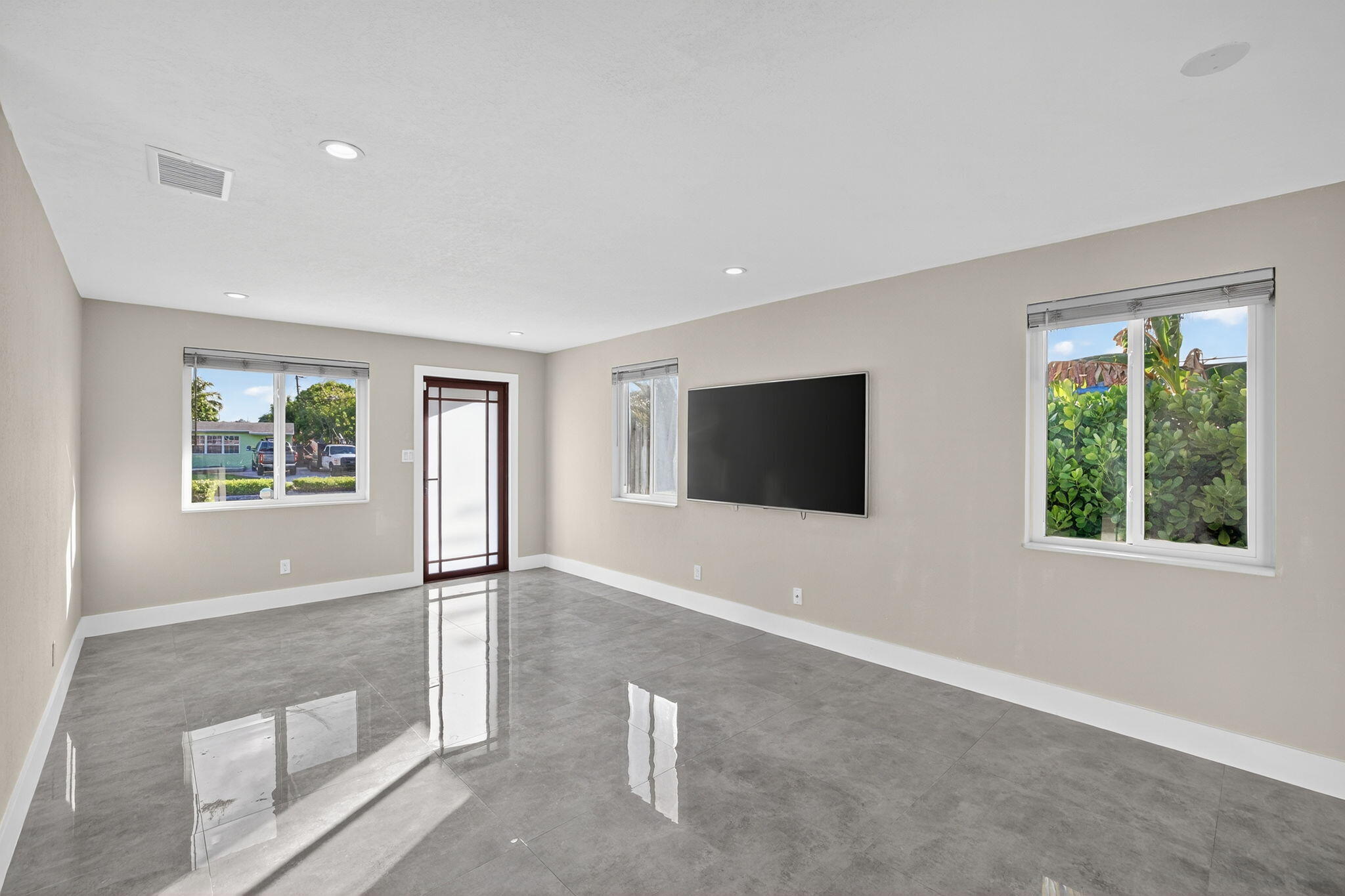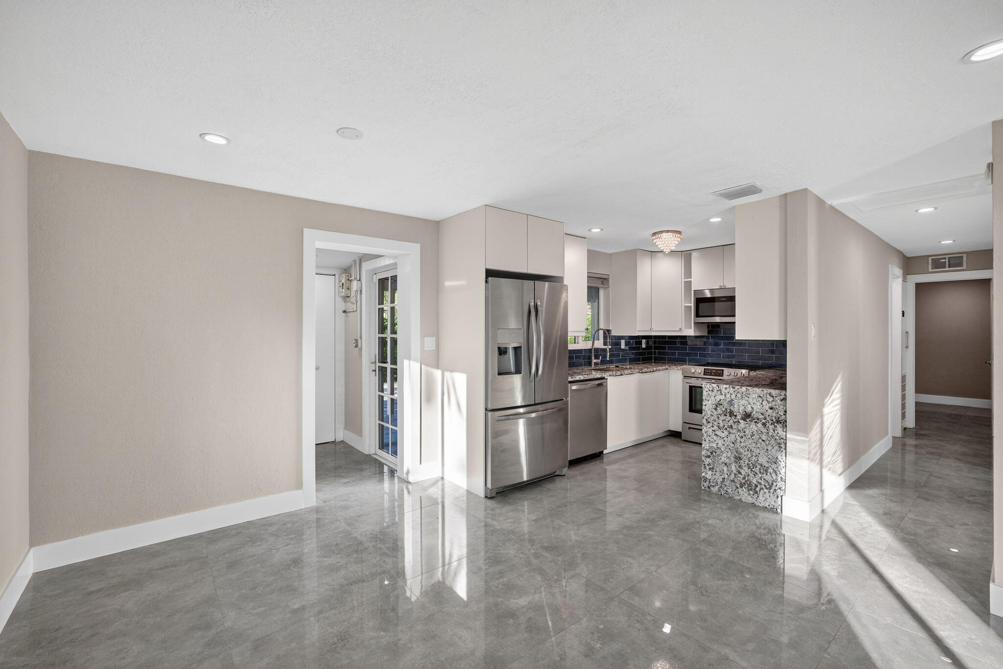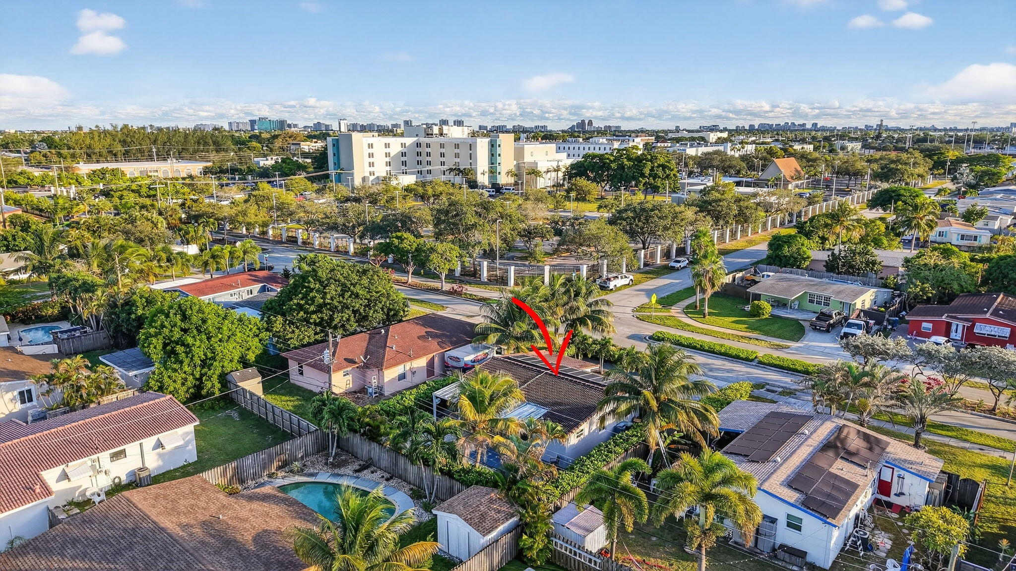 Beautifully remodeled 3 bedroom 2 bathroom + den single family home in the heart of Oakland Park! This home has it all, ready for you to move in to make yours. Features 32x32 European porcelain tile throughout, brand new contemporary kitchen with white cabinets, granite countertops, & stainless steel appliances, tankless water heater, solar panels, impact windows & doors, inside laundry, and large covered patio. The den/office has its own separate entrance for your convenience. Backyard is fully fenced.
