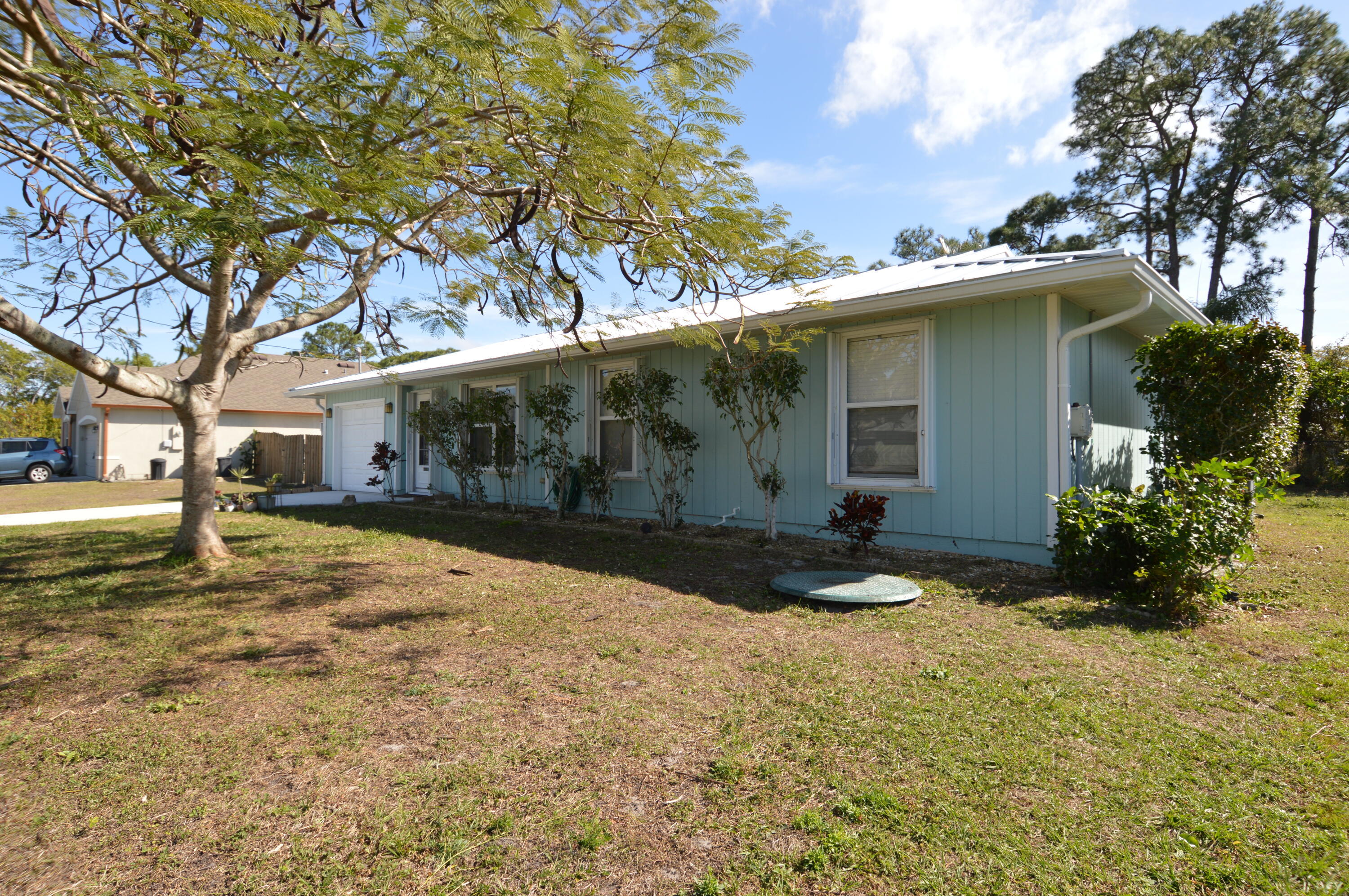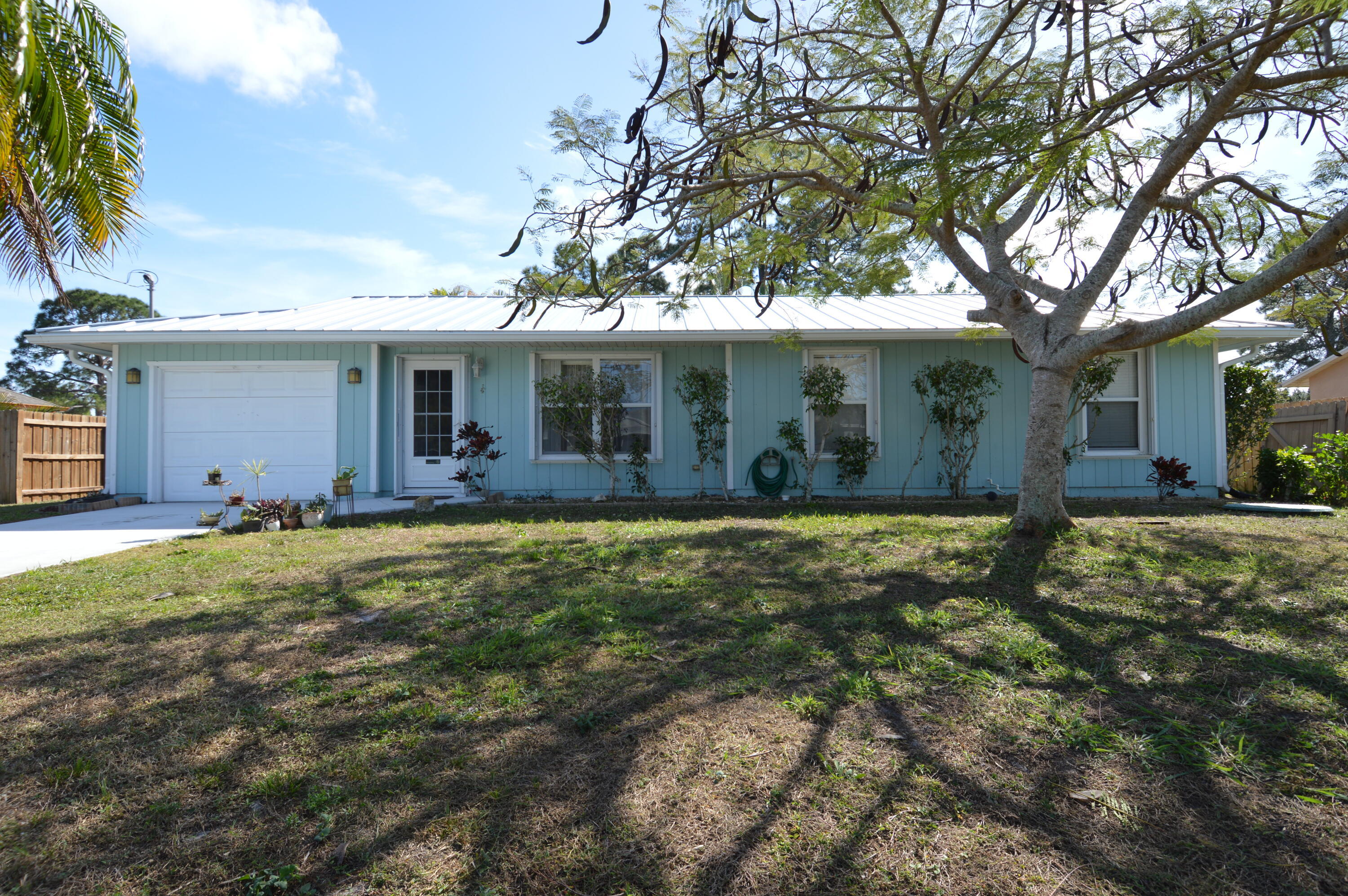 Come see this wonderful 3 bed / 2 bath / 1 car garage open concept home with nearly a quarter of an acre fenced yard! The kitchen is fitted with granite counter tops and brand new oven, dishwasher, and garbage disposal. Gorgeous hidden-seam metal roof was installed in 2023. This home is fully equipped with all the necessary wind mitigation straps and a full set of storm accordion shutters. Already connected to city sewer and city water for added convenience. No HOA, so bring your boat / RV. Great shopping and beaches close by! Schedule your showing today and see all this home has to offer!