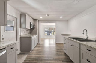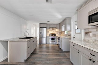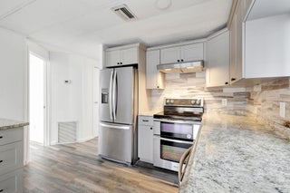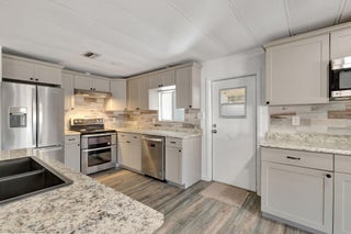 This beautifully renovated home offers 3/2bath, featuring a brand new full size kitchen with updated cabinets, a fully upgraded bathroom, and modern laminate flooring throughout. The home includes central AC, washer and dryer, and 2 storage sheds for extra space. Located in a quiet gated 55+ community, it is ideal for comfortable, low maintenance living.