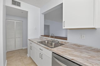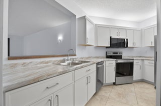This nicely updated Ocean Trace condo offers First Floor convenience, and is perfectly situated with quite and peaceful pool and lake views from its screened and covered patio, which can also be opened to the living area with triple sliding doors, enhancing the tropical feel. Its brand new kitchen and stainless appliance have the features and style you're looking for, including a convection oven and quiet dishwasher. The two baths have new vanities and toilets, and the laundry features brand new washer and dryer. A complete new Air Conditioner is being installed this week, and the water heater was installed in 2024. This all sits on beautiful porcelain floor tile in the living and bedroom areas for a rich unified look. The assessment for the new roof has been paid! Come see your new home!