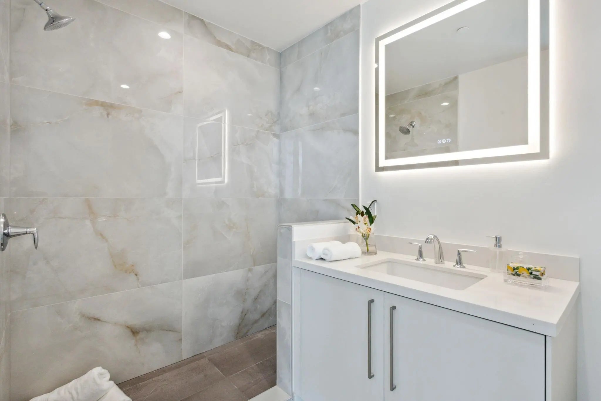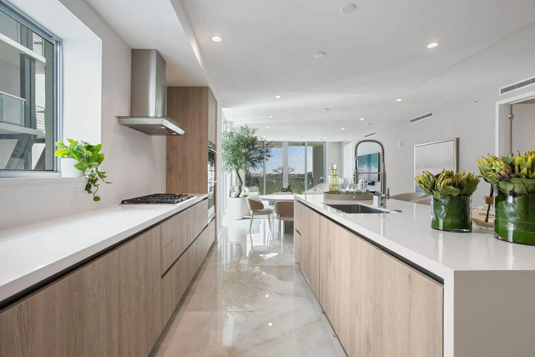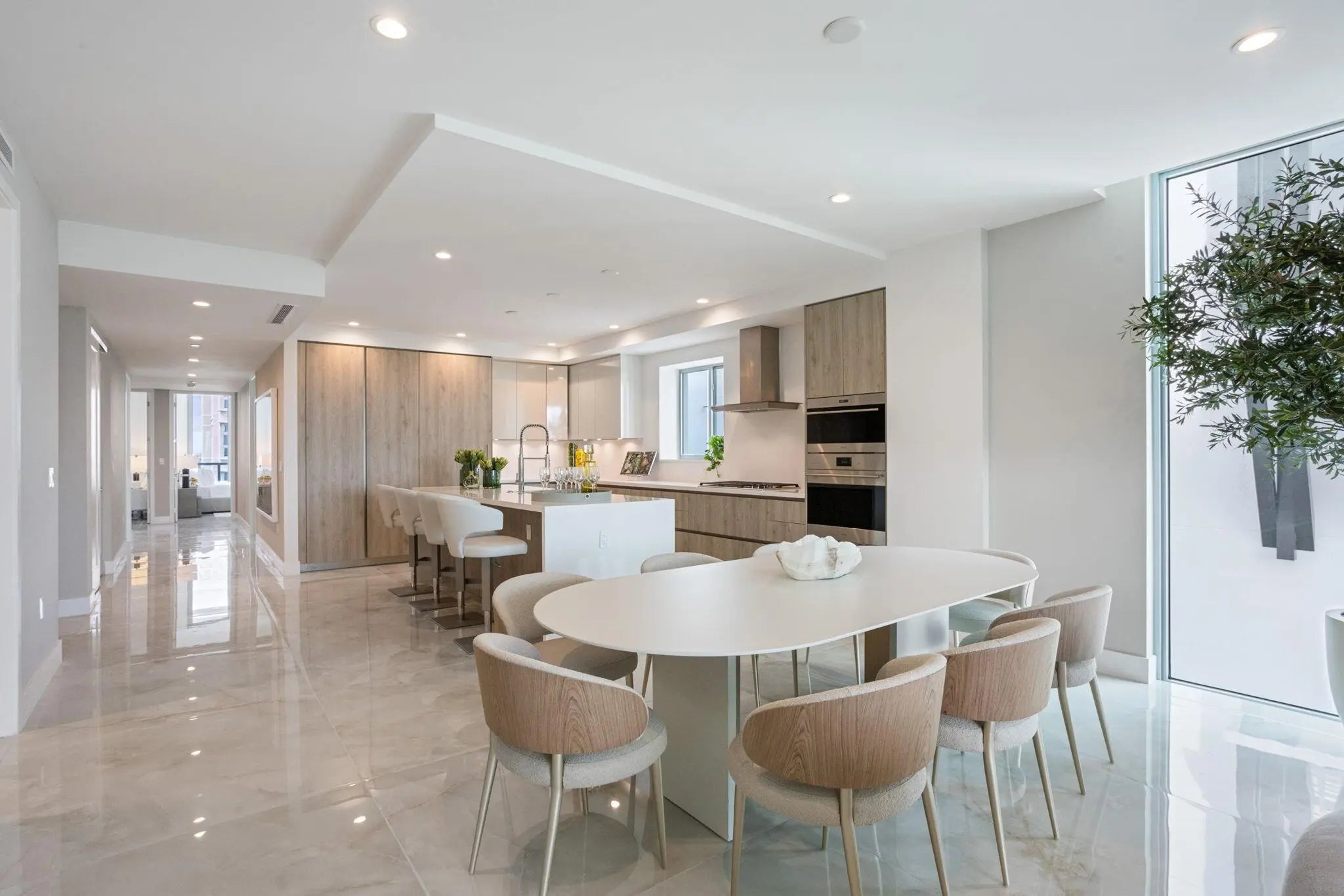 NEW FOUR BEDROOM PLUS DEN, HALF-FLOOR RESIDENCE IN THE HEART OF DOWNTOWN BOCA WITH PRIVATE ELEVATOR ENTRY, SOARING CEILINGS AND EXCEPTIONAL NATURAL LIGHT FROM DRAMATIC FLOOR-TO-CEILING GLASS WINDOWS AND DOORS WITH 270-DEGREE EXPOSURE. THE SPACIOUS GREAT ROOM DESIGN FLOWS SEAMLESSLY INTO A STATE-OF-THE-ART KITCHEN FEATURING CUSTOM ITALIAN CABINETRY, AN OVERSIZED CENTER ISLAND WITH GENEROUS BREAKFAST BAR SEATING, WINE REFRIGERATION AND GAS COOKING, PLUS A BUILT-IN WOLF GAS BBQ GRILL ON THE TERRACE. THE PRIMARY SUITE IS PRIVATELY POSITIONED AWAY FROM THE THREE ADDITIONAL BEDROOM SUITES AND FEATURES A SPA-INSPIRED BATH WITH A GLASS-ENCLOSED WET ROOM, SOAKING TUB AND SHOWER. LUXURIOUS AMENITIES INCLUDE A CONCIERGE, STATE-OF-THE-ART FITNESS CENTER, POOL, CLUB ROOM + VALET. THREE GARAGE SPACES!