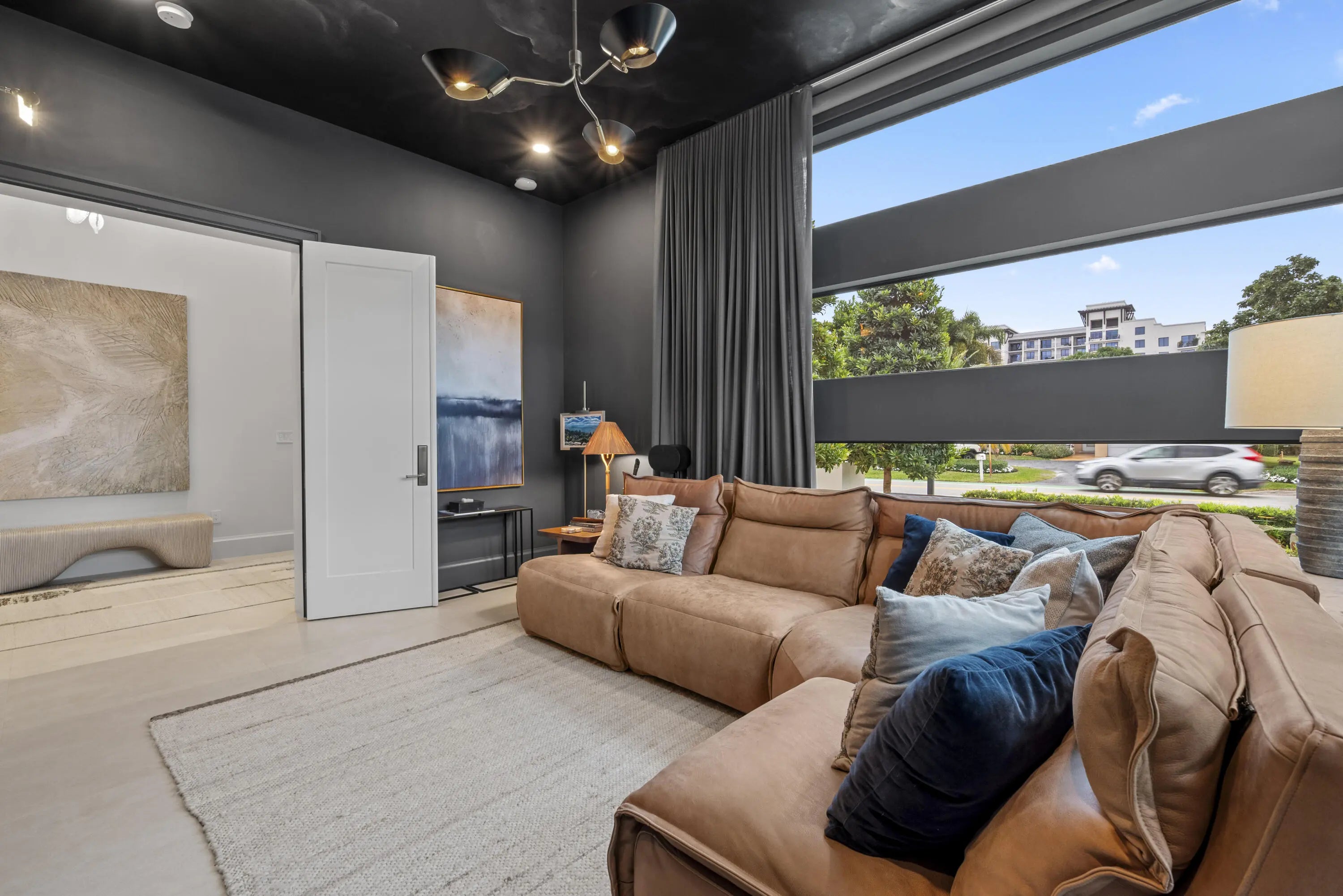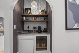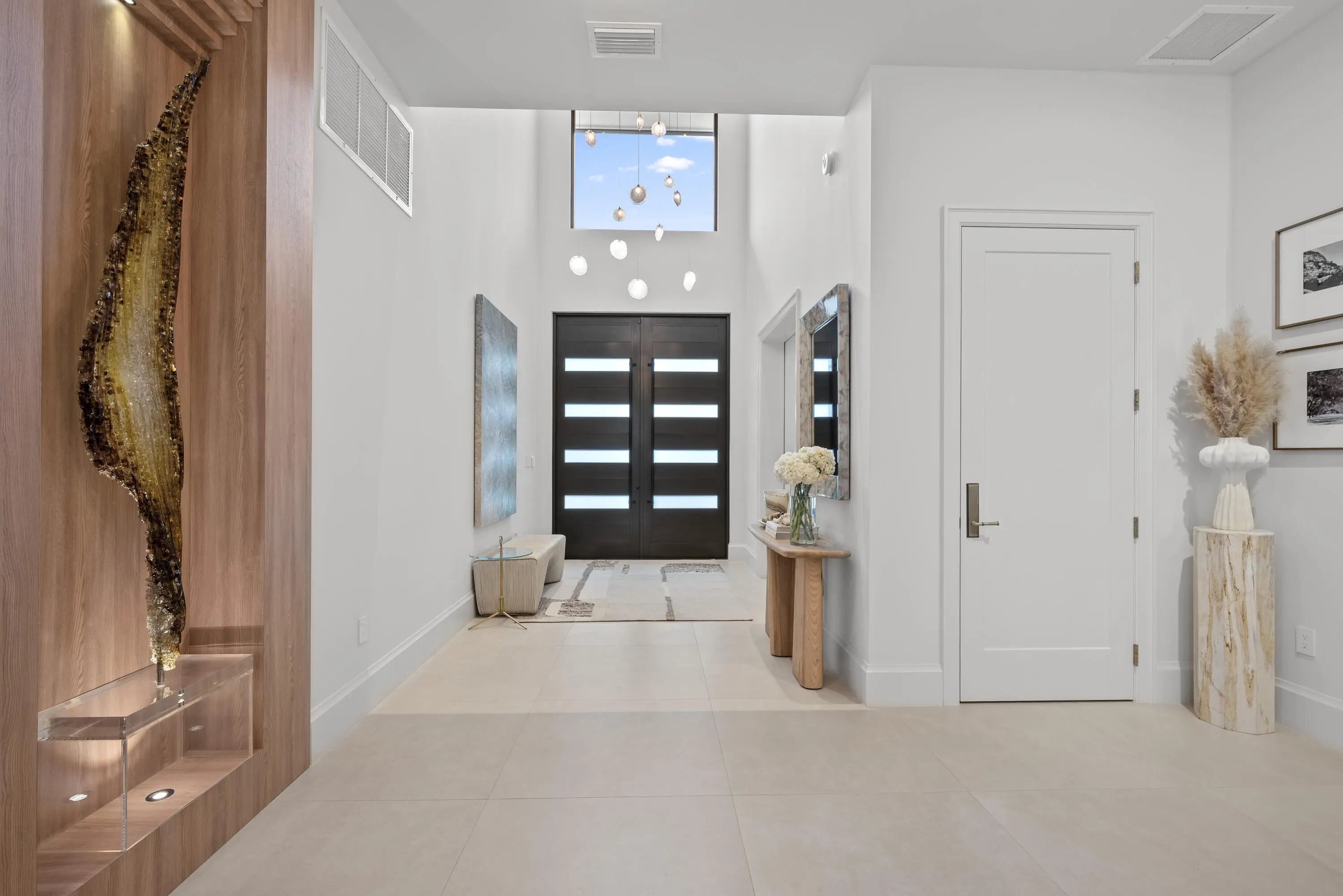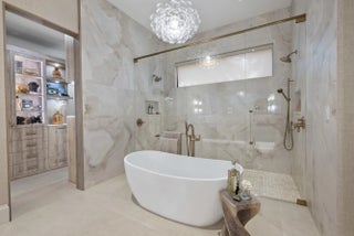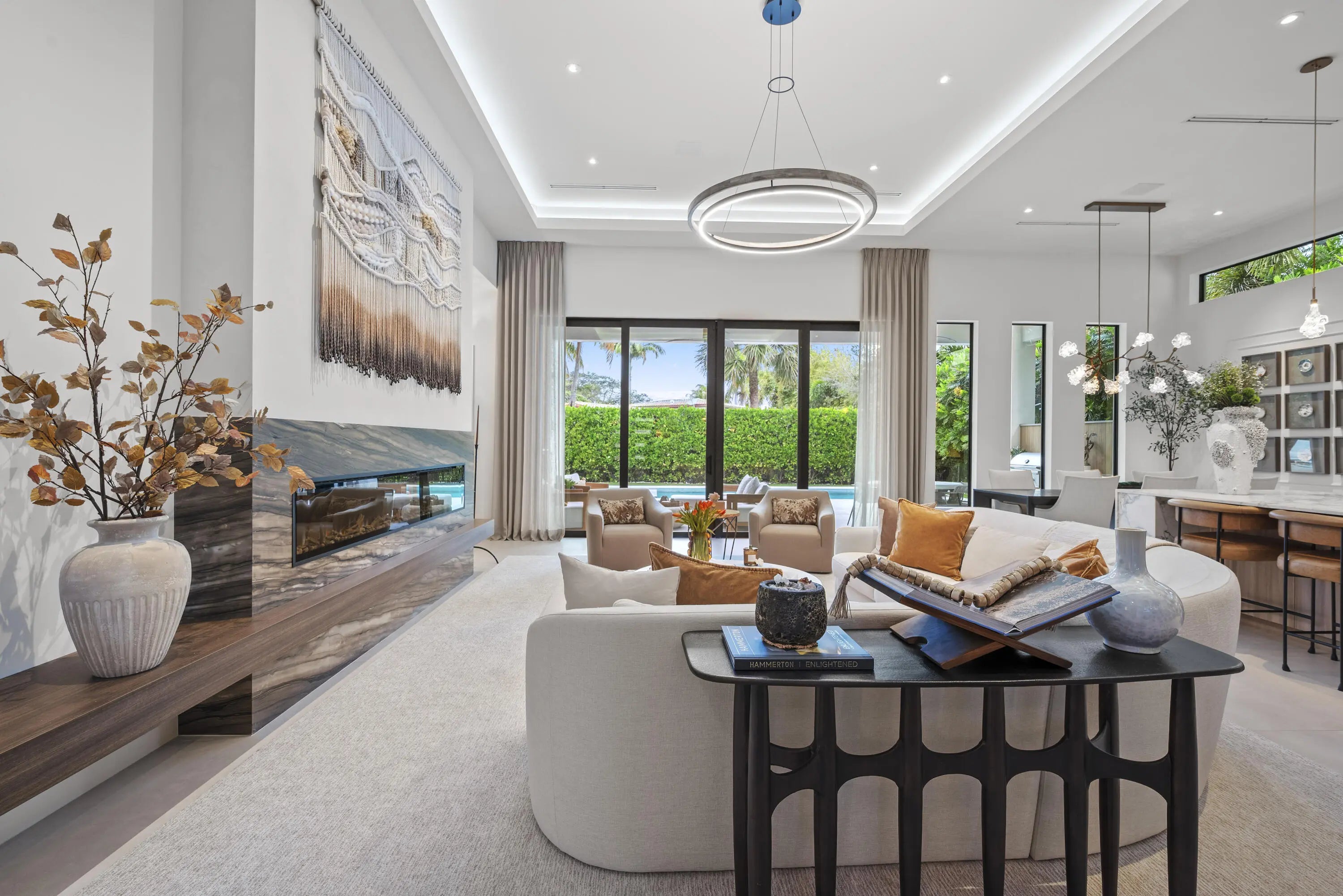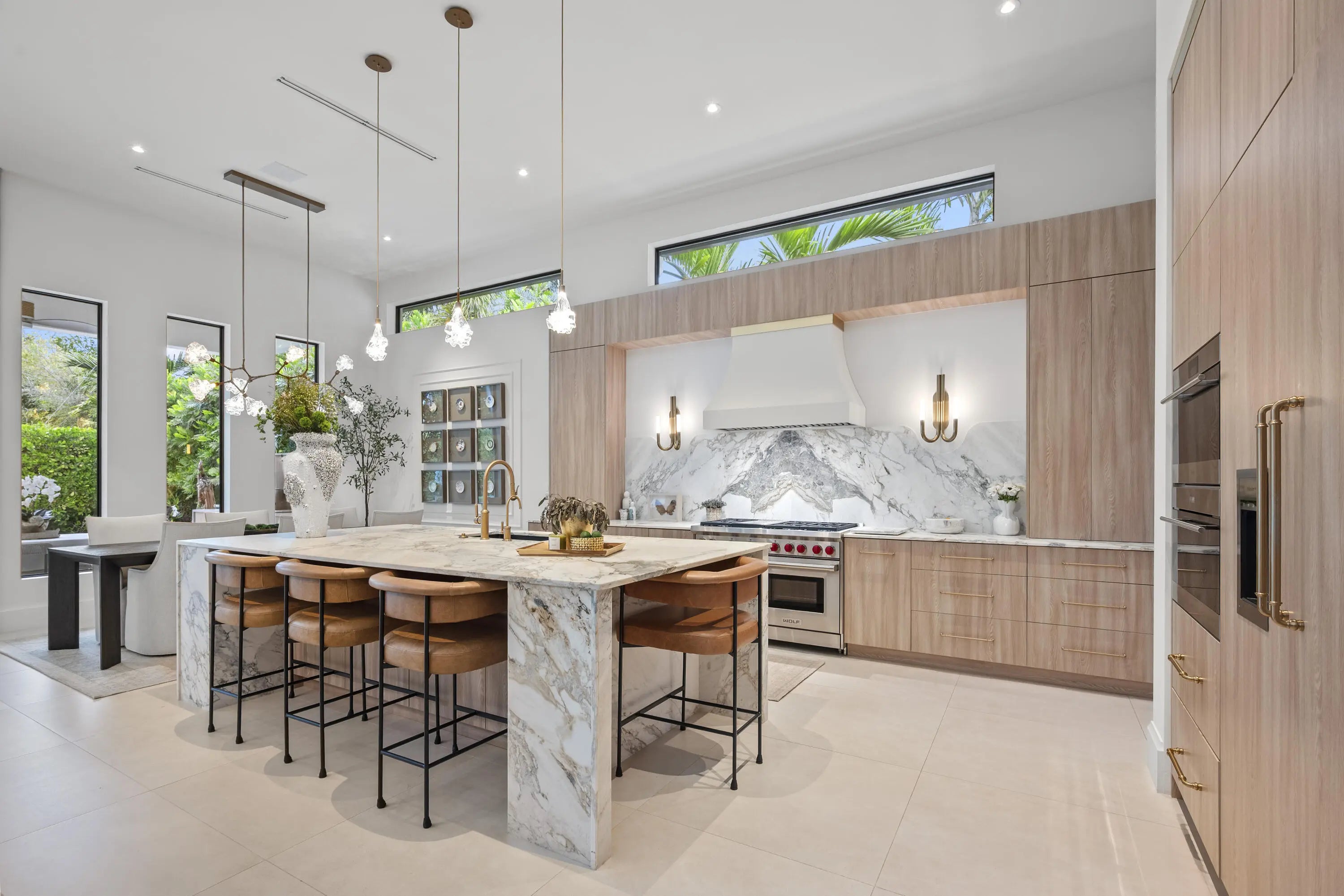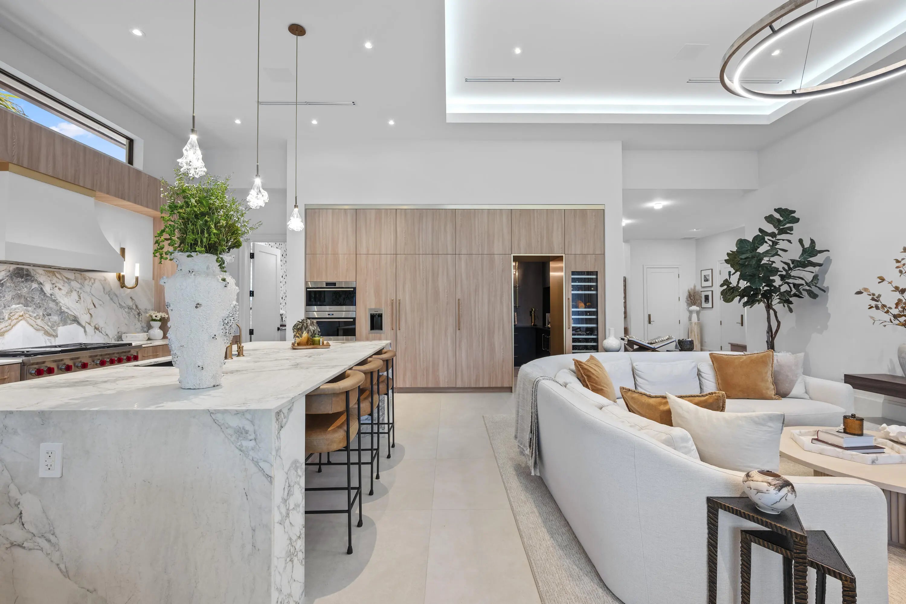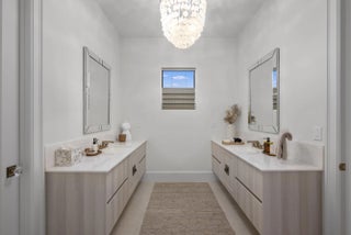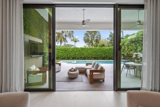 Experience refined luxury in this exceptional custom new-construction residence located in the heart of downtown Boca Raton. Designed with meticulous attention to detail, this sophisticated home showcases bespoke finishes, cutting edge technology, and warmly curated spaces. A dramatic two-story foyer with soaring ceilings and a statement Shakuff chandelier sets the tone, leading into expansive open, living areas. The great room features a 10 foot linear fireplace with a quartzite surround and illuminated tray ceiling. The spectacular gourmet chef's kitchen is equipped with Wolf and Miele appliances, custom cabinetry, and a striking marble island and backsplash. A glamorous speakeasy bar adds both style and function, making this space truly unique.