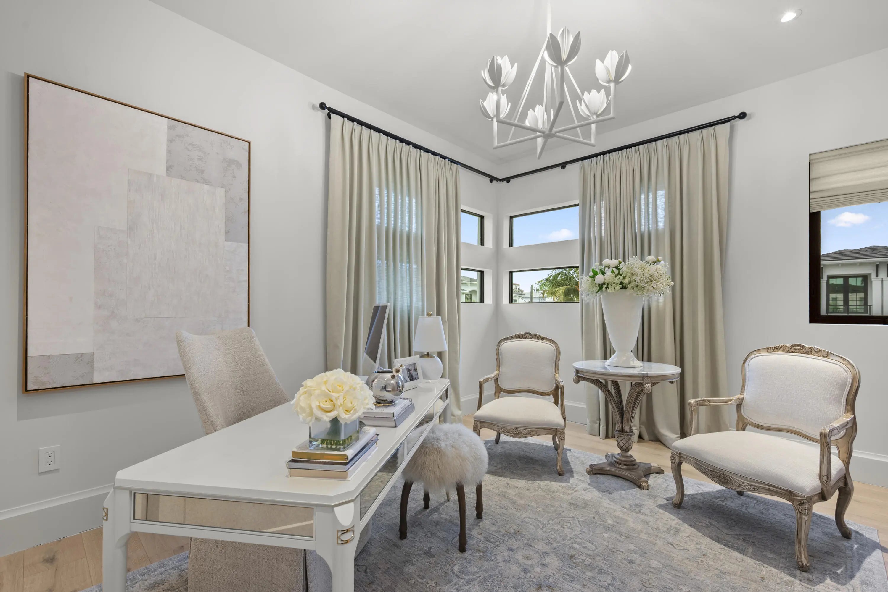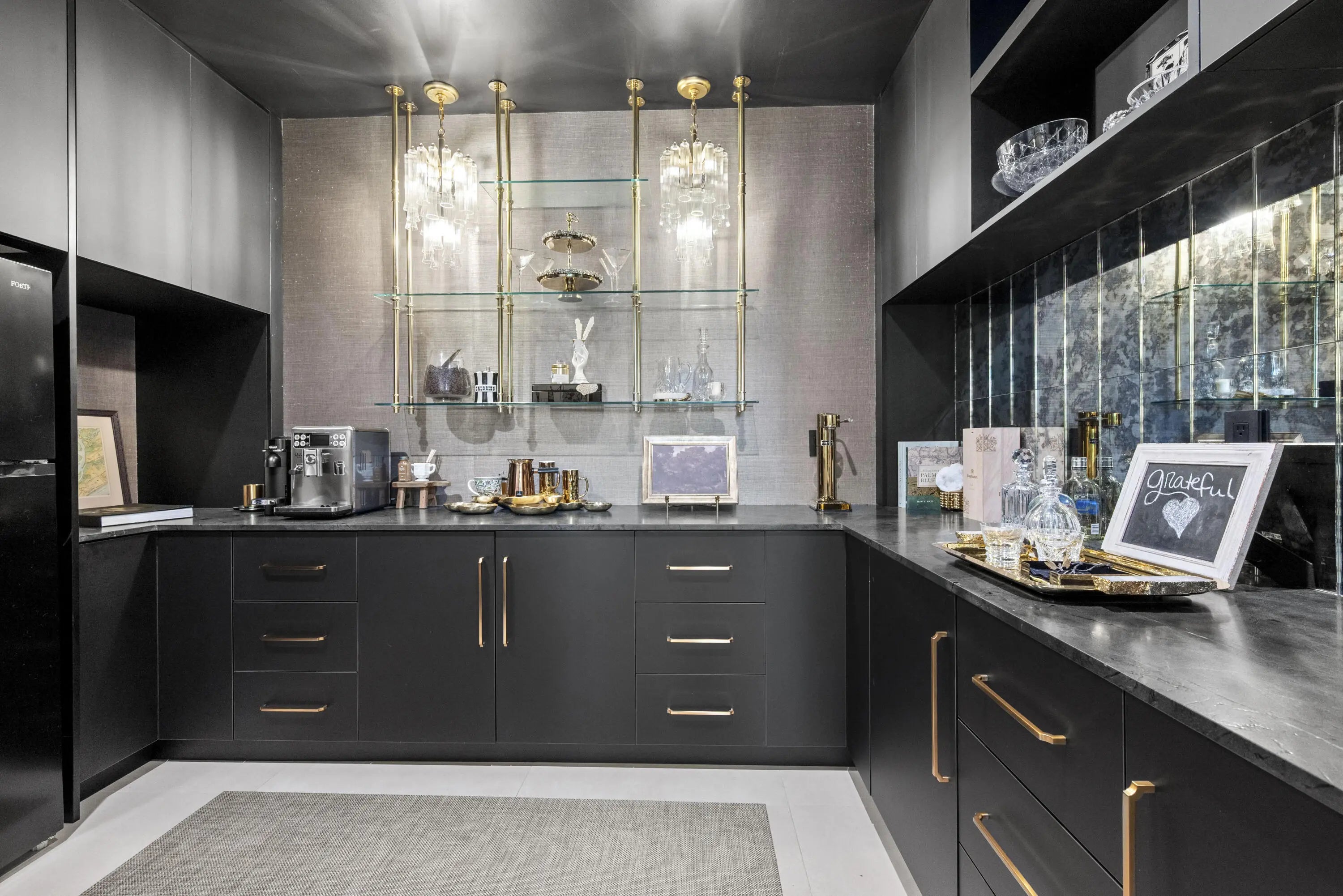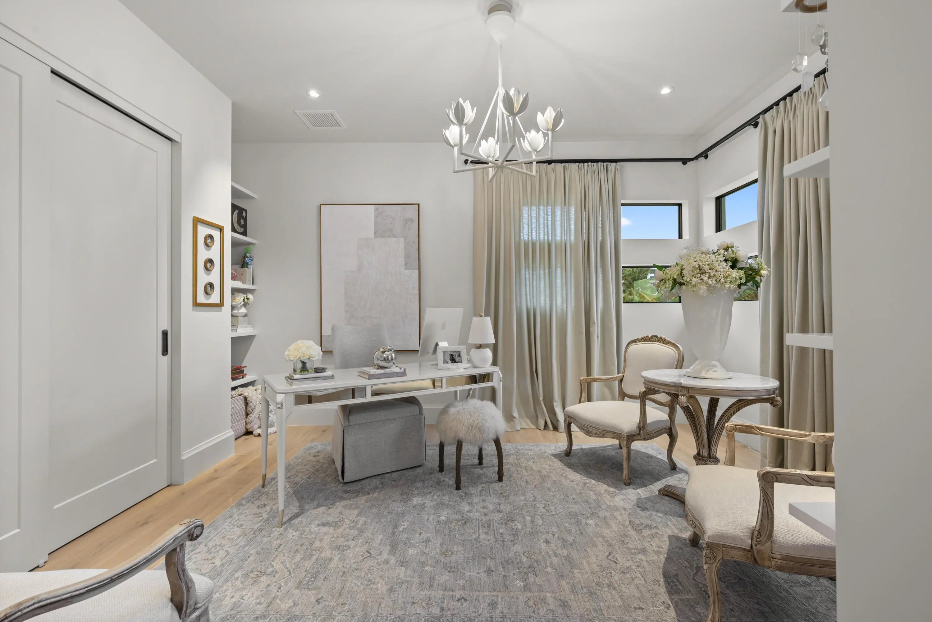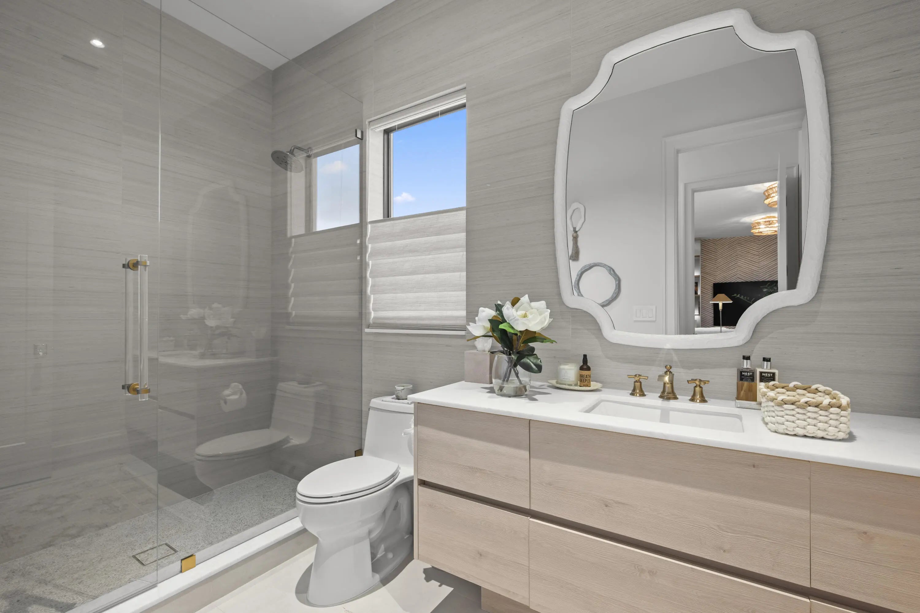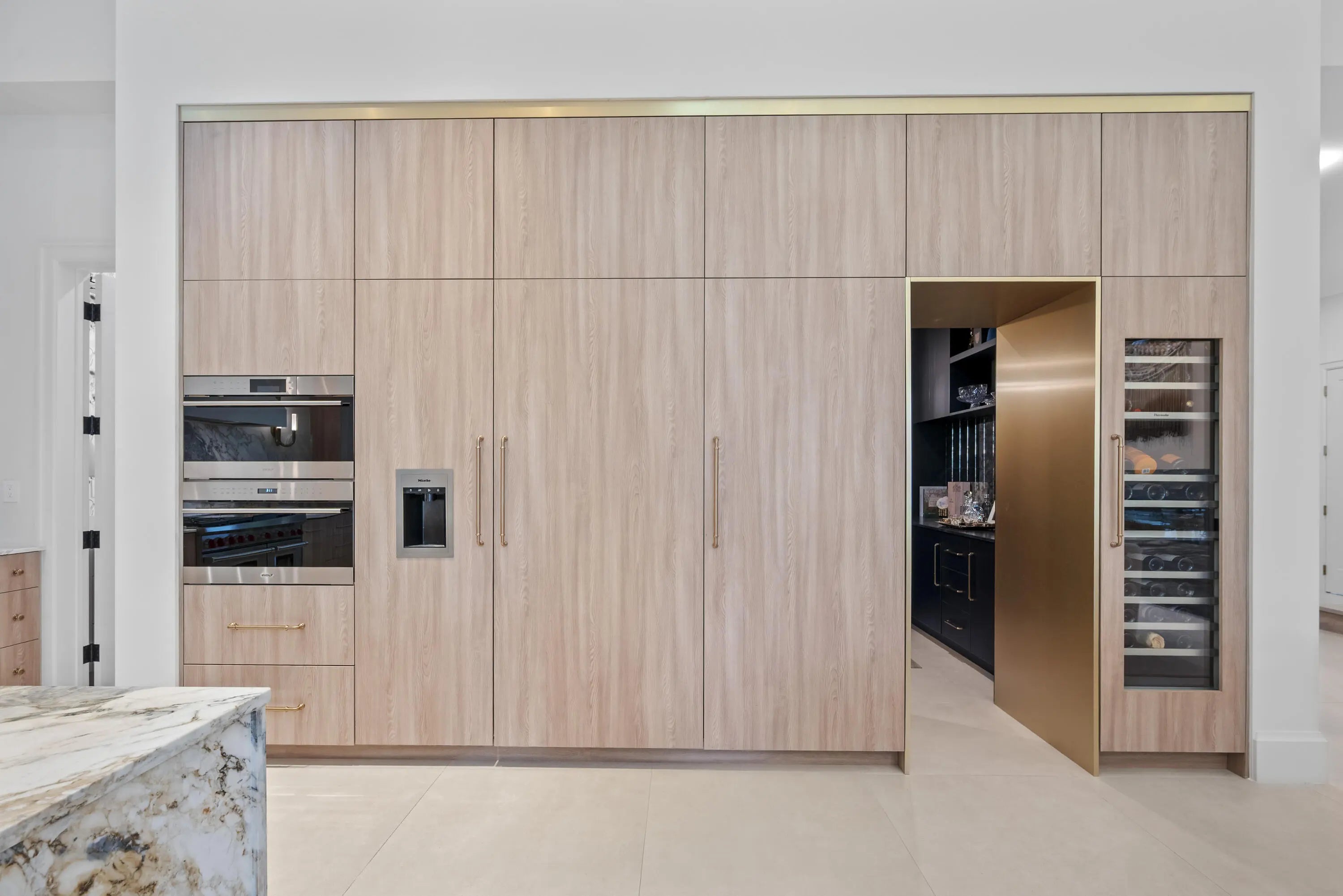 Experience refined luxury in this exceptional custom new-construction residence located in the heart of downtown Boca Raton. Designed with meticulous attention to detail, this sophisticated home showcases bespoke finishes, cutting edge technology, and warmly curated spaces. A dramatic two-story foyer with soaring ceilings and a statement Shakuff chandelier sets the tone, leading into expansive open, living areas. The great room features a 10 foot linear fireplace with a quartzite surround and illuminated tray ceiling. The spectacular gourmet chef's kitchen is equipped with Wolf and Miele appliances, custom cabinetry, and a striking marble island and backsplash. A glamorous speakeasy bar adds both style and function, making this space truly unique.