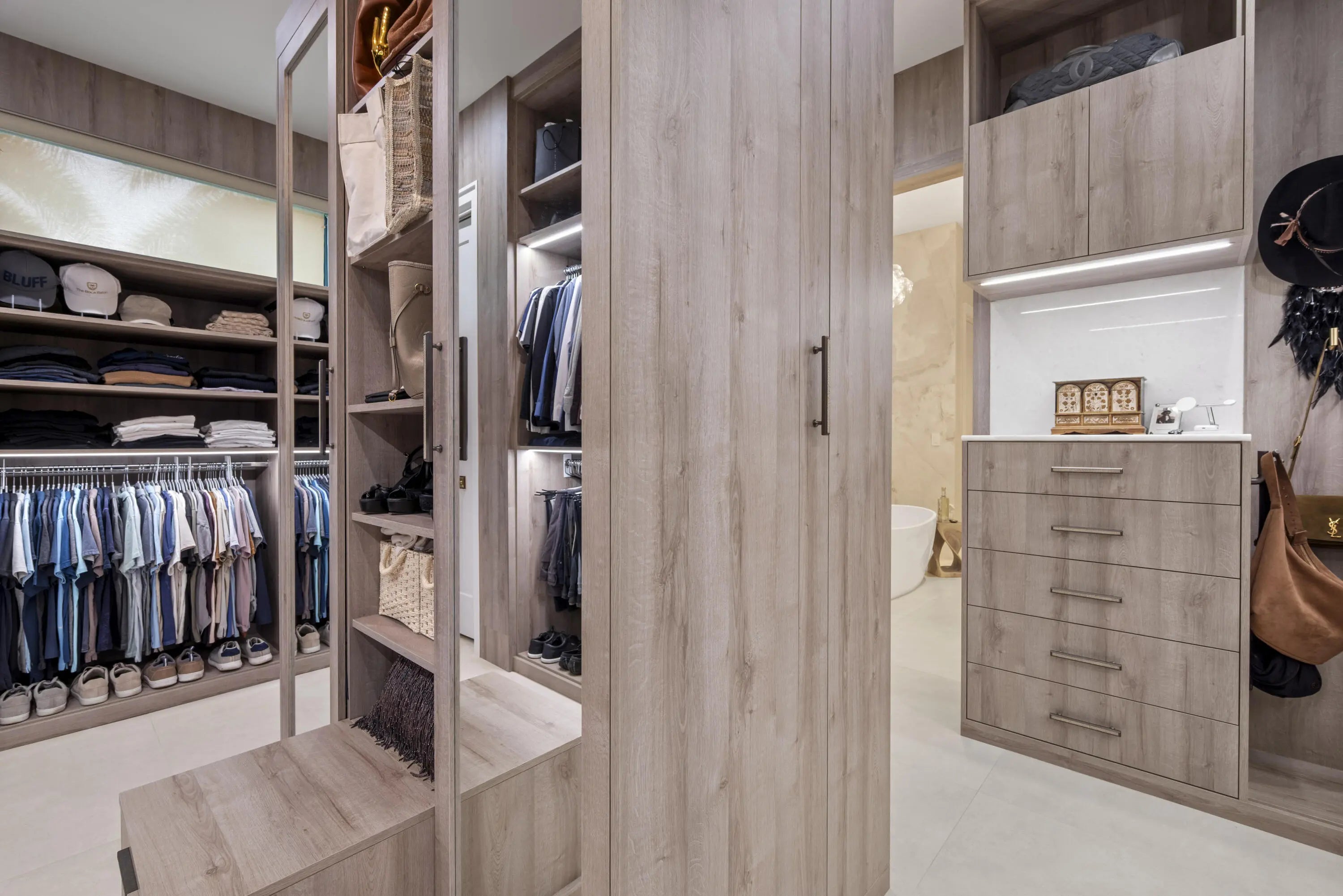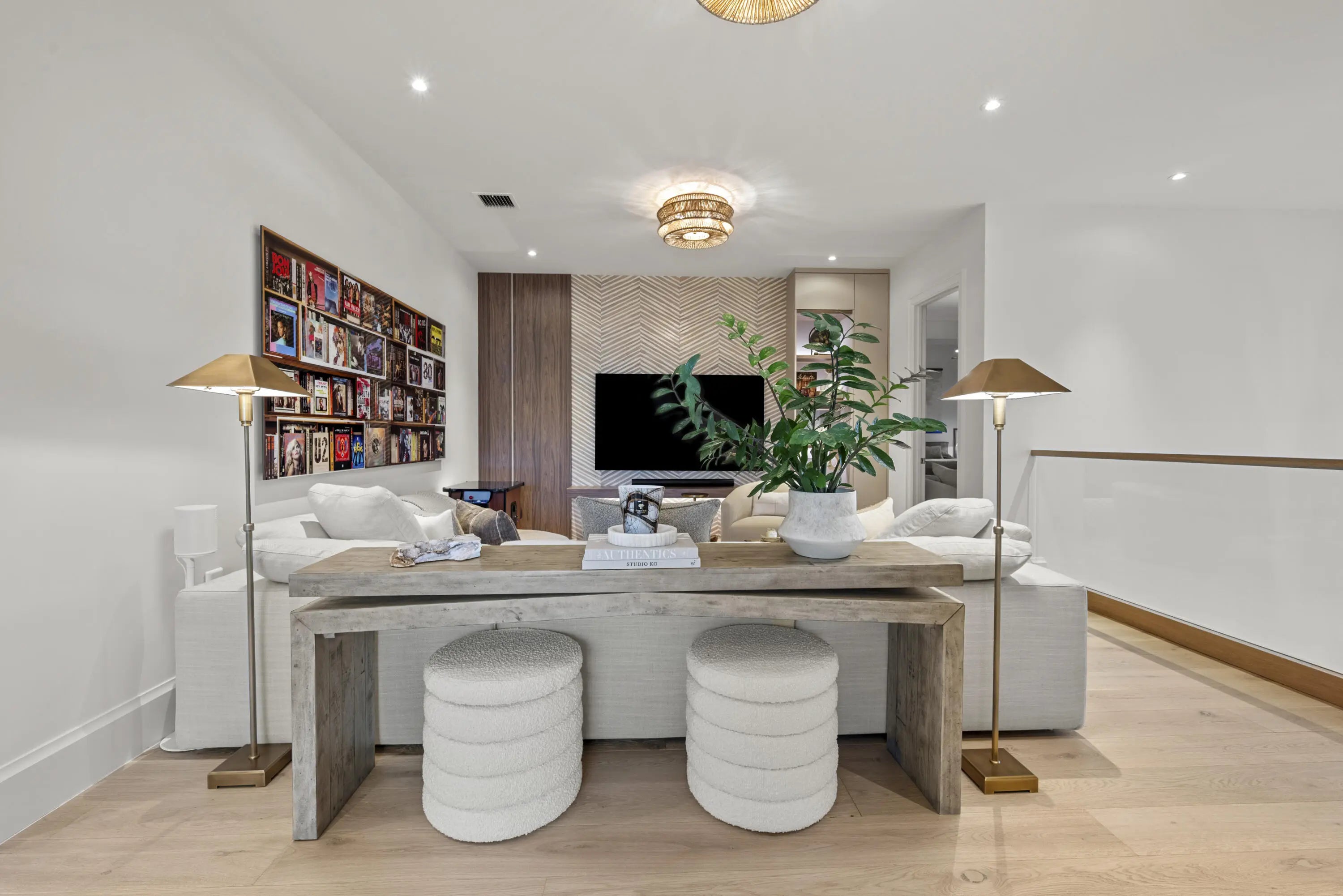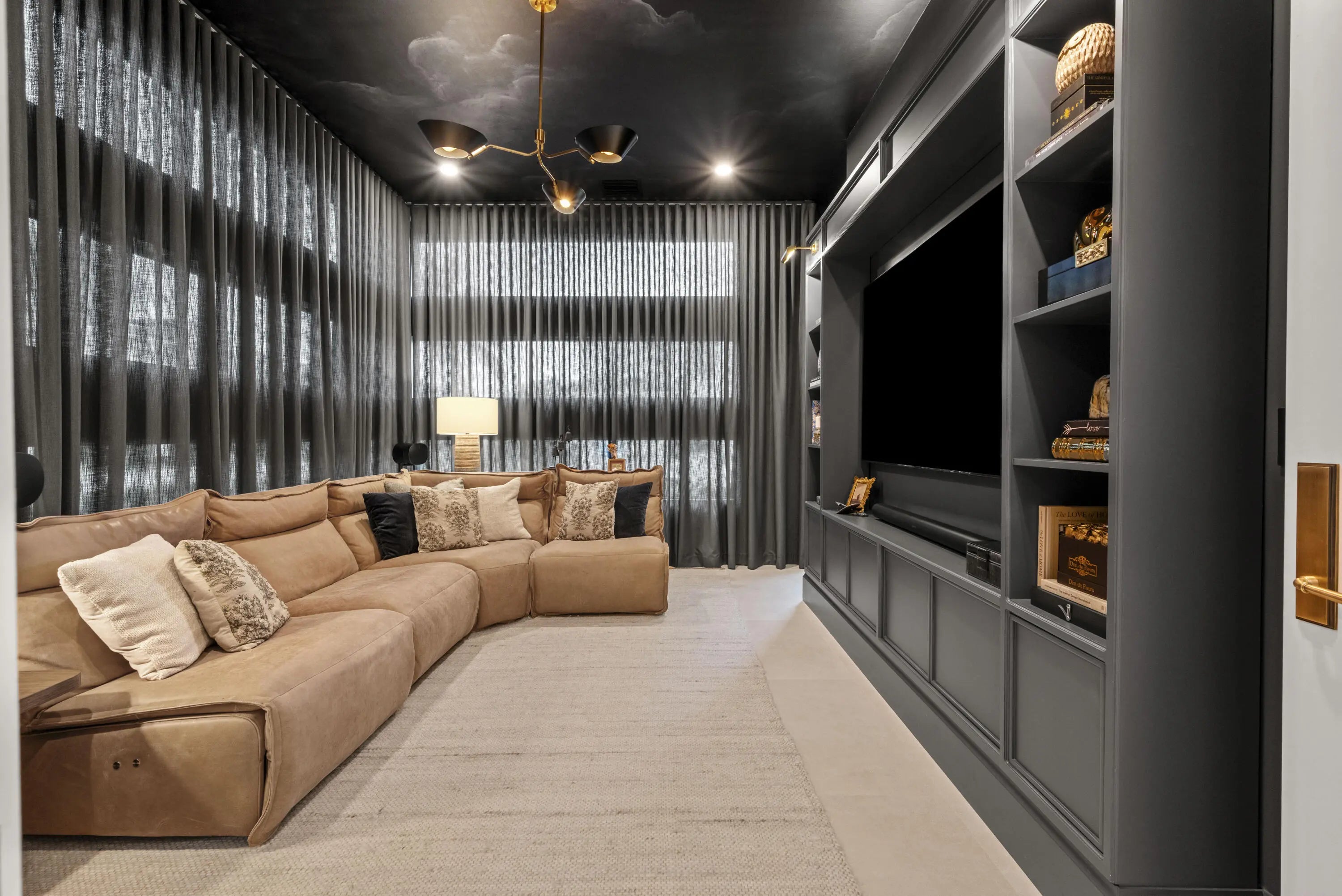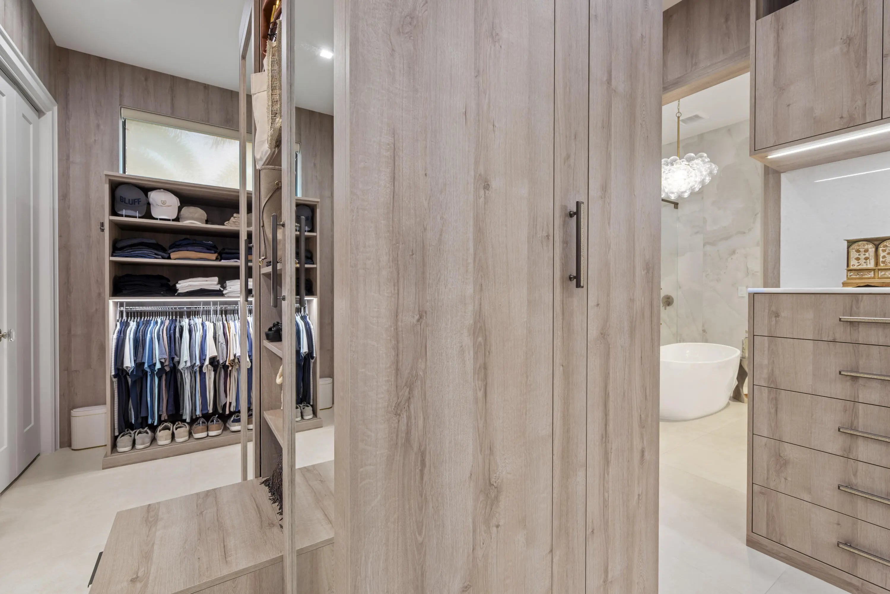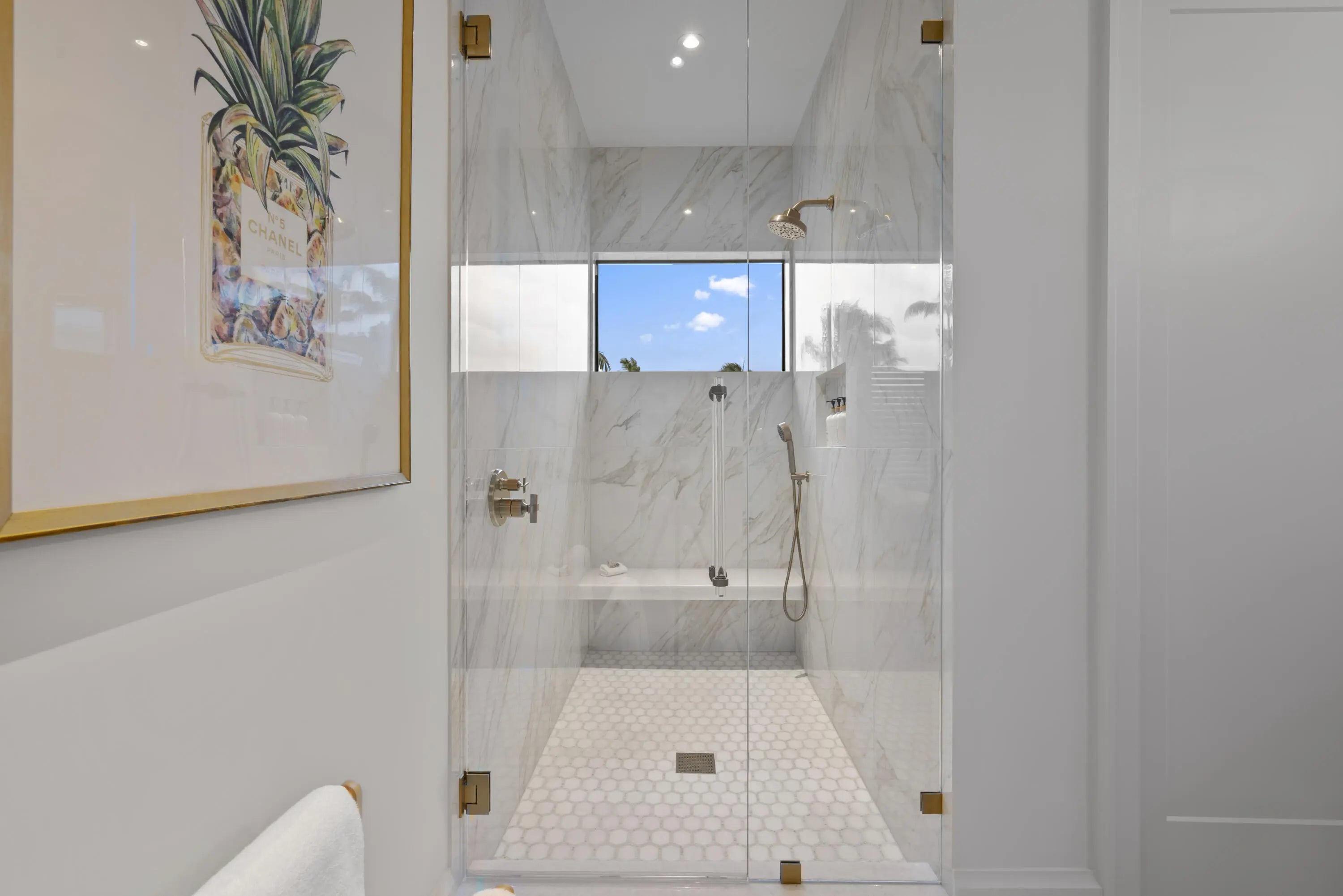 Experience refined luxury in this exceptional custom new-construction residence located in the heart of downtown Boca Raton. Designed with meticulous attention to detail, this sophisticated home showcases bespoke finishes, cutting edge technology, and warmly curated spaces. A dramatic two-story foyer with soaring ceilings and a statement Shakuff chandelier sets the tone, leading into expansive open, living areas. The great room features a 10 foot linear fireplace with a quartzite surround and illuminated tray ceiling. The spectacular gourmet chef's kitchen is equipped with Wolf and Miele appliances, custom cabinetry, and a striking marble island and backsplash. A glamorous speakeasy bar adds both style and function, making this space truly unique.