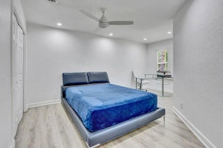 GREAT VALUE! This light & open 2-story home of 3 bedrooms & 2 1/2 baths features volume ceilings with LED lighting & custom ceiling fans; neutral luxury vinyl flooring & plantation shutters. The kitchen offers 42'' white cabinetry, white quartz countertops & stainless steel appliances. The Family Room has a contemporary built-in entertainment credenza. The Primary suite offers a spacious walk-in custom-configured closet. Other interior features include a built-in loft desk area; marble countertop in the upstairs secondary bathroom; newer washer & dryer, garage storage cabinets & tankless water heater. Relax in the inviting rear patio featuring a large pool with a waterfall, a turfed area & extensive tropical landscape design. Furnishings & golf cart available for sale.