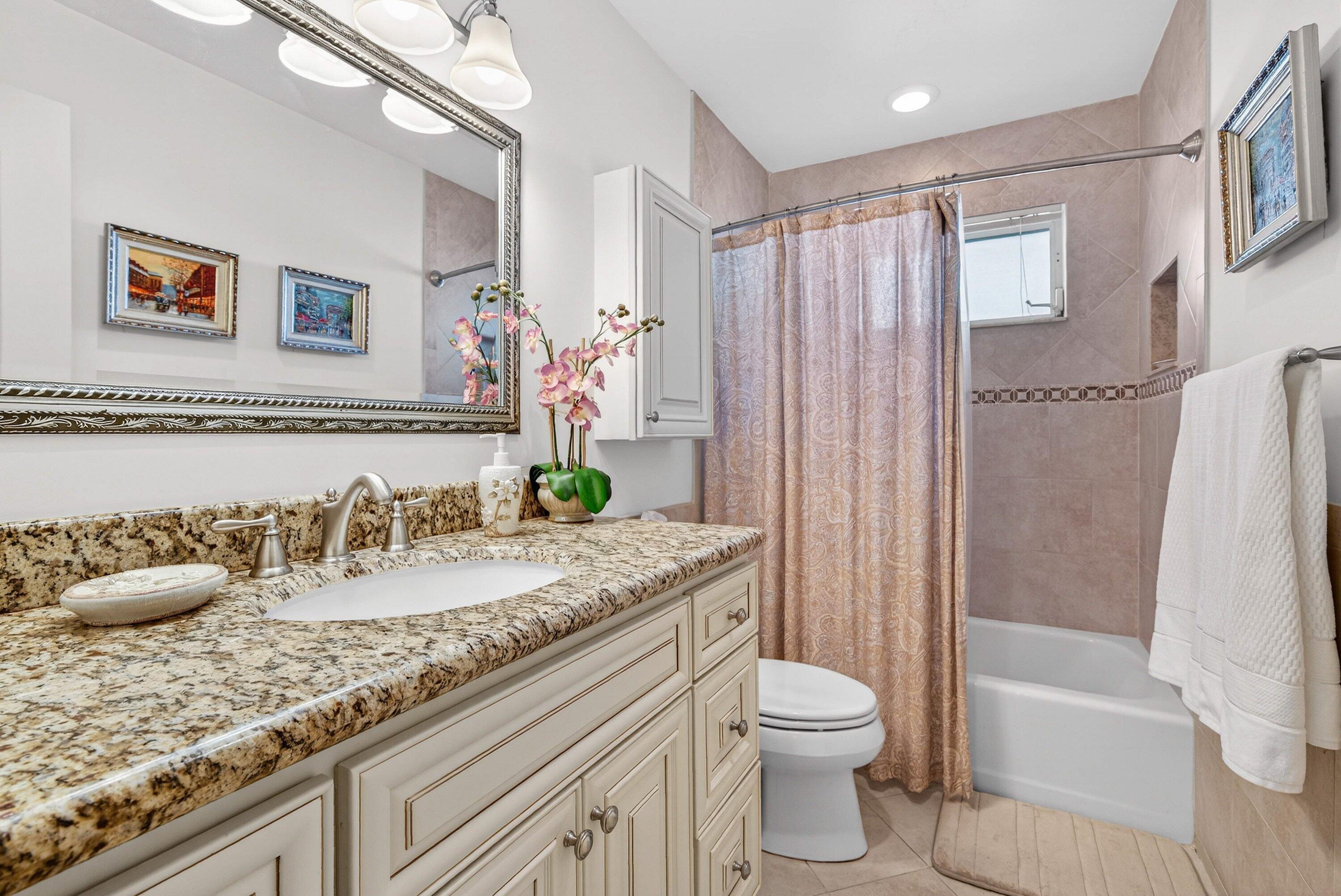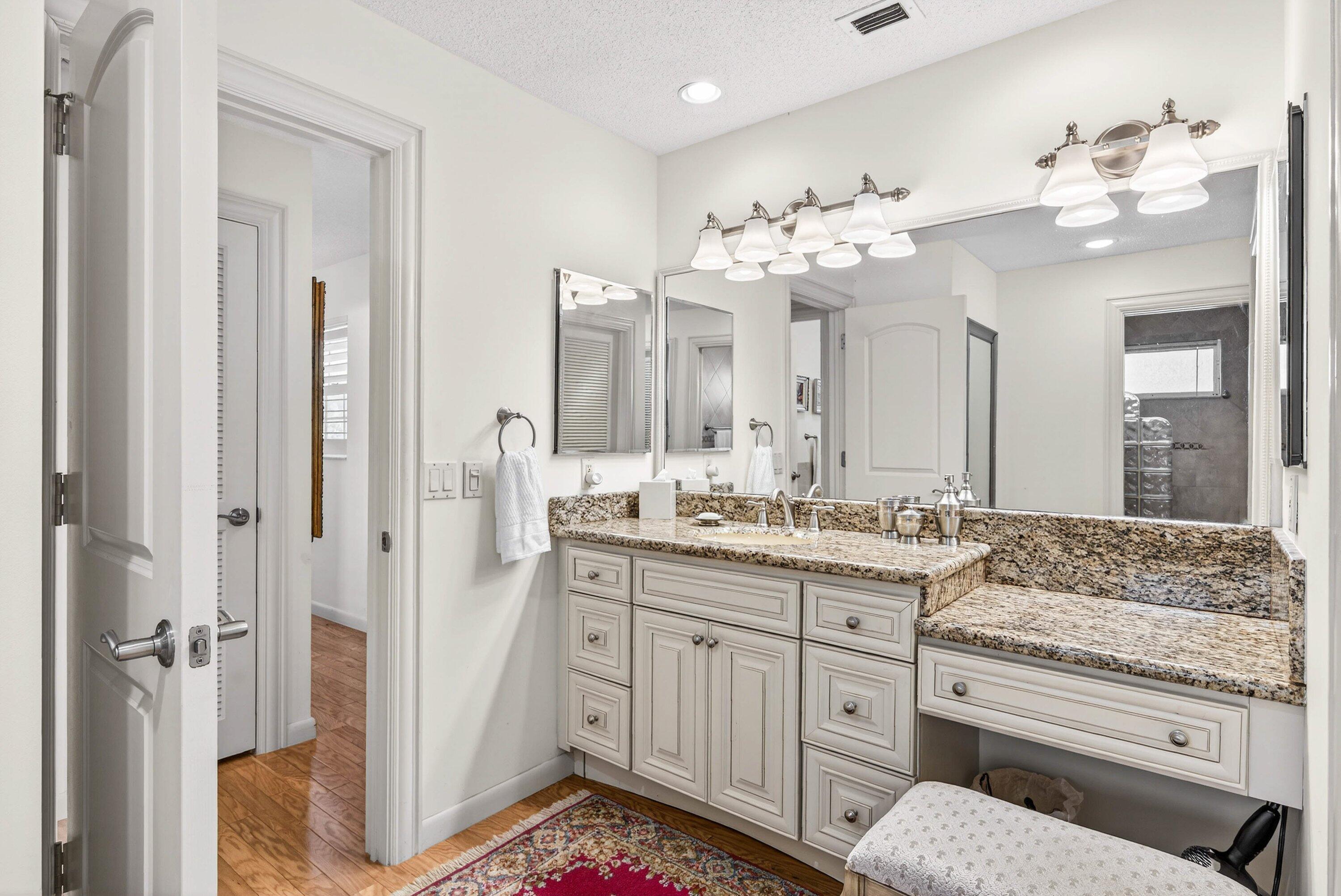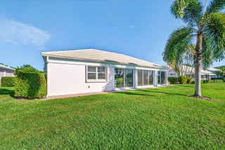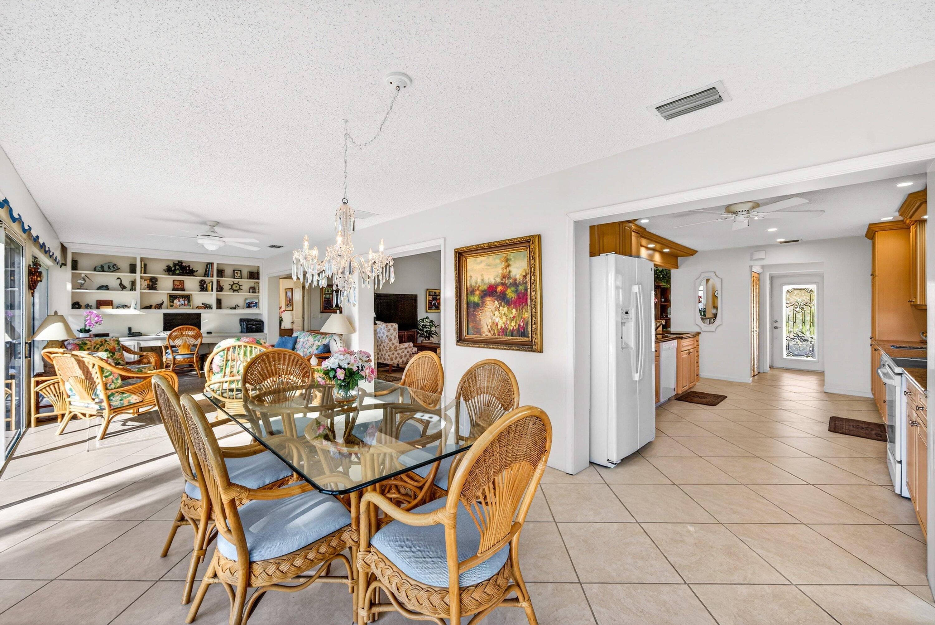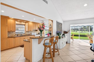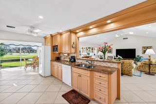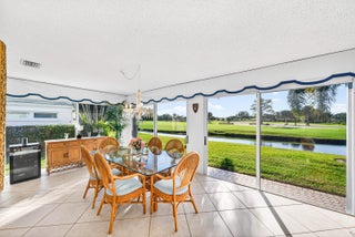 Beautiful villa with sweeping lake and golf course views, highlighted by a wall of glass sliders that fill the home with natural light. The kitchen offers granite countertops, light wood cabinetry, and a convenient snack bar. Built-in laundry cabinetry provides excellent storage. Both bathrooms have been updated, with the primary bath featuring a spacious dressing area and sit-down vanity. Recent improvements include a new A/C in 2025 and a new roof currently in process for 2026. Located in the popular and convenient Sanderling area of Quail Ridge. Quail Ridge is a mandatory membership community offering championship golf, racquet sports, fitness center and spa, and a clubhouse with fine dining and more.
