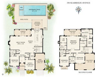 READY FOR SEASON! Welcome to 350 Seabreeze Ave, a 5 bed/5.5 bath, modern Mediterranean masterpiece in the highly desired Sea Streets, just steps to the beach, trail, schools and shopping. Situated on an expansive lot with prime SW exposure and high elevation, this NEW CONSTRUCTION home features a huge primary suite with dual bathrooms/closets, rift white oak kitchen with Subzero, Wolf & Miele appliances, Calacatta Gold, Bulgarian limestone and European white oak flooring, Lutron lights/shades, elevator and Kohler generator! The tranquil outdoor spaces include loggia, pool, spa, fountain, shower, BBQ and 600 sq. ft. of balconies! The exterior showcases Hartman mahogany windows, cast stone, cypress ceilings, Old Chicago pavers, Dominican coral stone, barrel clay roof and copper gutters.