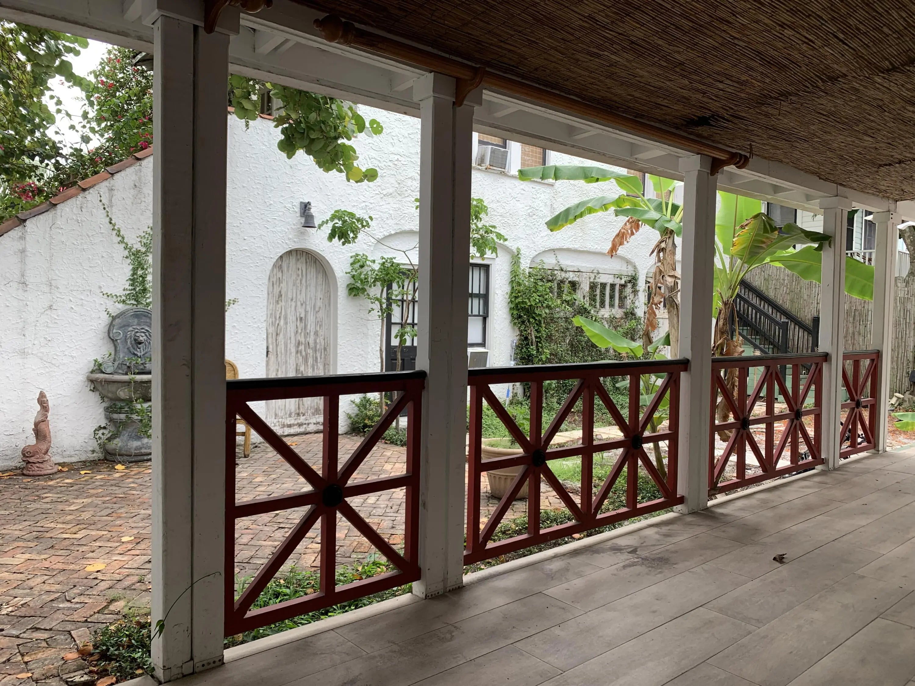 Spacious one bed studio w/ full bedroom, kitchen/ living room/ full bath/ porch that is light, with views of the courtyard and garden. This private compound is surrounded by lush landscaping and offers front and back street parking with locked gates as entrances. The apt comes partially furnished. There is access to washer and dryer at the property for your use.