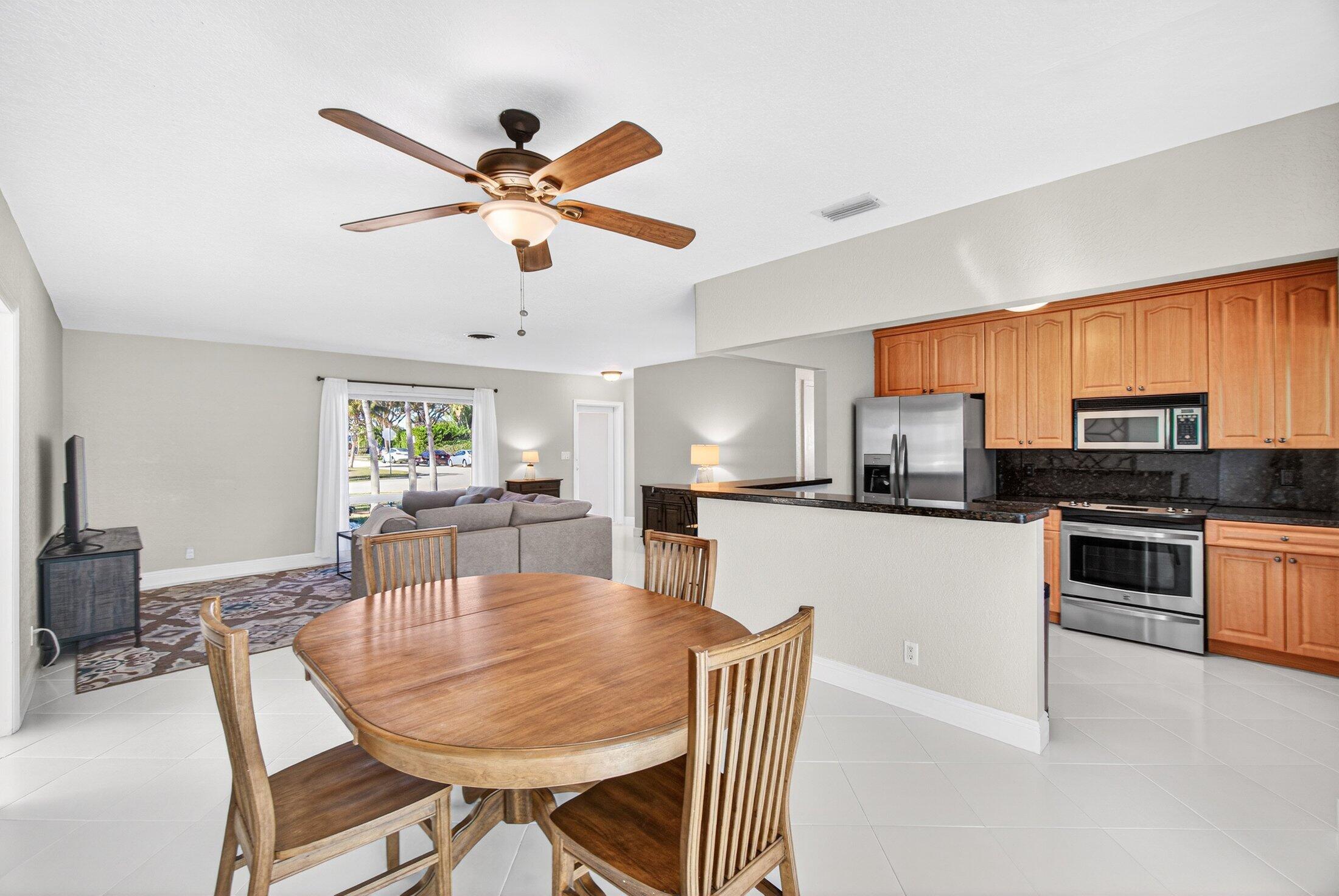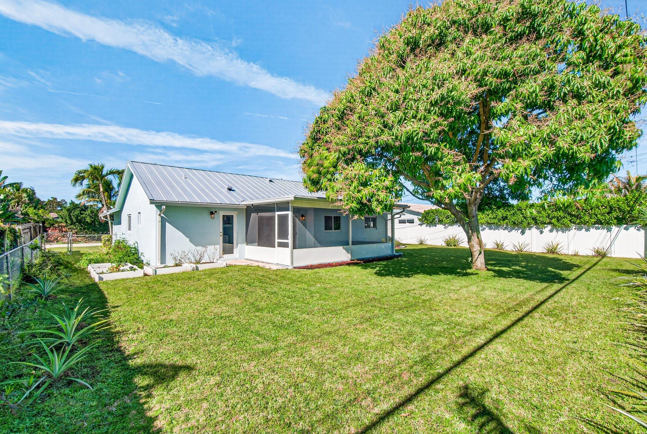 Great opportunity to own this well maintained family home, in a highly desirable East Boca, quiet neighborhood, located in a top rated school district. A split floor plan, tiled throughout with 3 bedrooms, two bathrooms and a separate laundry room. The updated kitchen, which has ss appliances,(refrigerator 2025) and granite counter tops is open to the spacious living and dining room area. A new metal roof installed in 2022 - a huge plus. Impact windows and doors throughout! A large screened patio overlooks a manicured fenced backyard with room for a pool and complete with a Thai mango tree and abundant producing pineapple plants. Just 3 miles to the beach and 2 miles to Sugar Sand Park. Easy access to the I-95 and minutes from great shopping, dining and entertainment.