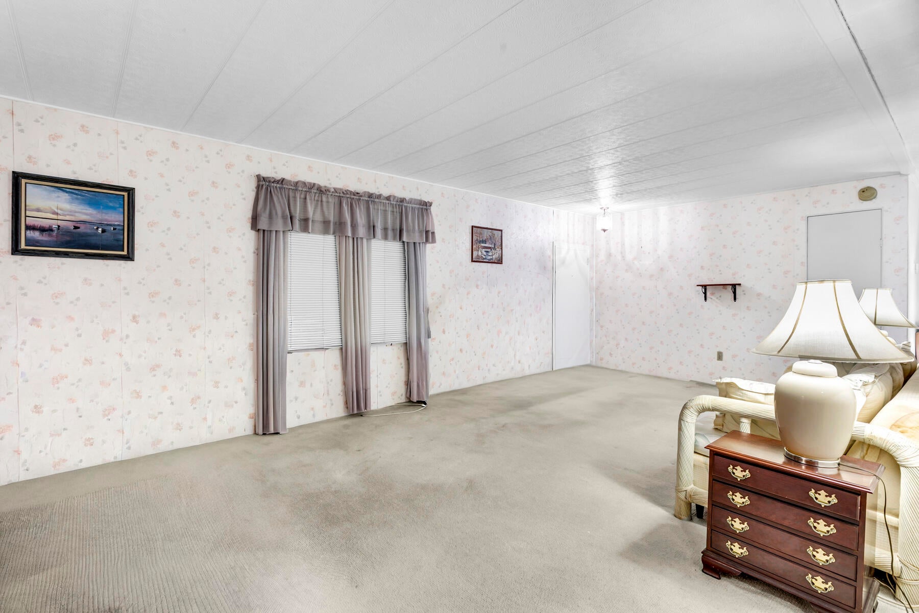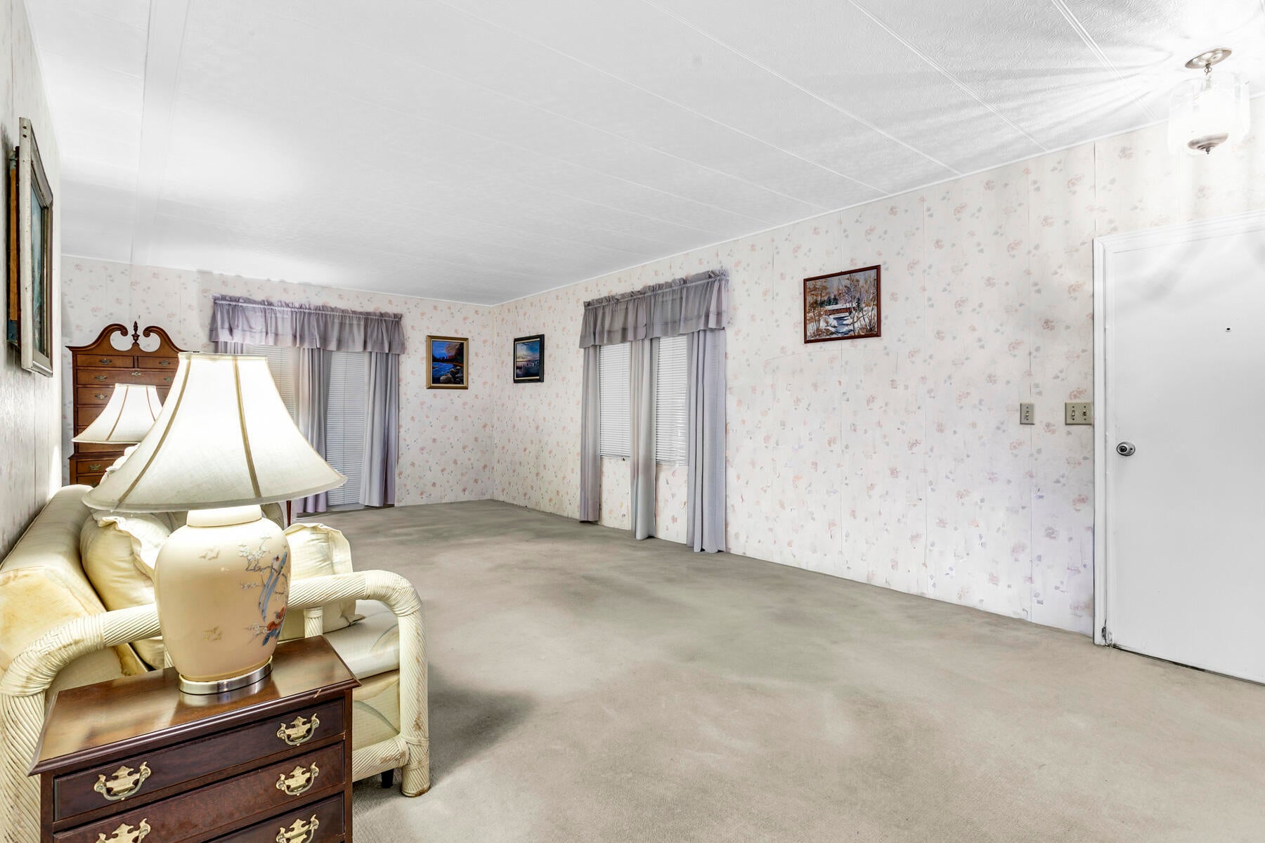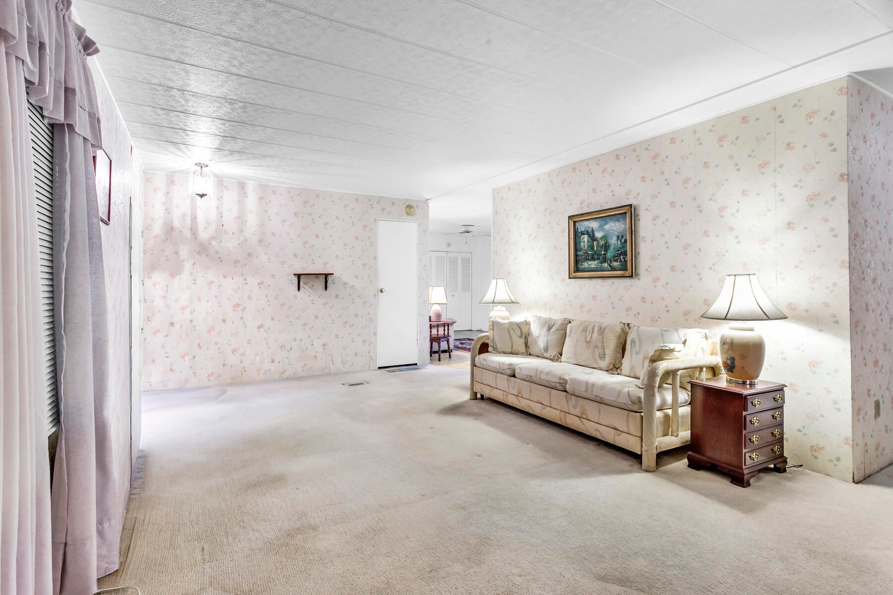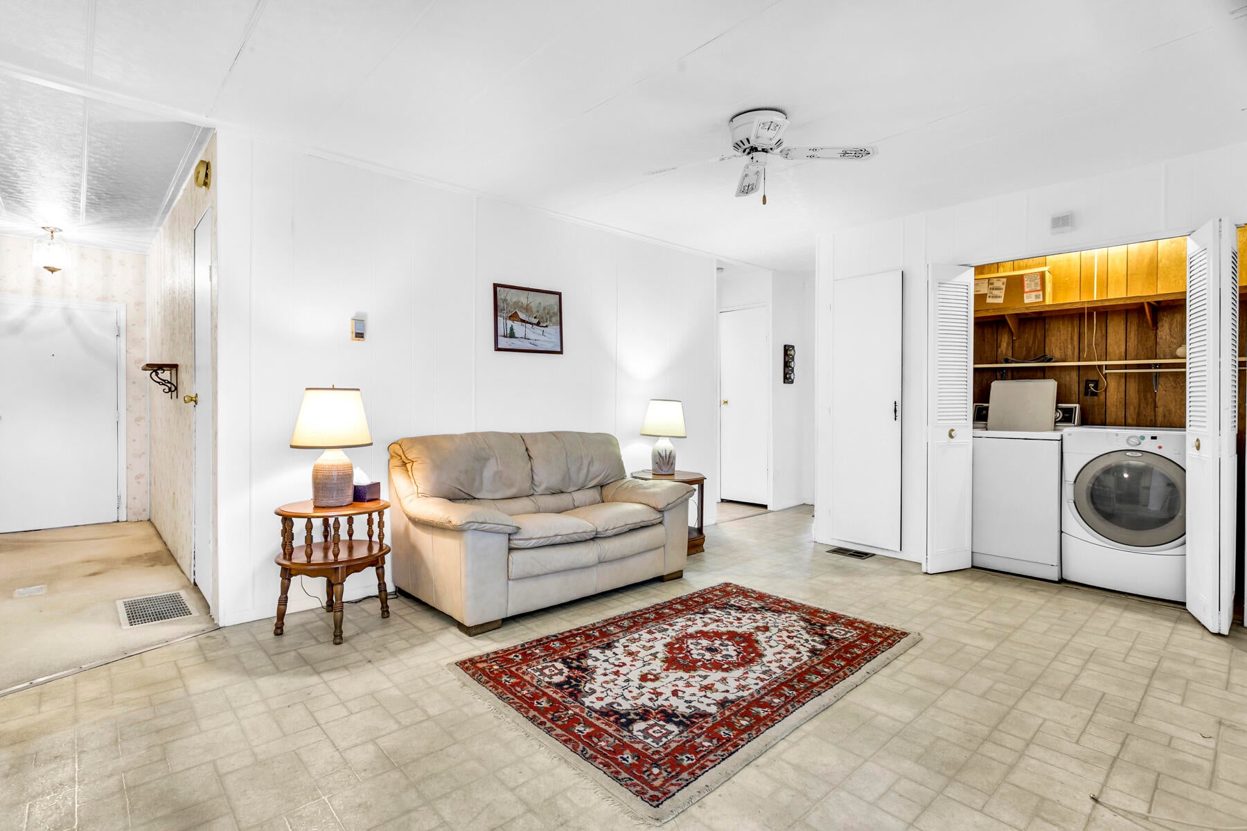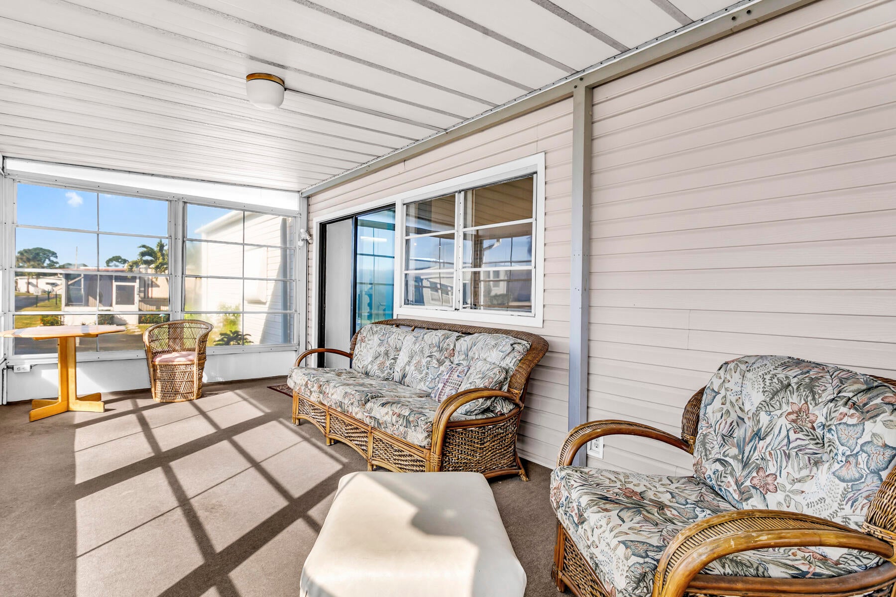 This property is an investor's dream, offering generous space and great potential. It features a living room and family room, an open kitchen with a dining area and built‑in buffet, plus two large bedrooms. The main suite includes a walk‑in closet and a roomy bath with a step‑in shower, while the guest room offers ample storage and guest bathroom has a tub/shower combo. Enjoy both a screened patio and a covered outdoor area. With two storage sheds, indoor laundry, and the possibility to convert to a three bedroom, this home has endless possibilities. This is a gated community with a low monthly fee. NO Land Lease. Active clubhouse with heated pools, pickle ball, shuffleboard, bingo, cards, dances and so much more. Close to plenty of shopping and dining and local beac