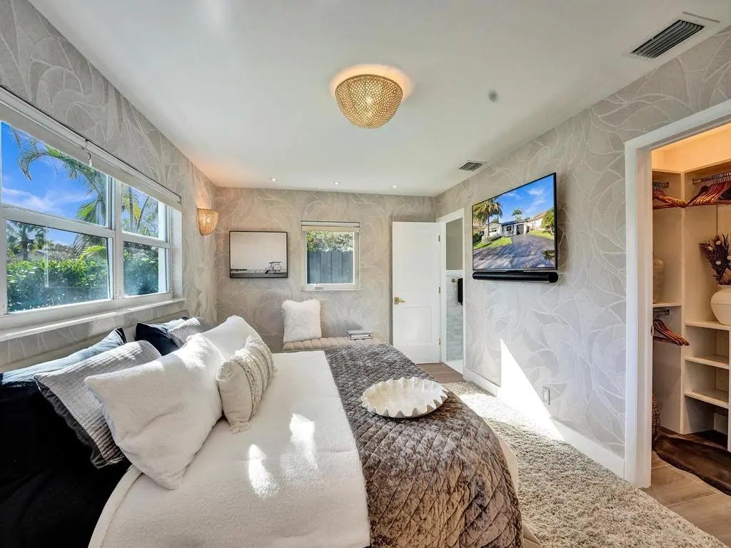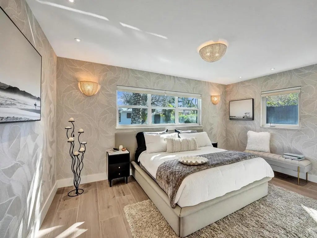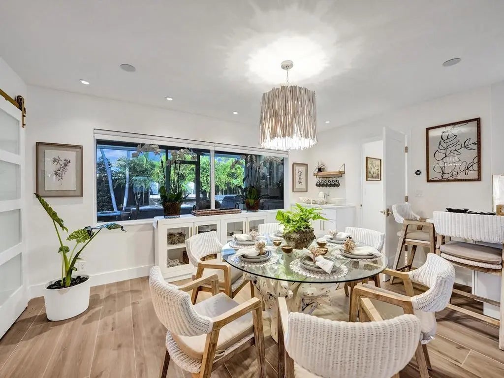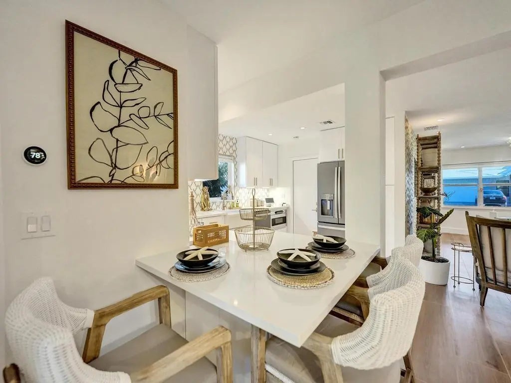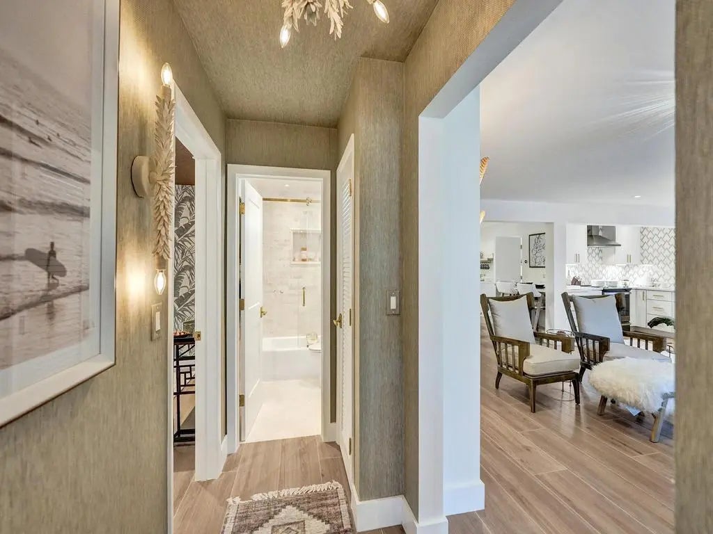 Coastal Elegance Meets Designer Luxury in This Fully Renovated Sanctuary Step into this exquisitely designed and fully renovated 3-bedroom, 3-bathroom retreat, masterfully curated by renowned interior designer Jeanne Michelle of Palm Beach, Florida. This turnkey coastal haven blends refined luxury with seaside charm, offering a move-in-ready experience where no detail has been overlooked. Every space is thoughtfully appointed with high-end furnishings, fine antiques, and nature-inspired accents, creating a serene and sophisticated ambiance throughout. Textured wallpaper, grasscloth wall coverings, and natural fiber elements add warmth and depth to each room, while Smeg small appliances and carefully selected designer pieces elevate the home's modern coastal style.