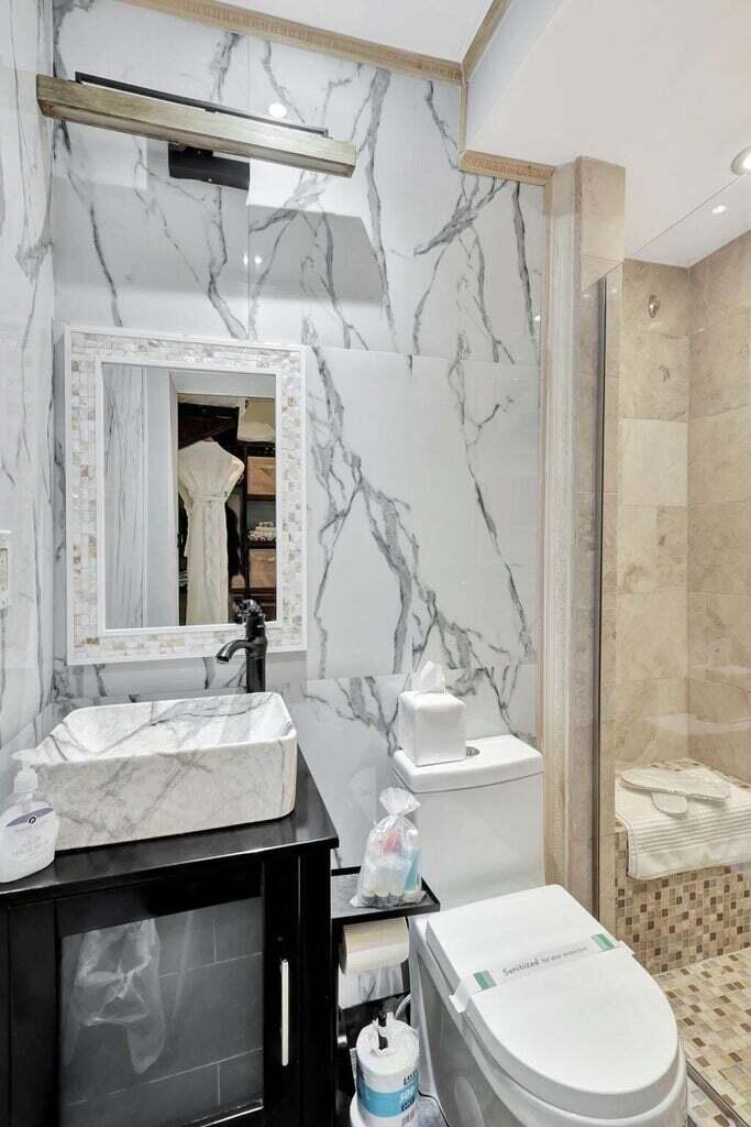 Discover the epitome of luxury living in the heart of Palm Beach Island with this stunning, completely remodeled 1-bedroom gem. Just one block from the ocean, this apartment truly has it all--and then some! Step into a space where modern elegance meets convenience. The kitchen is a chef's dream, boasting the latest appliances, including a built-in cooktop, extractor fan, fridge, dishwasher, wine cooler, and a microwave. You'll love the quartz countertops and backsplash, and the spacious peninsula that seats three--perfect for casual dining or entertaining. The bathroom is equally impressive, with floor-to-ceiling tiling that screams contemporary sophistication. The entire apartment is fully furnished with brand-new, high-end pieces.