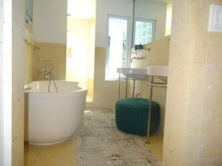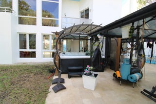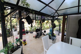 Unique luxury home designed and built by renowned equestrian architects Guiterrez and Uribe who have also designed plans for a barn complex, West Wing addition with 2 luxury penthouse suites overlooking planned swimming pool (See movie illustrations attached.). Existing improvements include 3 luxury spa baths one located on the Queens Suite balcony, Terracotta marble enclosed South patio with a gate to the dog run with a pond, Terracotta marble covered North spa /bar/ dining/ BBQ kitchen/ gym outside complex. 3 paddocks totaling c. 18,000 sf. Extensive new landscaping with dozens of roses, fruit and flowering trees and coconut palms. Palm trees along the entrance border with a palm tree blvd inside the new gates. See the captioned pictures and attached videos for more detail. Security cam