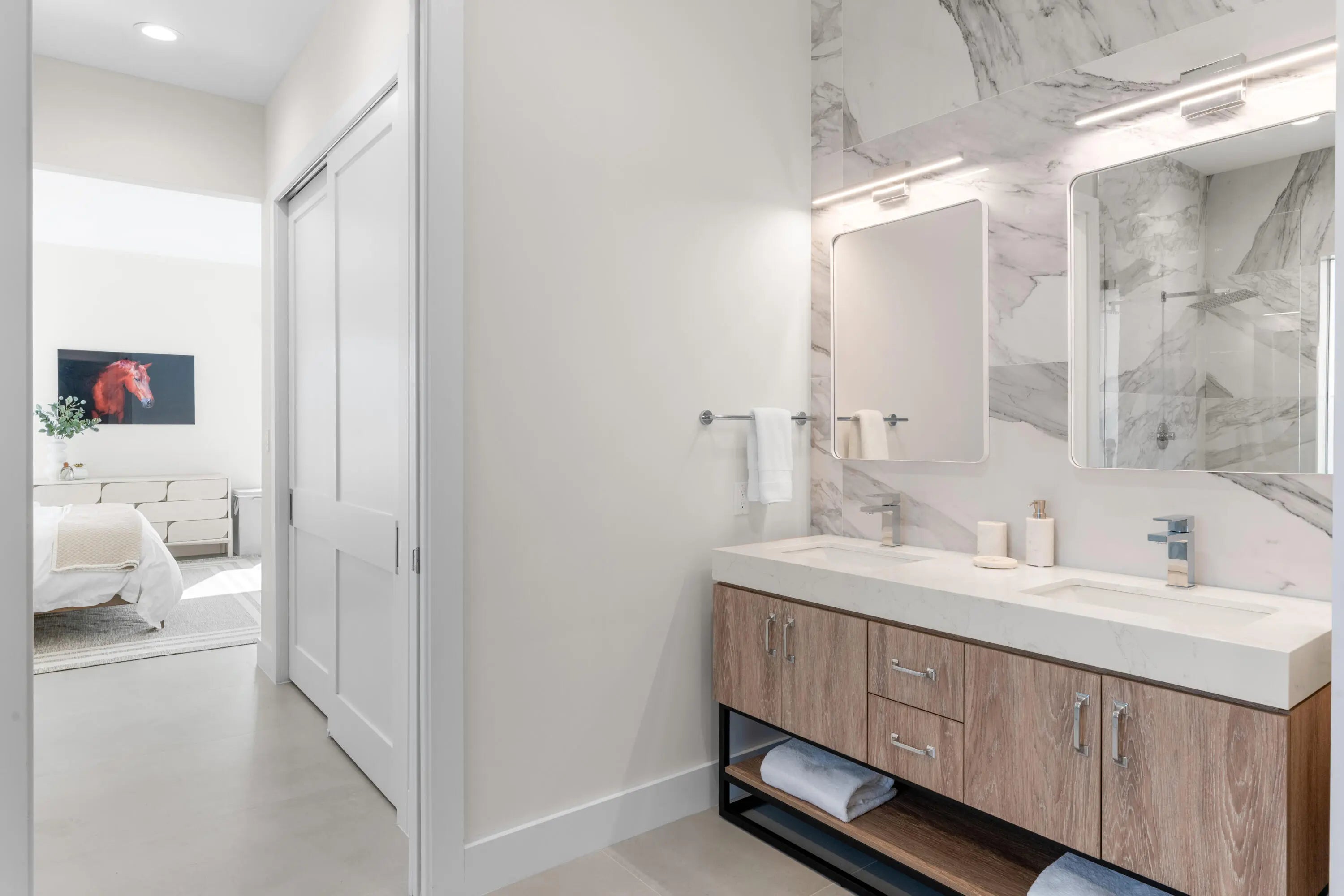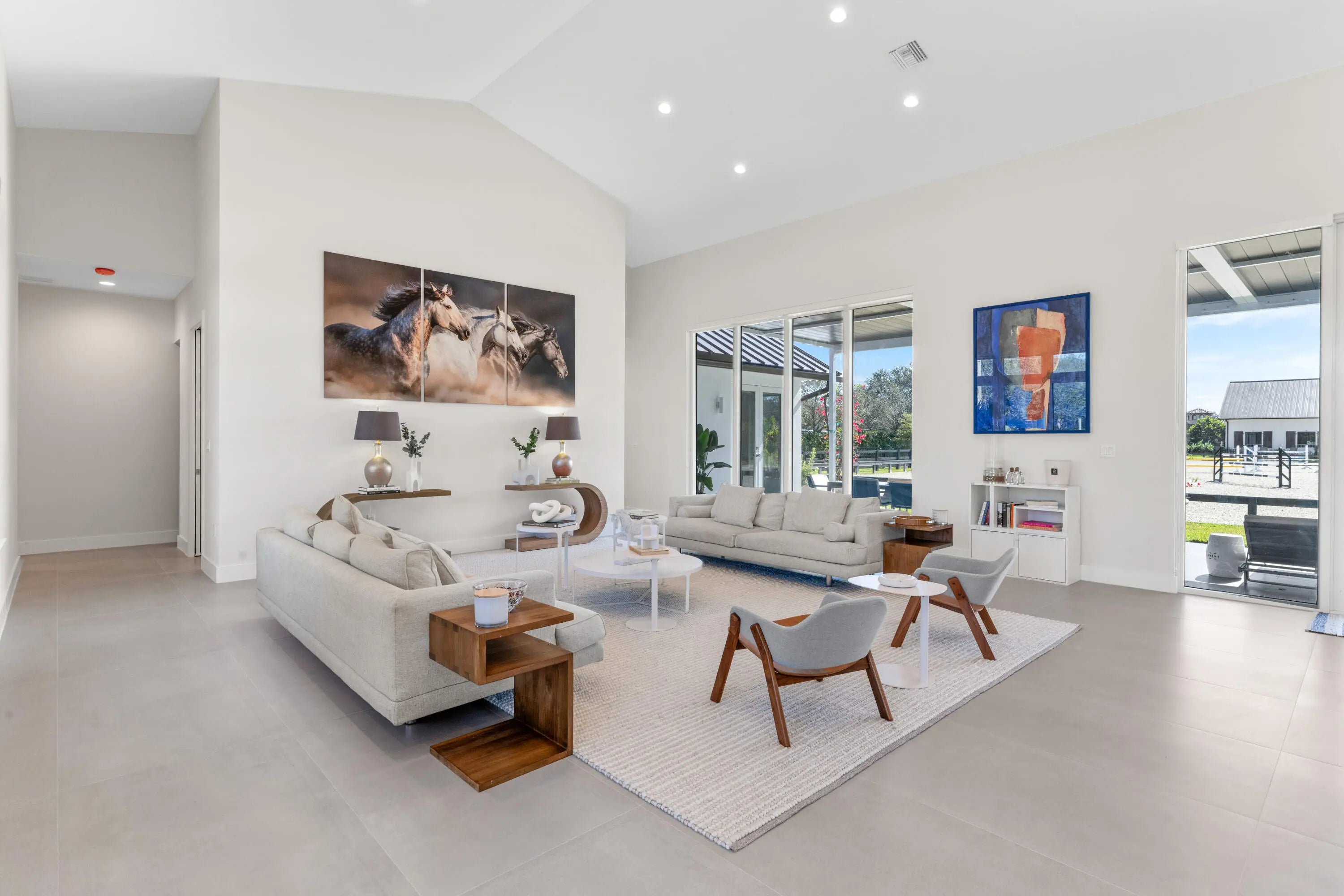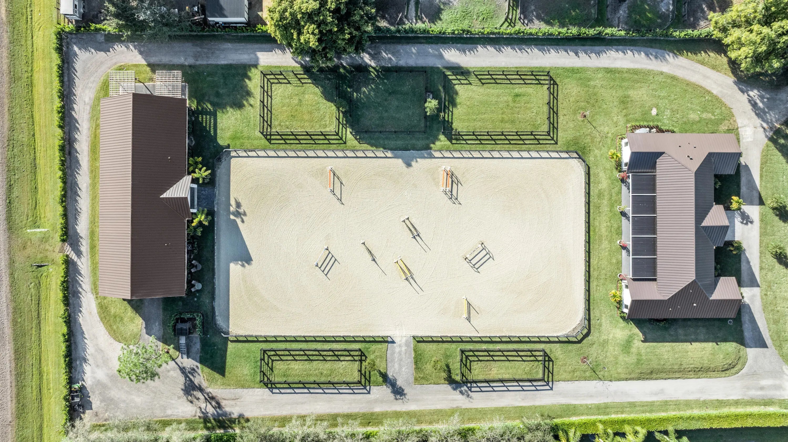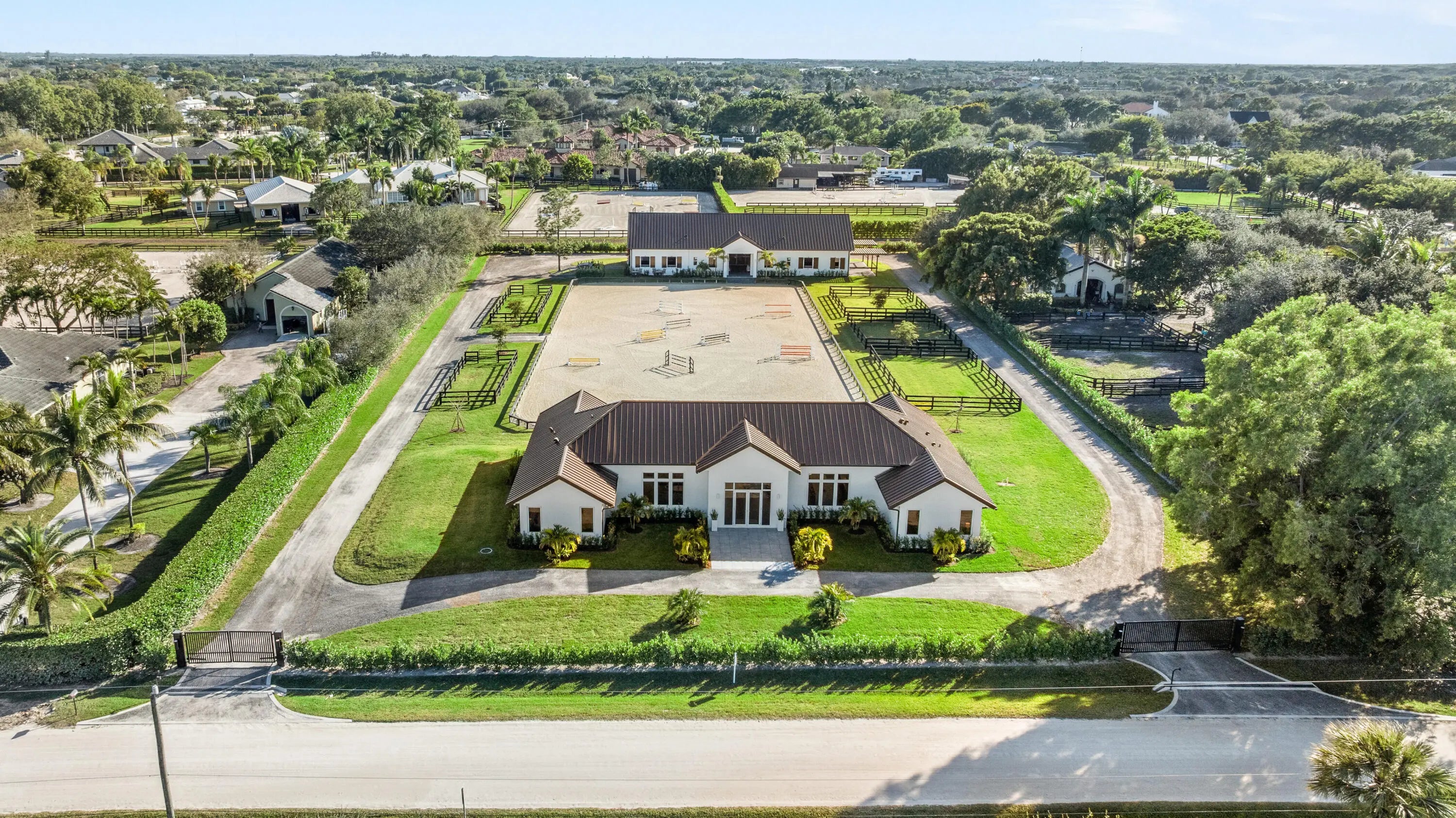 A Newly Built Equestrian Estate of Exceptional DistinctionIntroducing a rare opportunity to own a masterfully crafted equestrian estate set on more than 2 acres in one of the area's most sought‑after locations. This newly constructed compound blends architectural sophistication with world‑class equestrian amenities, creating a property that stands in a class of its own. The residence offers four beautifully appointed bedrooms, each with its own ensuite bath, designed to deliver refined comfort and privacy. An expansive open layout, dramatic ceiling heights, and walls of glass frame sweeping views of the 115' x 210' riding arena and the impeccably designed barn, bringing the equestrian lifestyle into every moment of the home.The 10‑stall barn is built to the highest st