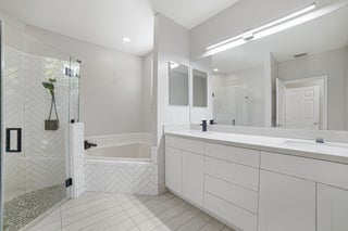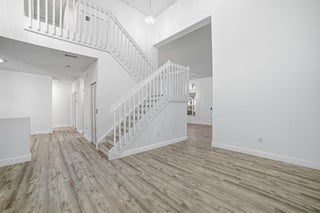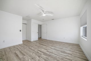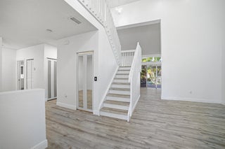 This stunning 4BR/3.5BA lakefront home delivers a bold, modern luxury feel with upgrades throughout. Featuring two true master bedrooms--one on the first floor and a second private master suite upstairs--the layout offers rare flexibility and privacy. Everything feels brand new, from the sleek white kitchen with quartz countertops and new Samsung Bespoke stainless steel appliances to the soaring ceilings and fully remodeled bathrooms. Enjoy a fenced backyard with covered patio, artificial turf, and room for a pool. Impact front door and garage door, accordion shutters, tile roof in excellent condition with 4-point/wind mitigation available. Located on a quiet cul-de-sac, not in a flood zone, with an oversized 3-car garage and resort-style community amenities including pool, gym,club-house.