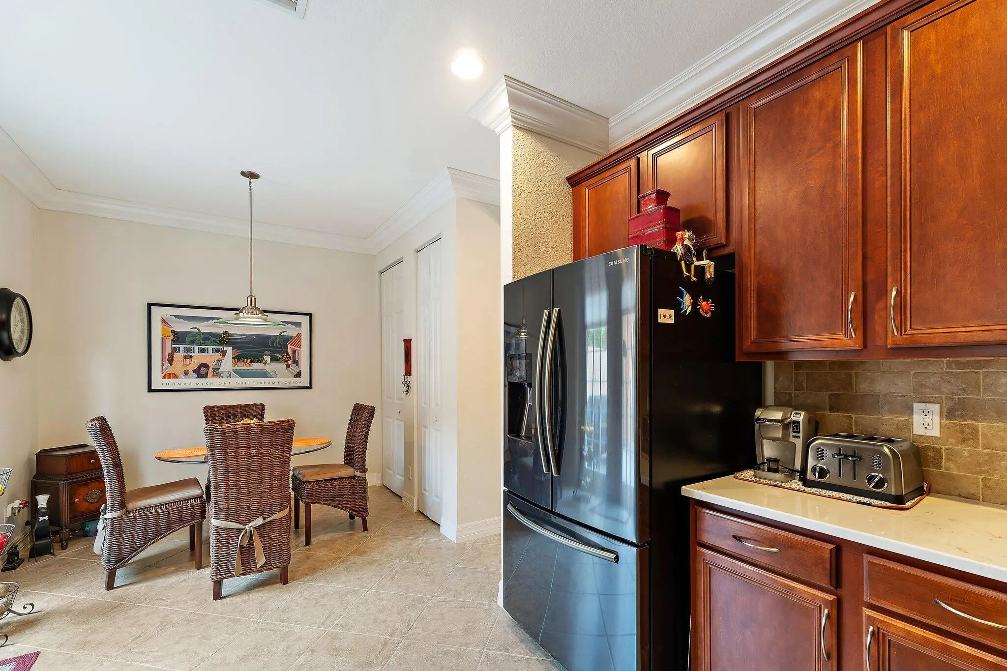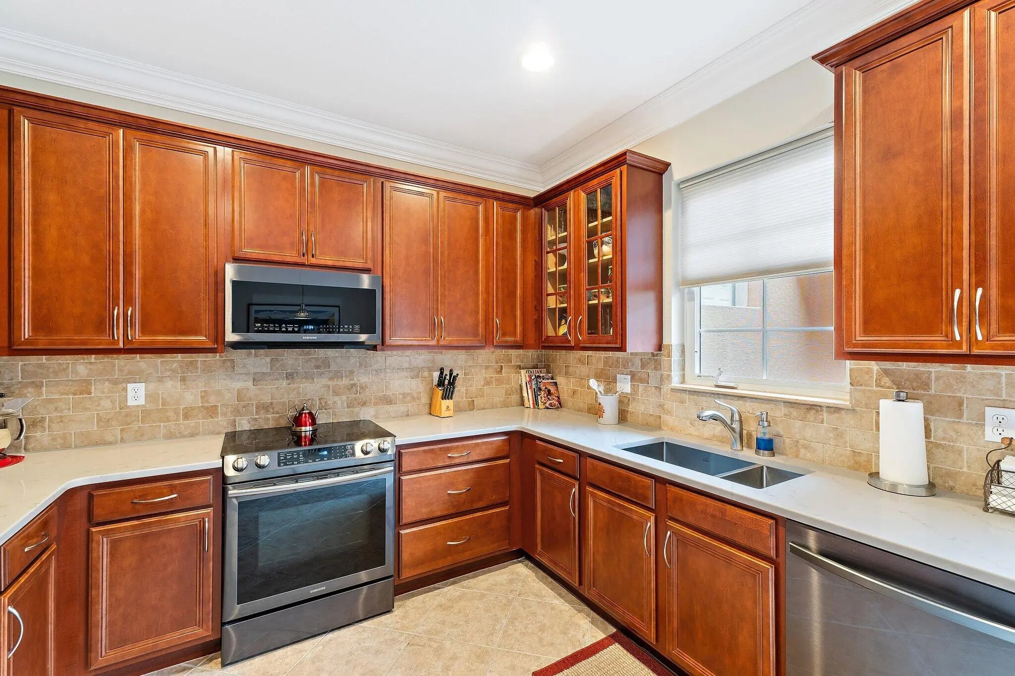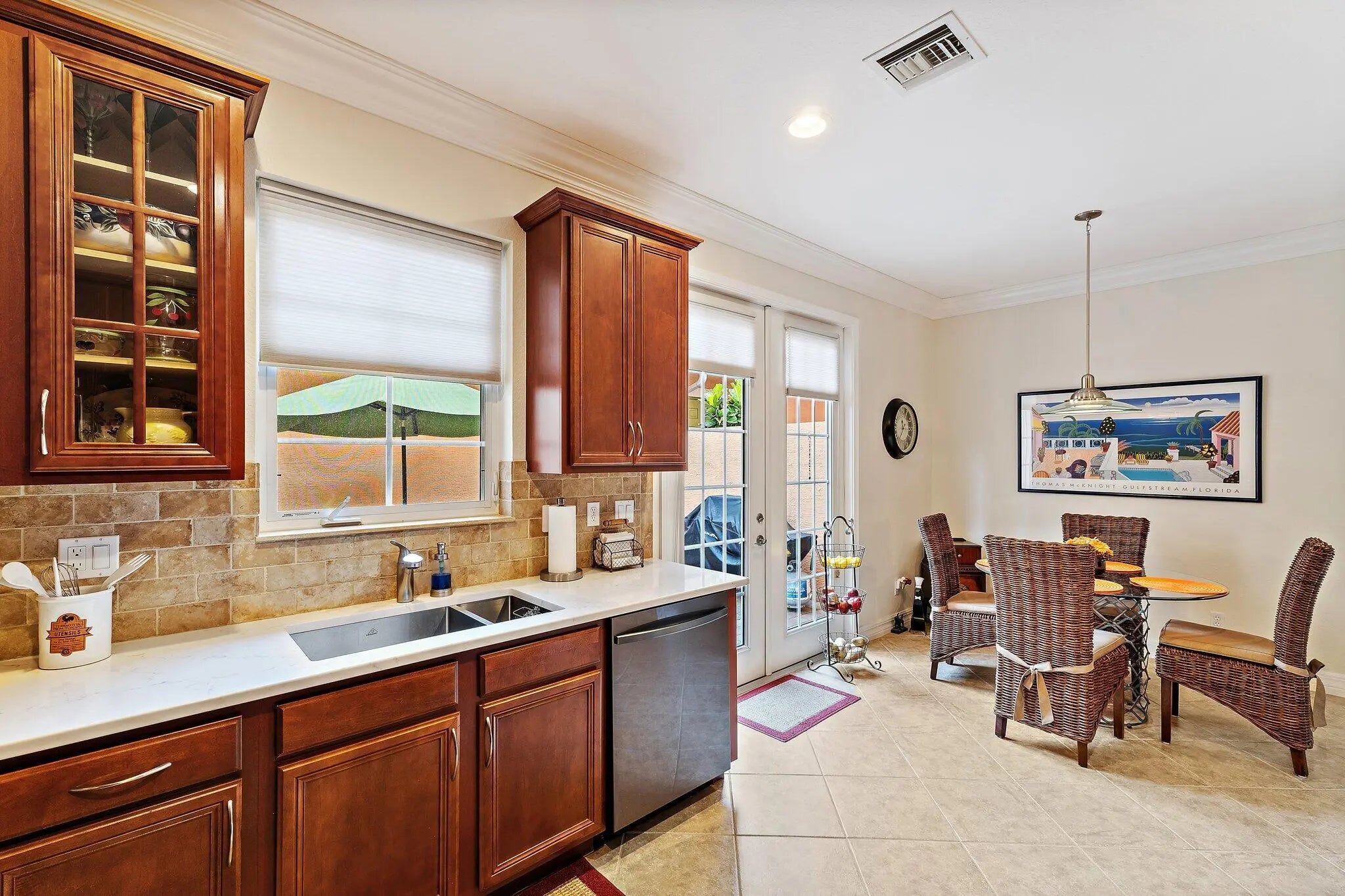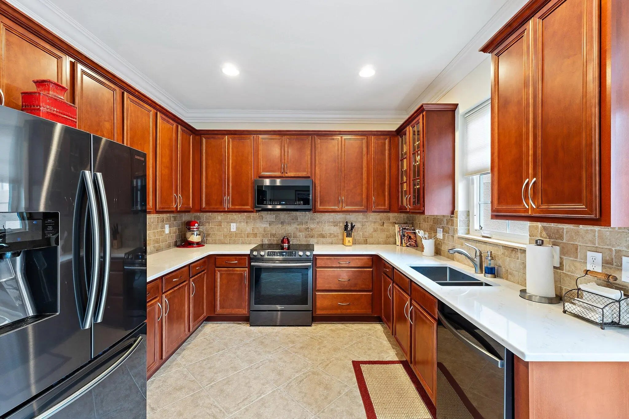 Beautiful Midleton Model townhome with 3 bedrooms, 2.5 baths, and a 2-car garage in the heart of Jupiter's Abacoa community. Set in a scenic park-like setting, this home features volume ceilings, crown molding, tile and luxury vinyl flooring, and all impact hurricane windows and doors. The eat-in kitchen offers wood cabinetry with glass accents, quartz countertops, and newer stainless steel Samsung appliances. The upstairs primary suite includes a walk-in closet and ensuite bath with dual sinks, soaking tub, and separate shower. Two additional bedrooms and second-floor laundry add convenience. Enjoy a private courtyard leading to the garage, perfect for entertaining. Recent updates include a 2023 A/C and 2019 water heater. Experience the vibrant lifestyle that makes Jupiter so desirable.