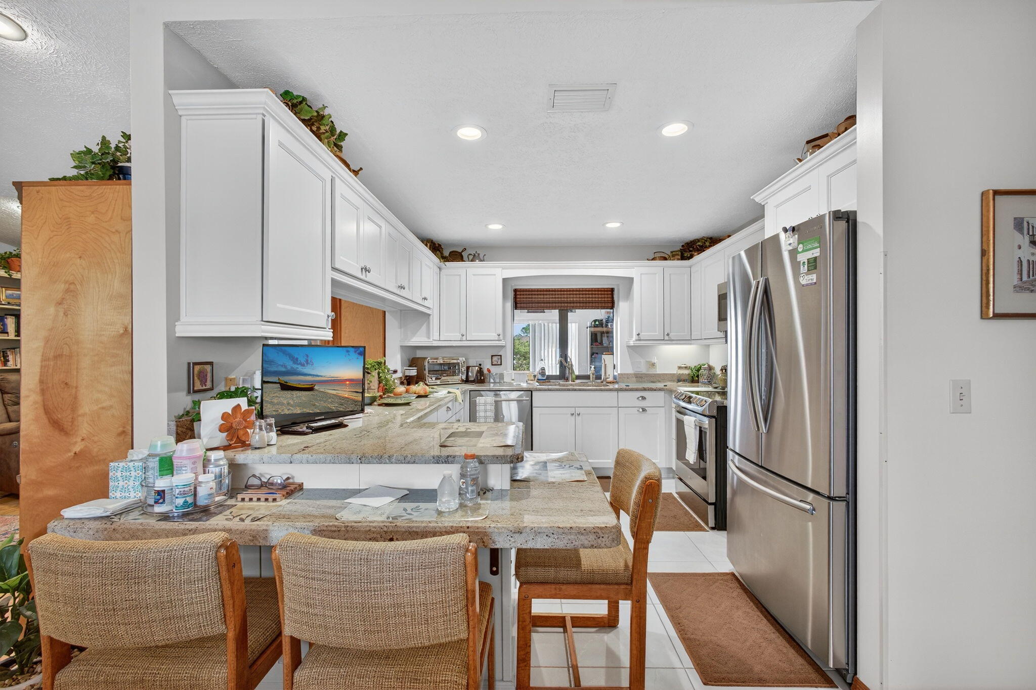 One-of-a-kind Thomas-built custom home overlooking a wide canal, framed by mature trees and the option to purchase the adjacent quarter-acre lot (cleared). This meticulously crafted residence features heavy-duty roof, trusses, and materials (everything roof-related replaced in April 2025), a poured-concrete shell, double-pane thermal windows, copper plumbing. Enjoy an oversized garage, extra-wide driveway, also generous closet space and plenty of storage with an oversized pantry. Soft-close kitchen cabinets, and three attic access points elevate everyday living. The home has a fenced-in backyard and outdoor patio with canal views for serene entertaining. Water treatment is included (reverse osmosis) outdoor water treatment is not. Bonus room. furniture is optional
