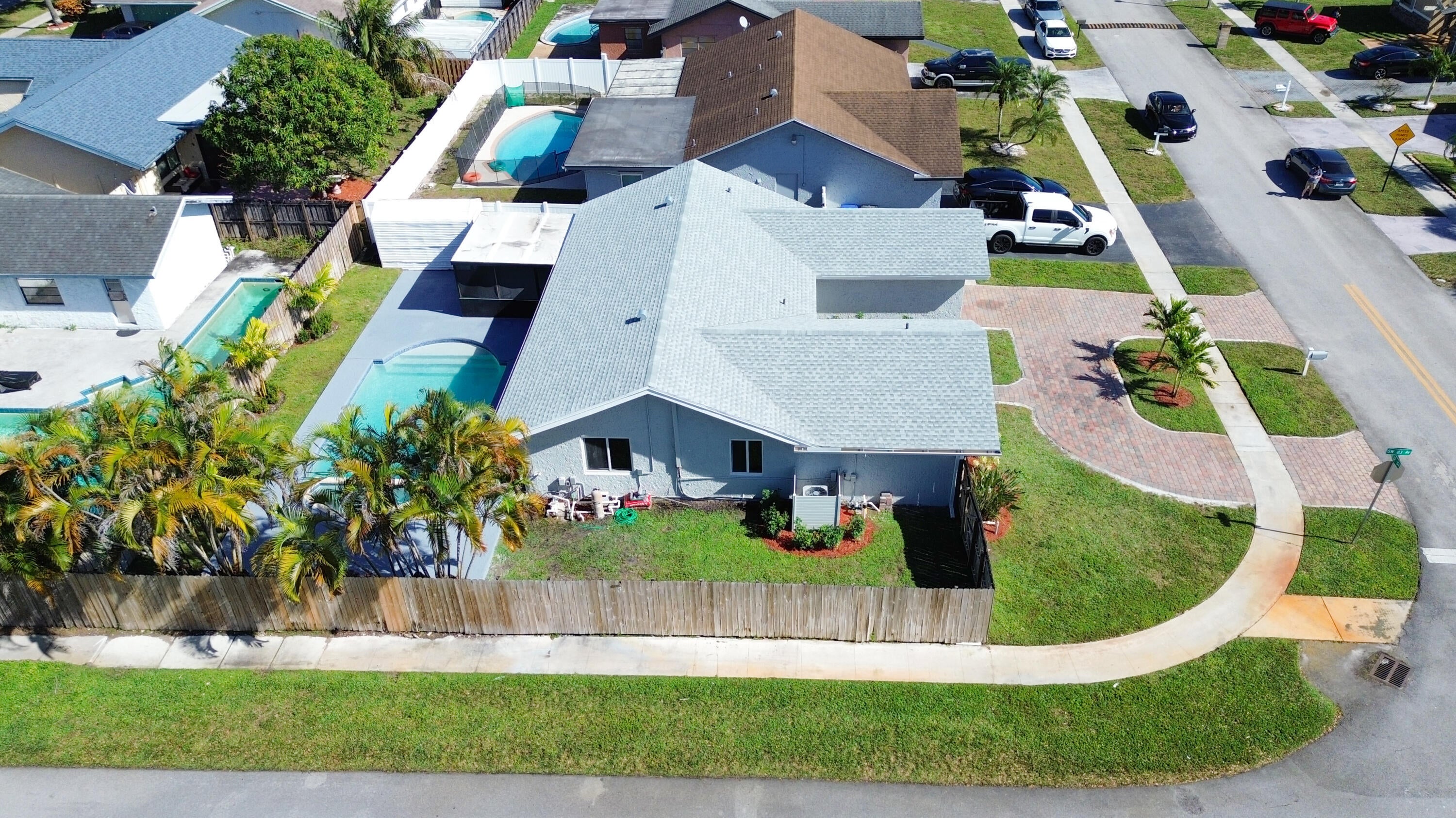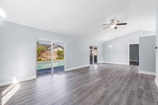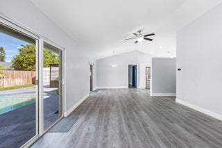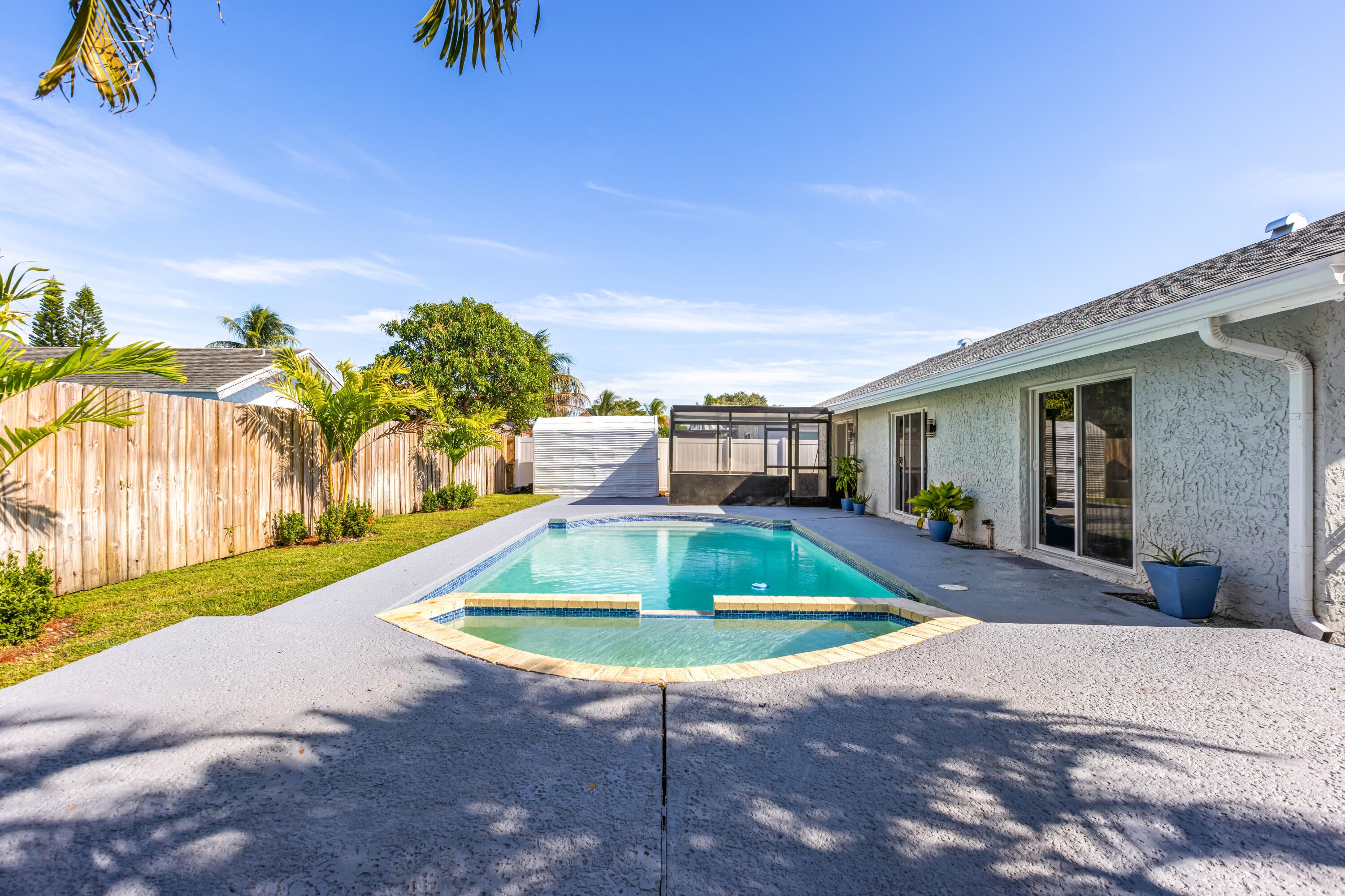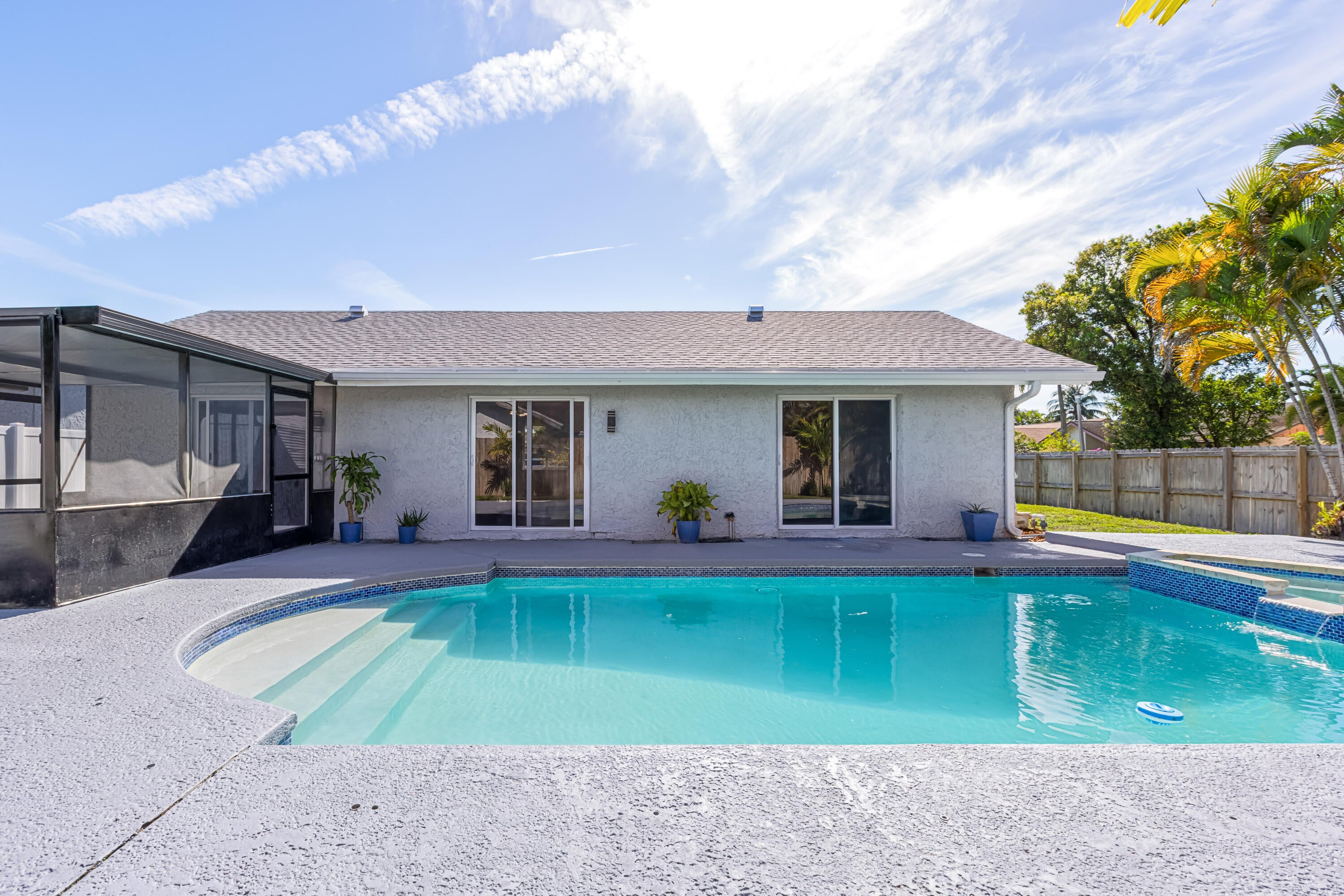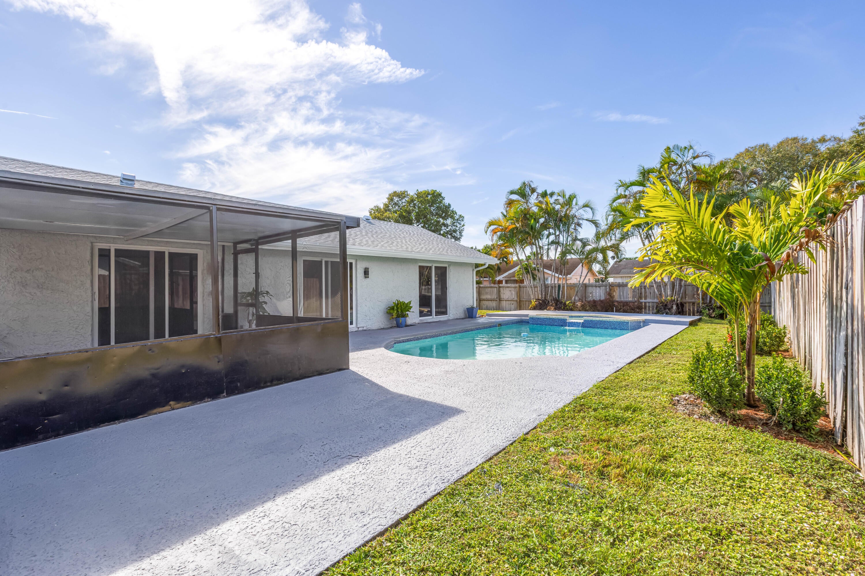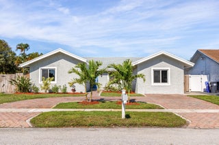 Your dream home is waiting for you in this beautifully upgraded and move-in ready home in an established neighborhood with sidewalks and NO HOA! This open concept 4/2 home offers modern finishes, IMPACT WINDOWS & SLIDING DOORS, NEW ROOF and a large FENCED-IN BACKYARD with a storage shed, pool with a waterfall and hot tub, perfect for entertaining! NEW BATHROOMS & KITCHEN newly updated. This spacious home is equipped with a washer and dryer, updated electric for TANKLESS WATER HEATER and HOT TUB! AC is less than 3 years old. Sprinkler water comes from a well! This corner lot with beautiful landscaping and a circular paver driveway has plenty of room for parking. Located within 30 minutes of the beach and major league sports and lots of restaurants and shopping! Come and see for yourself!!