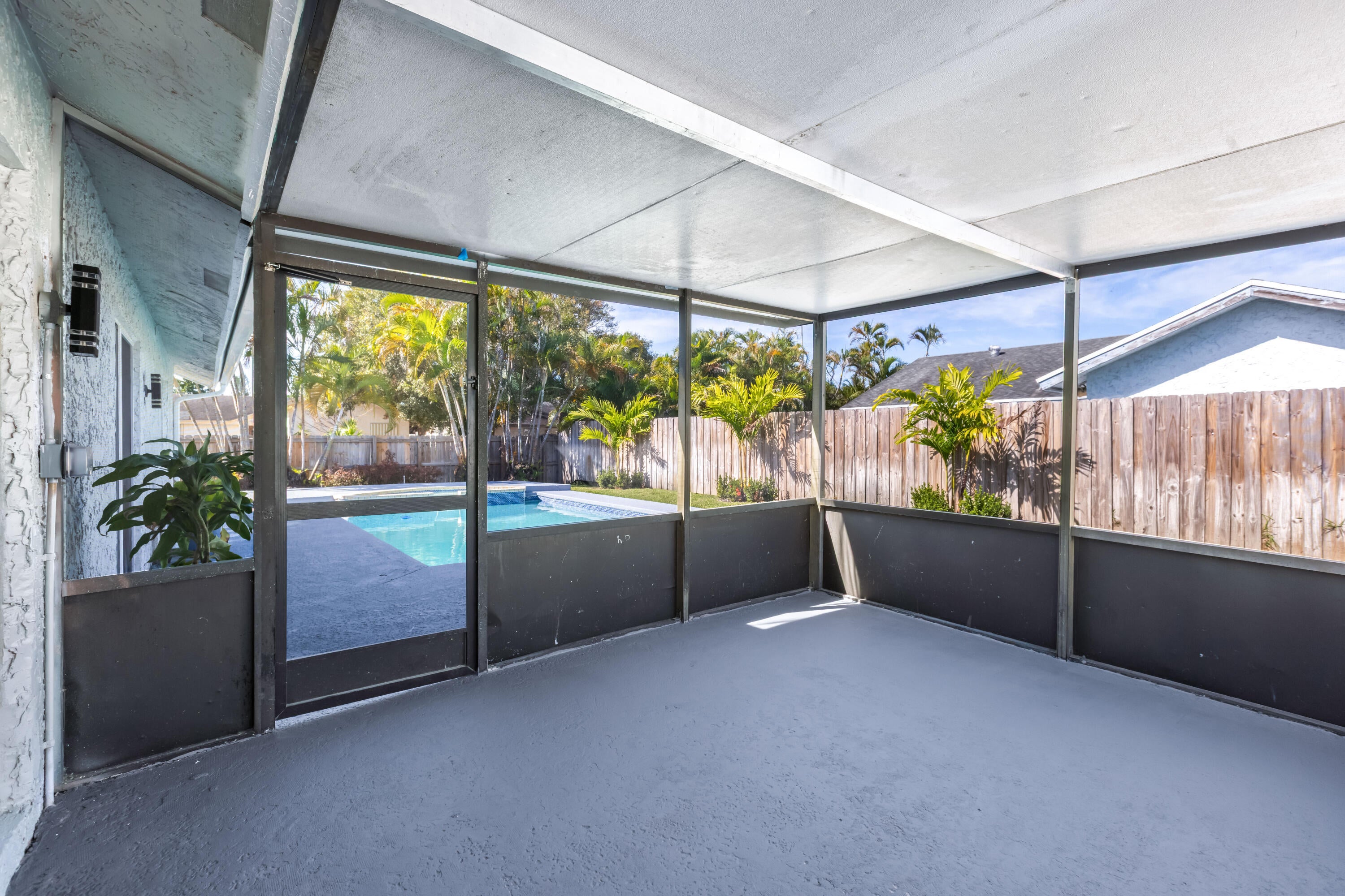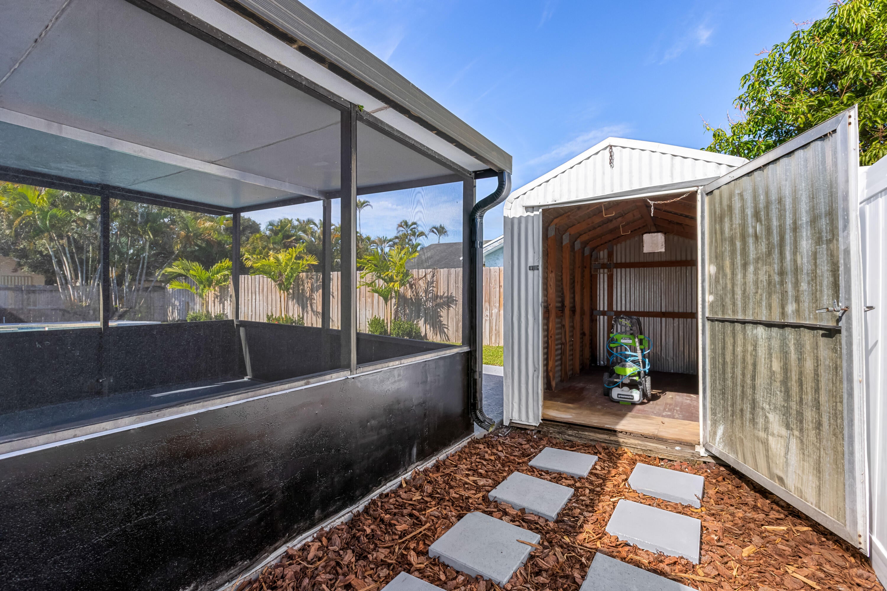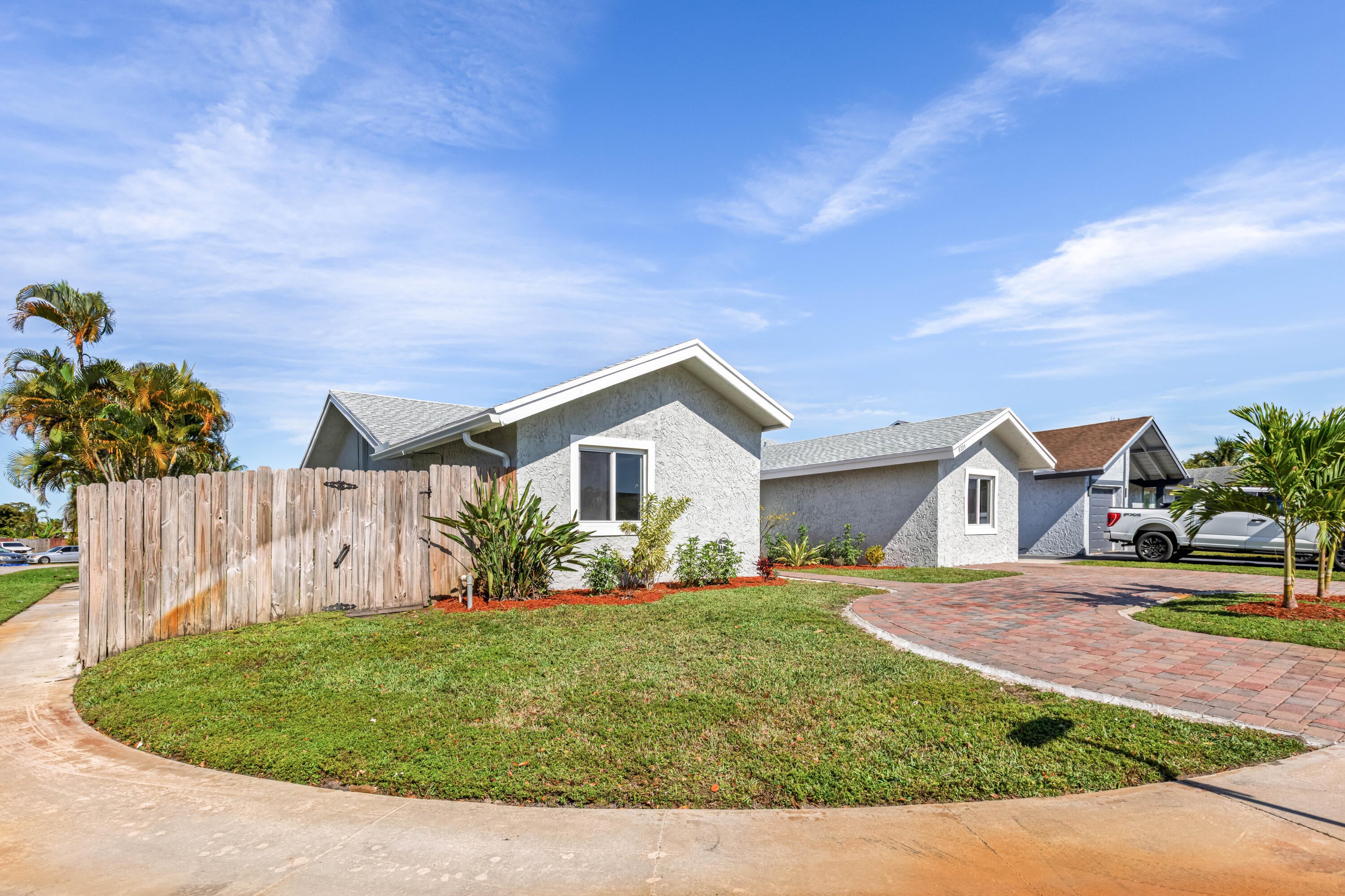 Your dream home is waiting for you in this beautifully upgraded and move-in ready home in an established neighborhood with sidewalks and NO HOA! This open concept 4/2 home offers modern finishes, IMPACT WINDOWS & SLIDING DOORS, NEW ROOF and a large FENCED-IN BACKYARD with a storage shed, pool with a waterfall and hot tub, perfect for entertaining! NEW BATHROOMS & KITCHEN newly updated. This spacious home is equipped with a washer and dryer, updated electric for TANKLESS WATER HEATER and HOT TUB! AC is less than 3 years old. Sprinkler water comes from a well! This corner lot with beautiful landscaping and a circular paver driveway has plenty of room for parking. Located within 30 minutes of the beach and major league sports and lots of restaurants and shopping! Come and see for yourself!!