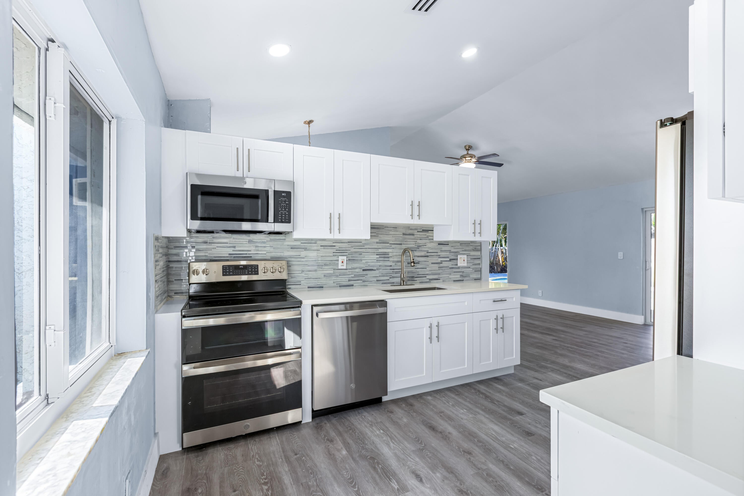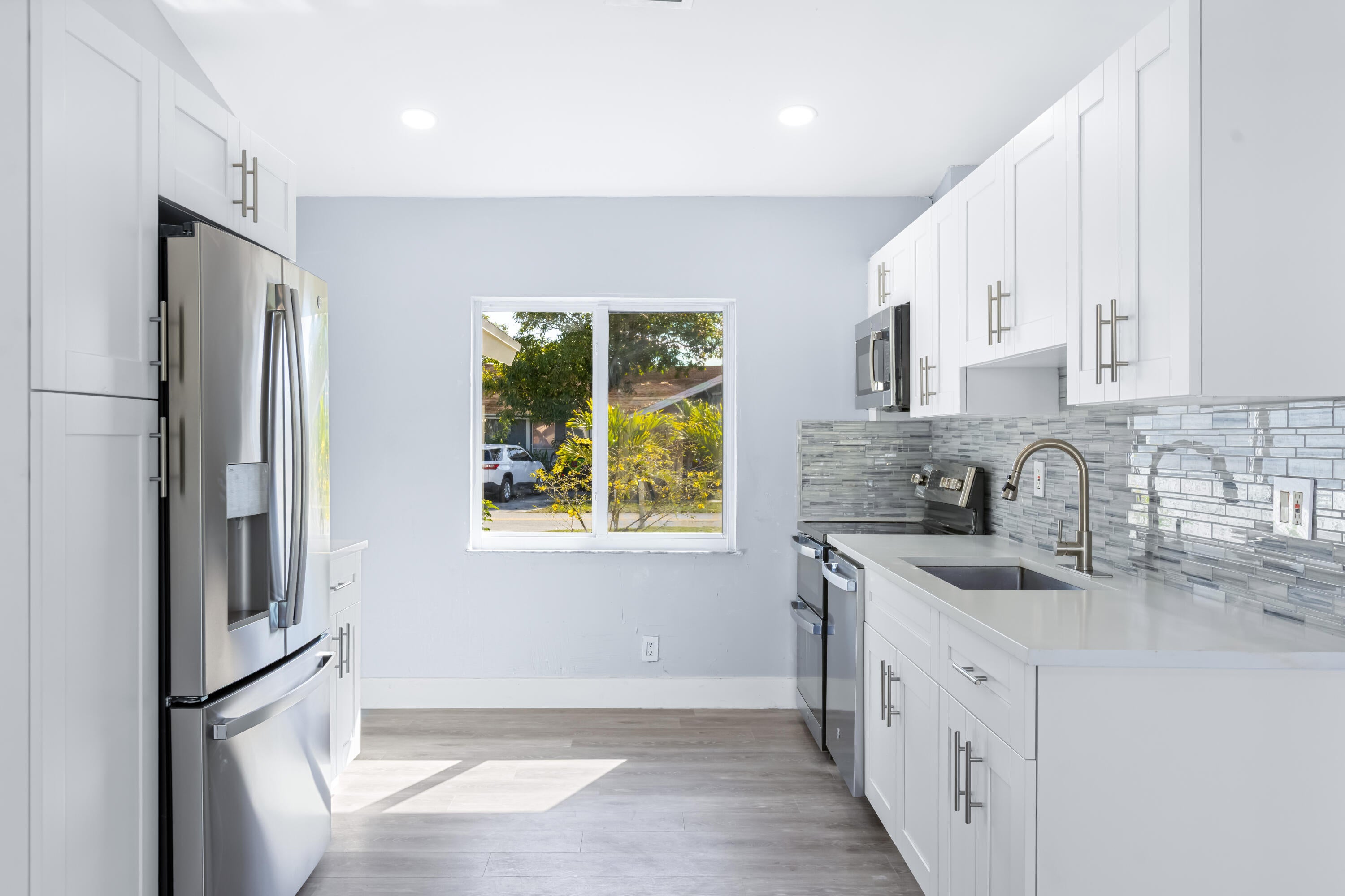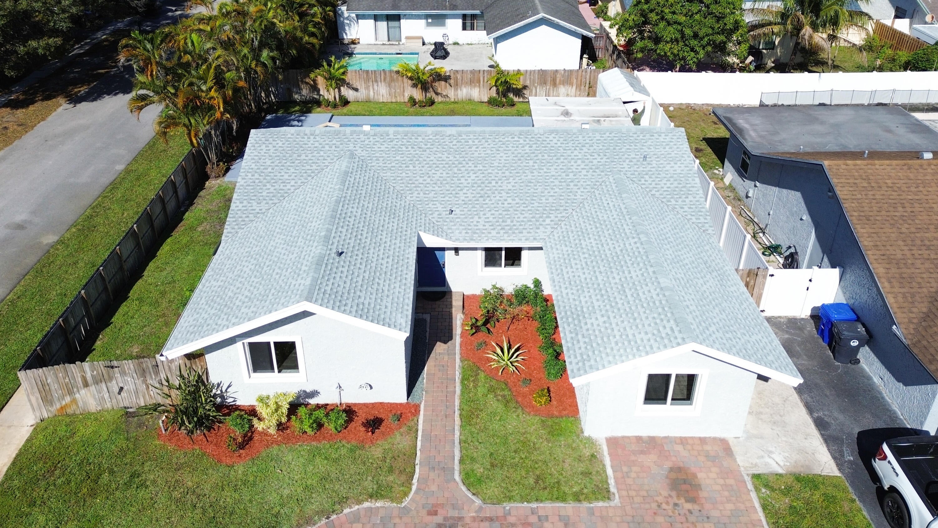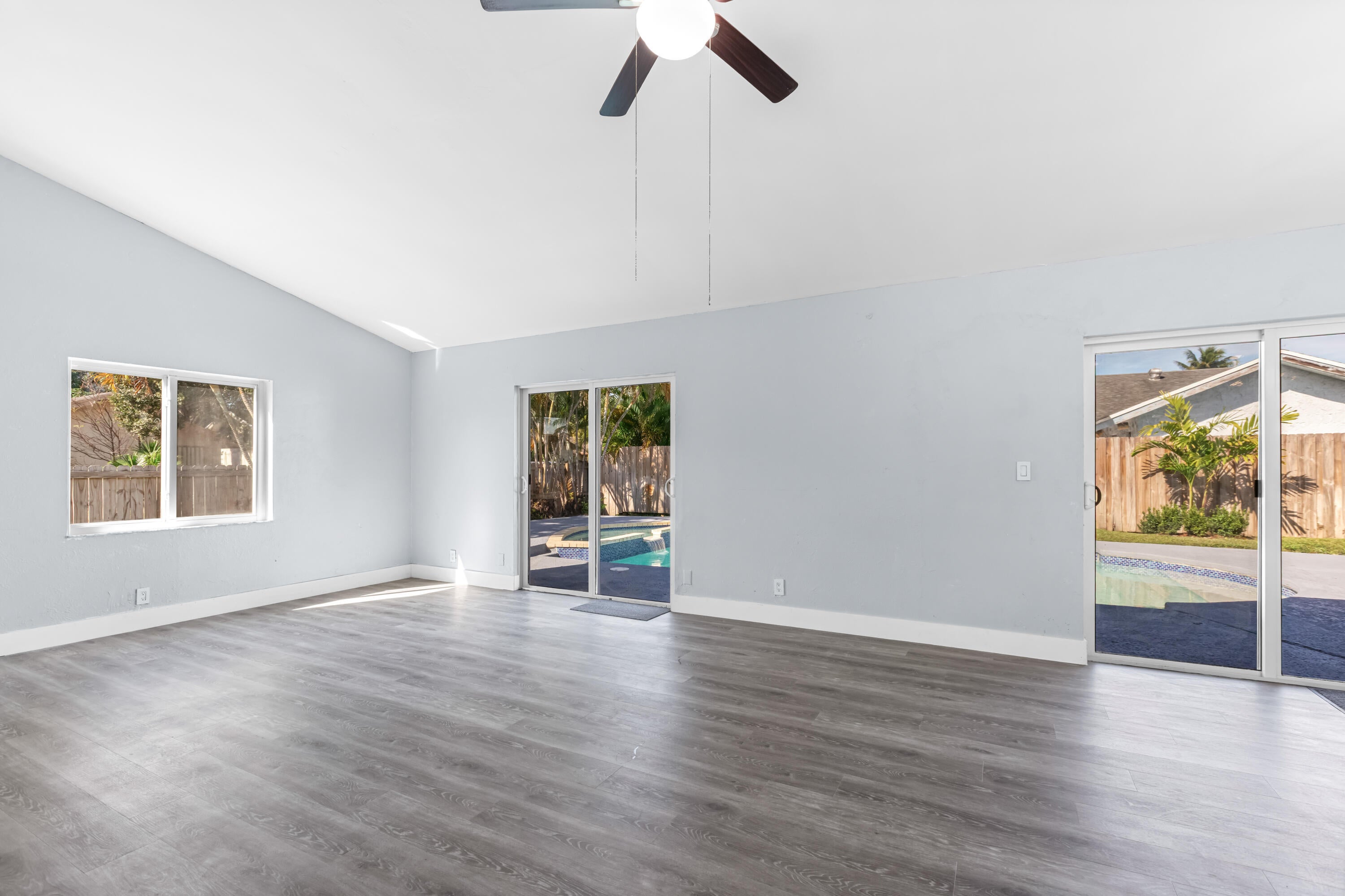 Your dream home is waiting for you in this beautifully upgraded and move-in ready home in an established neighborhood with sidewalks and NO HOA! This open concept 4/2 home offers modern finishes, IMPACT WINDOWS & SLIDING DOORS, NEW ROOF and a large FENCED-IN BACKYARD with a storage shed, pool with a waterfall and hot tub, perfect for entertaining! NEW BATHROOMS & KITCHEN newly updated. This spacious home is equipped with a washer and dryer, updated electric for TANKLESS WATER HEATER and HOT TUB! AC is less than 3 years old. Sprinkler water comes from a well! This corner lot with beautiful landscaping and a circular paver driveway has plenty of room for parking. Located within 30 minutes of the beach and major league sports and lots of restaurants and shopping! Come and see for yourself!!