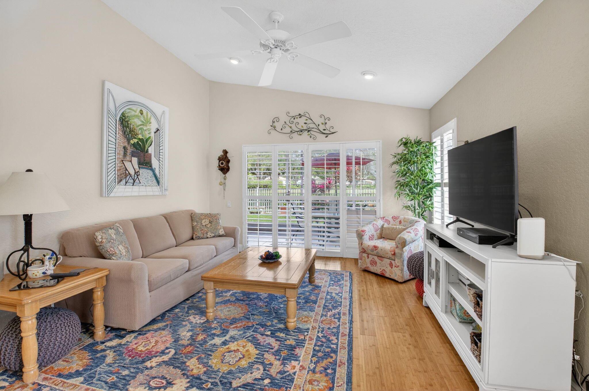 Beautiful 3BR/2BA Home in The Cascades of Boynton Beach Light, bright, and impeccably maintained, this 3-bedroom, 2-bath home with a family room and 2‑car garage sits on a private lot with no rear neighbors and a beautiful canal view surrounded by lush greenery. The main living areas feature bamboo wood flooring, while the primary bedroom offers soft carpeting. The home includes an eat‑in kitchen plus a separate dining room, plantation shutters throughout, and exterior hurricane shutters on all windows. A tiled, screened‑in patio provides the perfect spot to enjoy the peaceful setting and great view. The Cascades is known for its very active lifestyle, offering a remodeled clubhouse (2017), a cafe, and a full calendar of activities. Located just minutes from shopping,and everyday conveniences.
