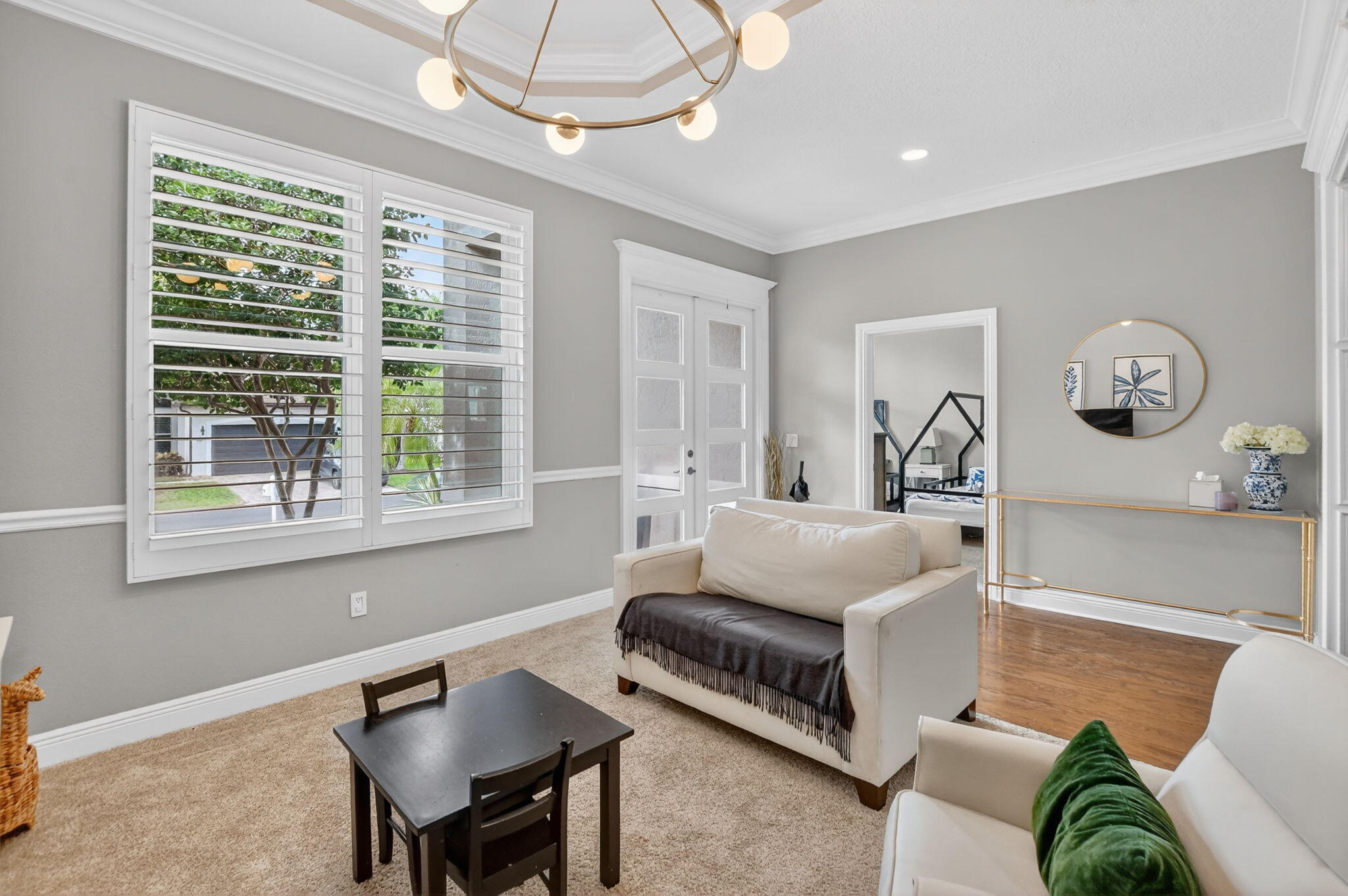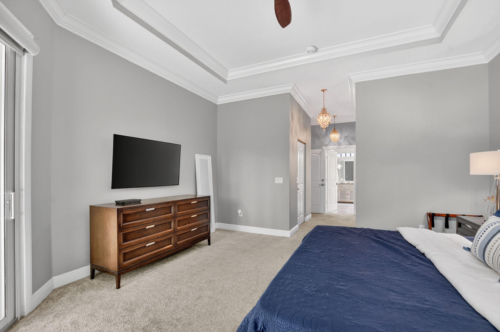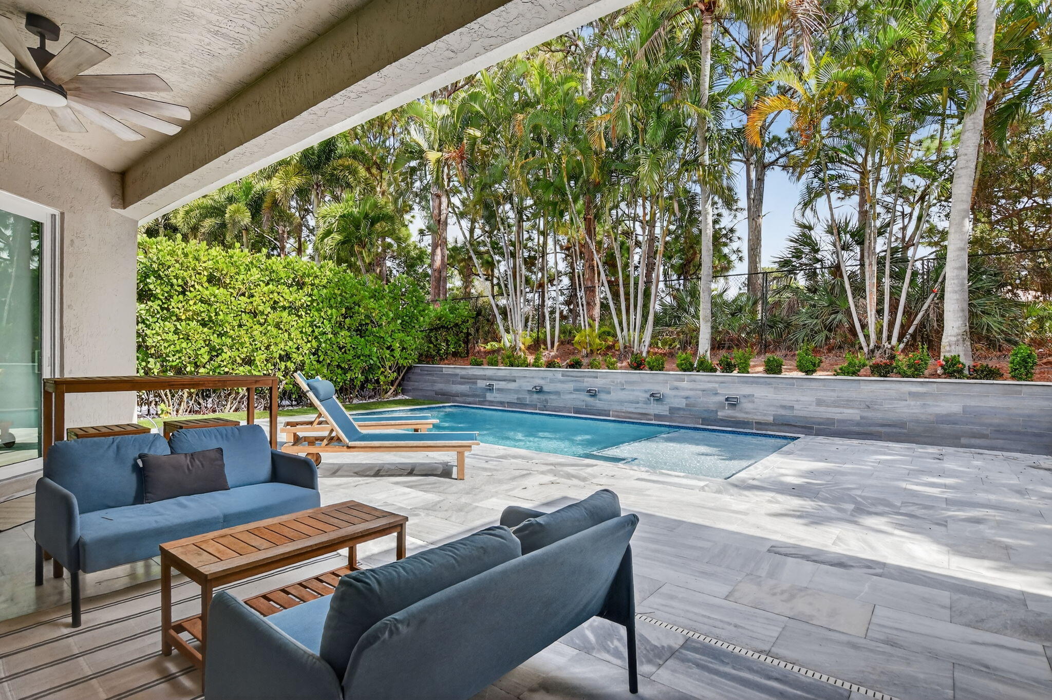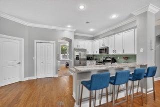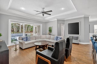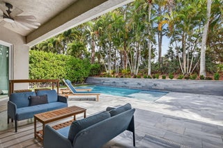 Nestled in the quaint gated community of The Hills at Lake Eden, this beautifully updated 4-bedroom pool home offers the perfect blend of comfort and coastal convenience. Located just 2 miles from the beach and moments from the shops and restaurants of famed Atlantic Avenue, the location is hard to beat. A gracious formal entry welcomes you into the living room, while the home opens up to a spacious family room, dining area, and open-concept kitchen ideal for everyday living and entertaining. The split-bedroom floor plan provides excellent privacy. The primary suite features tray ceilings, sliders to the backyard, and a stunning spa-like bath with dual vanities, a freestanding soaking tub, and a glass-enclosed shower.Wood flooring, brand-new carpet, marble countertops, and top-of-the-line appliances are just a few highlights of the recent renovation. Step outside to your private backyard retreat, complete with a newer heated, resort-style pool featuring a sun shelf and water features. The outdoor space also offers a large covered patio and low-maintenance turf areas perfect for relaxing or entertaining year-round.
