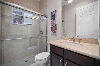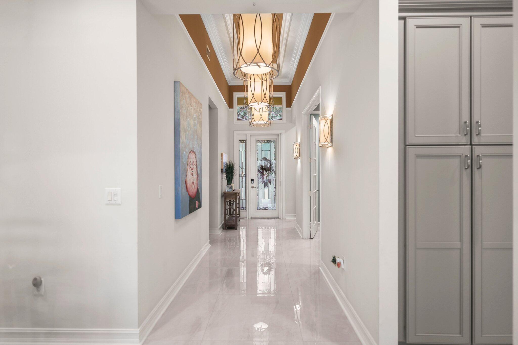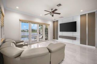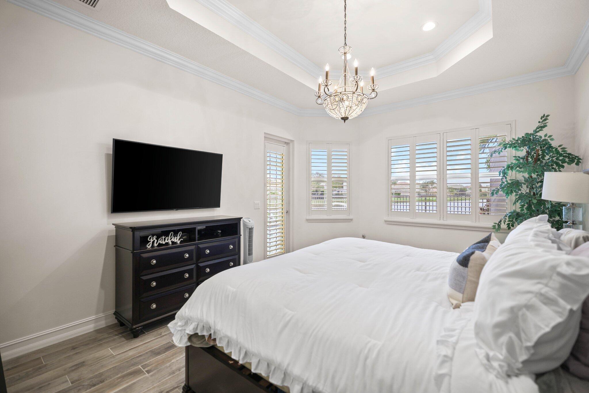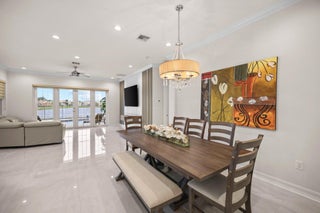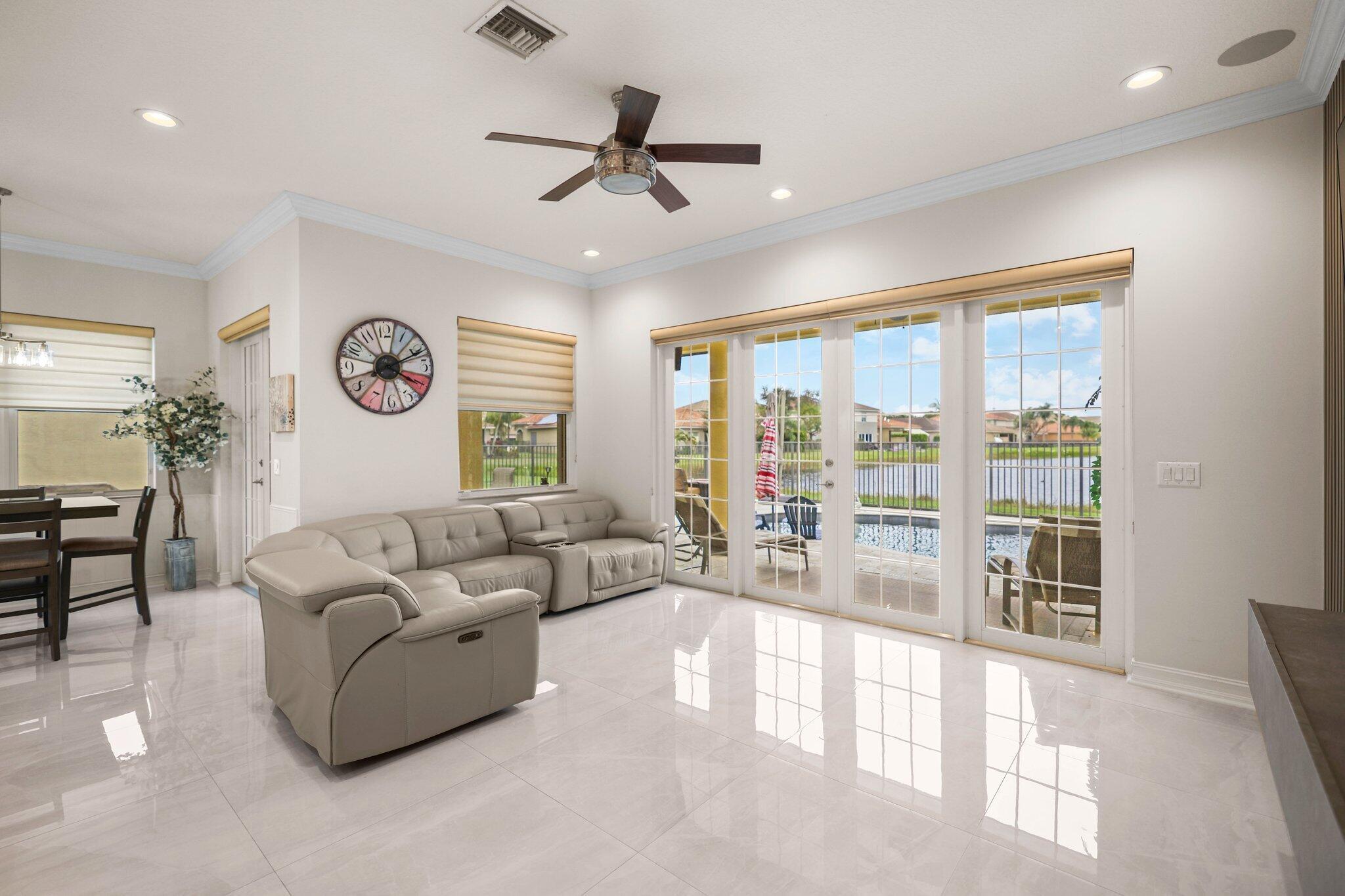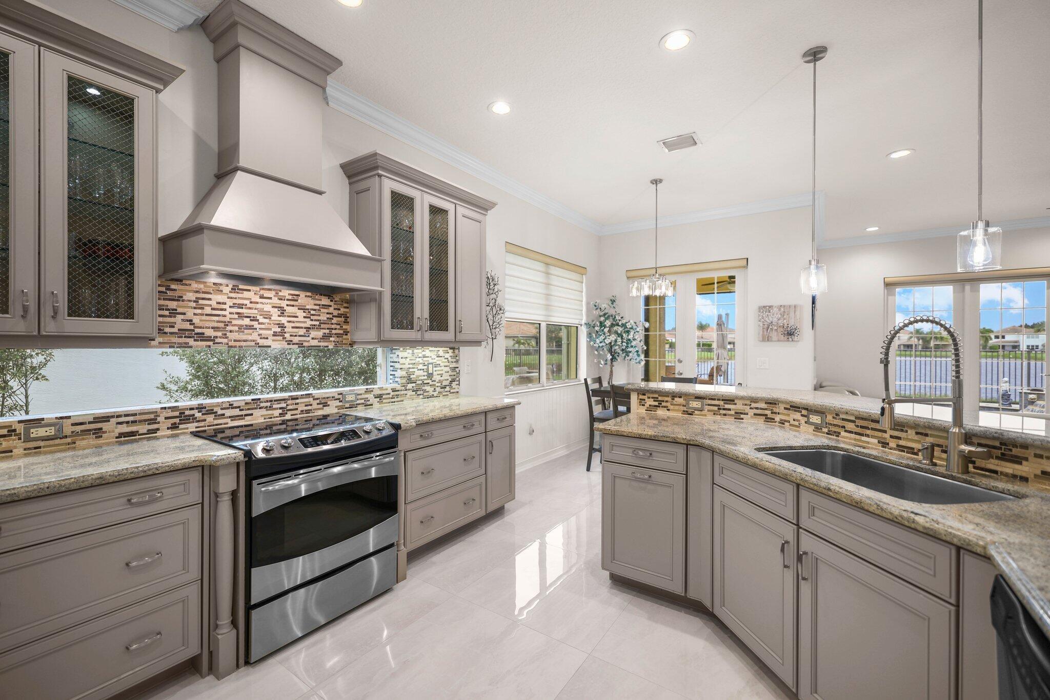 Experience refined lakefront living in this exquisite Bimini model located in the prestigious Canyon Trails community. Thoughtfully renovated and impeccably maintained by the original owners, this elegant single-story residence offers 3 bedrooms, 3 bathrooms, and a private den. Set on a premier expansive lakefront lot, the home showcases serene sunrise views complemented by a heated pool and spa, creating a true private retreat. Notable features include accordion hurricane shutters, Phantom retractable outdoor screens, new porcelain tile flooring throughout, and a beautifully redesigned open-concept kitchen ideal for both everyday living and entertaining.