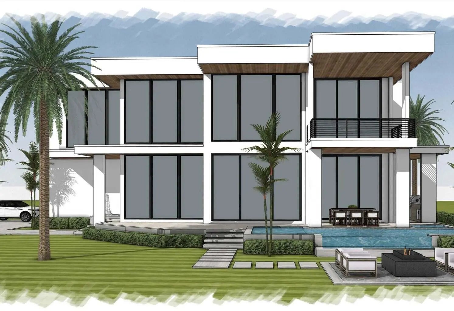 Introducing an exceptional new-construction luxury residence on prestigious Hypoluxo Island, one of South Florida's most private, exclusive, and sought-after waterfront communities. This two-story modern masterpiece offers 4 bedrooms, 4 full baths, a powder room, and a dedicated cabana bath, all thoughtfully designed. The approach begins with a striking front entry water feature and a covered arrival terrace that opens into a dramatic double-height foyer. The main level features an elegant wine cellar, private elevator, generous dining hall, and a spectacular great room with soaring two-story ceilings and walls of glass that blend indoor and outdoor living. The chef's kitchen includes a walk- in pantry and flows seamlessly to the expansive outdoor living area,