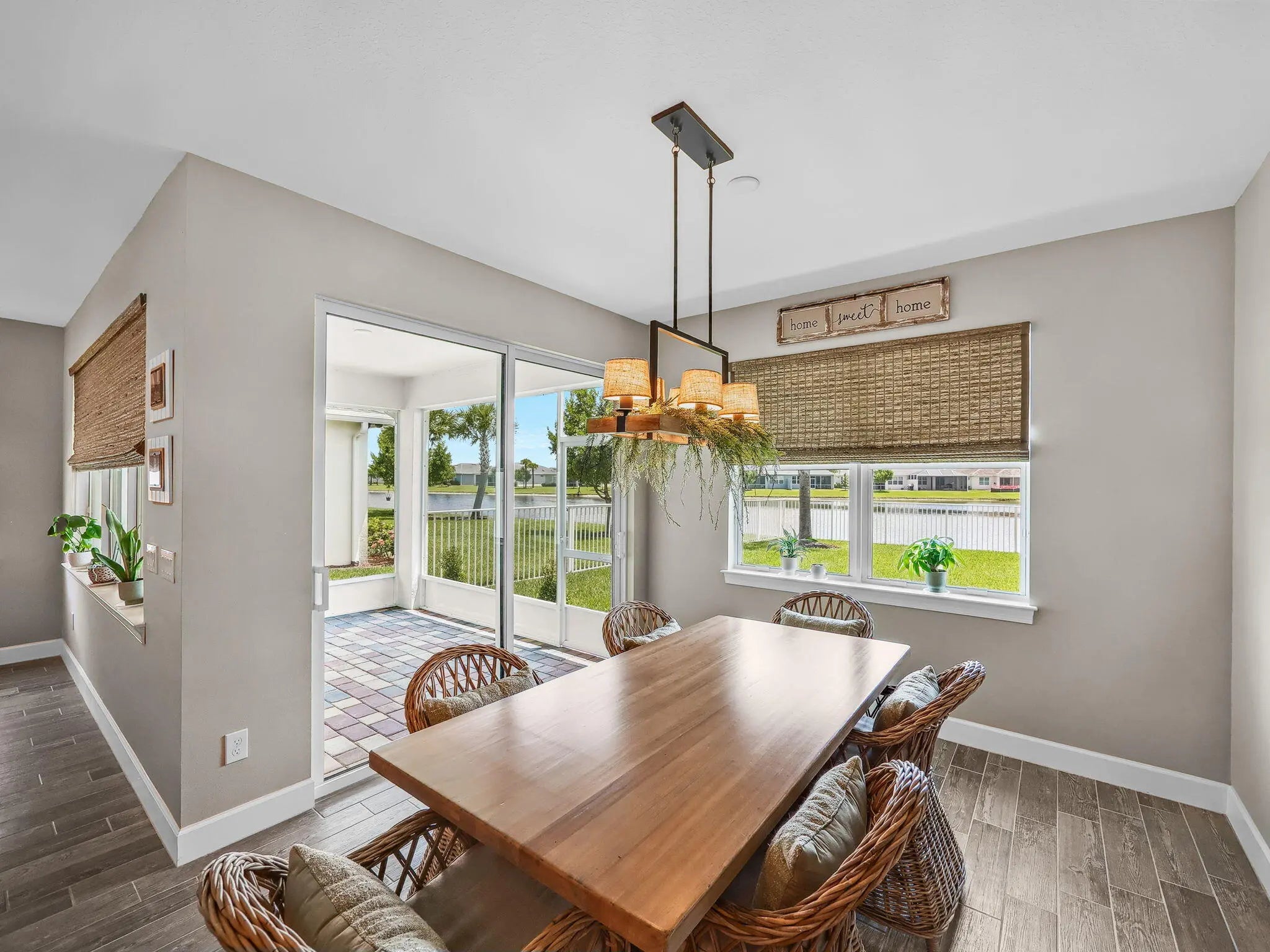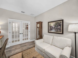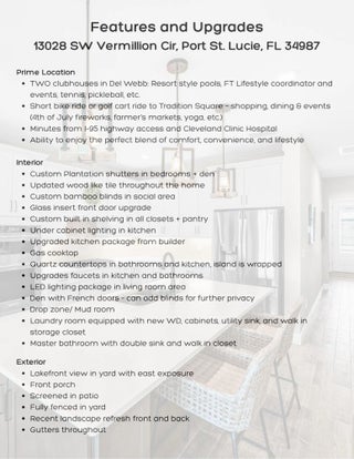 Perfectly positioned on a tranquil, east-facing lake, this impeccably appointed 2-bedroom residence with a private den and 2 baths showcases elevated design, thoughtful upgrades, and effortless elegance. Wood-look tile flooring flows seamlessly throughout, complemented by quartz countertops and a chef-inspired kitchen featuring an upgraded appliance package with gas cooktop--ideal for both everyday living and entertaining. French doors enclose the den, offering a flexible space well suited for a sophisticated home office, media lounge, or guest retreat. The interior is further enhanced by custom closet built-ins, plantation shutters, bamboo blinds, under-cabinet lighting, an LED living room package, and a glass-insert front entry that adds architectural character and natural light.