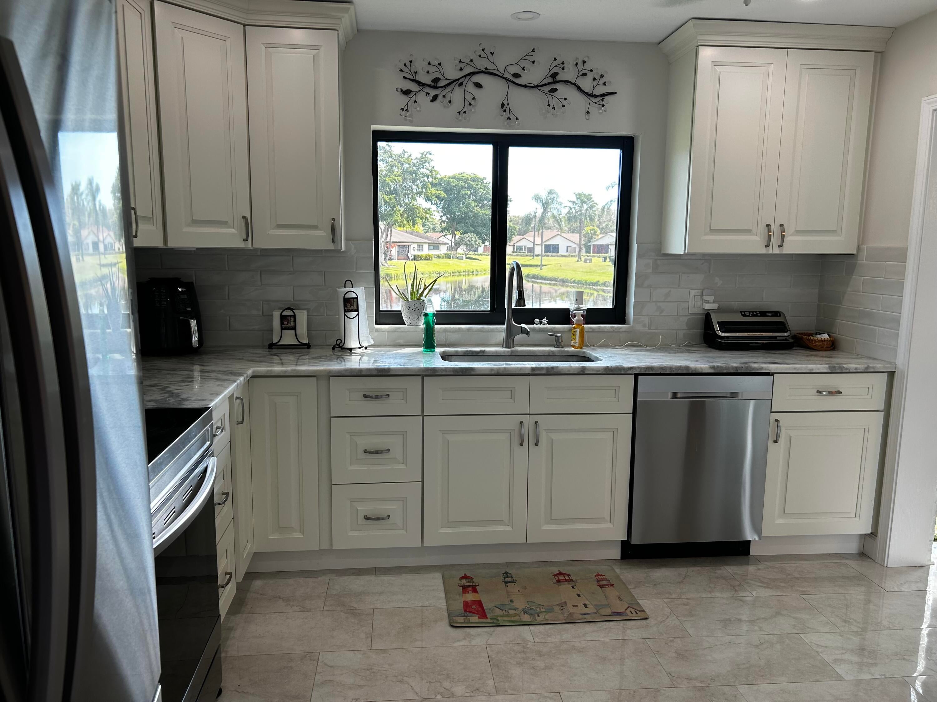 Spectacular waterfront property featuring over $70,000 in upgrades. Enjoy beautiful tile flooring, impact-resistant glass, a brand-new kitchen, upgraded electrical, and fully renovated bathrooms. Breathtaking water views can be enjoyed from every window, filling the home with natural light and serenity. It even has electric block out shades on the back window for total privacy.The community offers multiple clubhouses and a wide variety of activities to suit every lifestyle. Perfectly located close to beaches, restaurants, and shopping, you're truly in the heart of it all. Don't miss this one-of-a-kind gem -- a rare opportunity to own waterfront luxury at its fine
