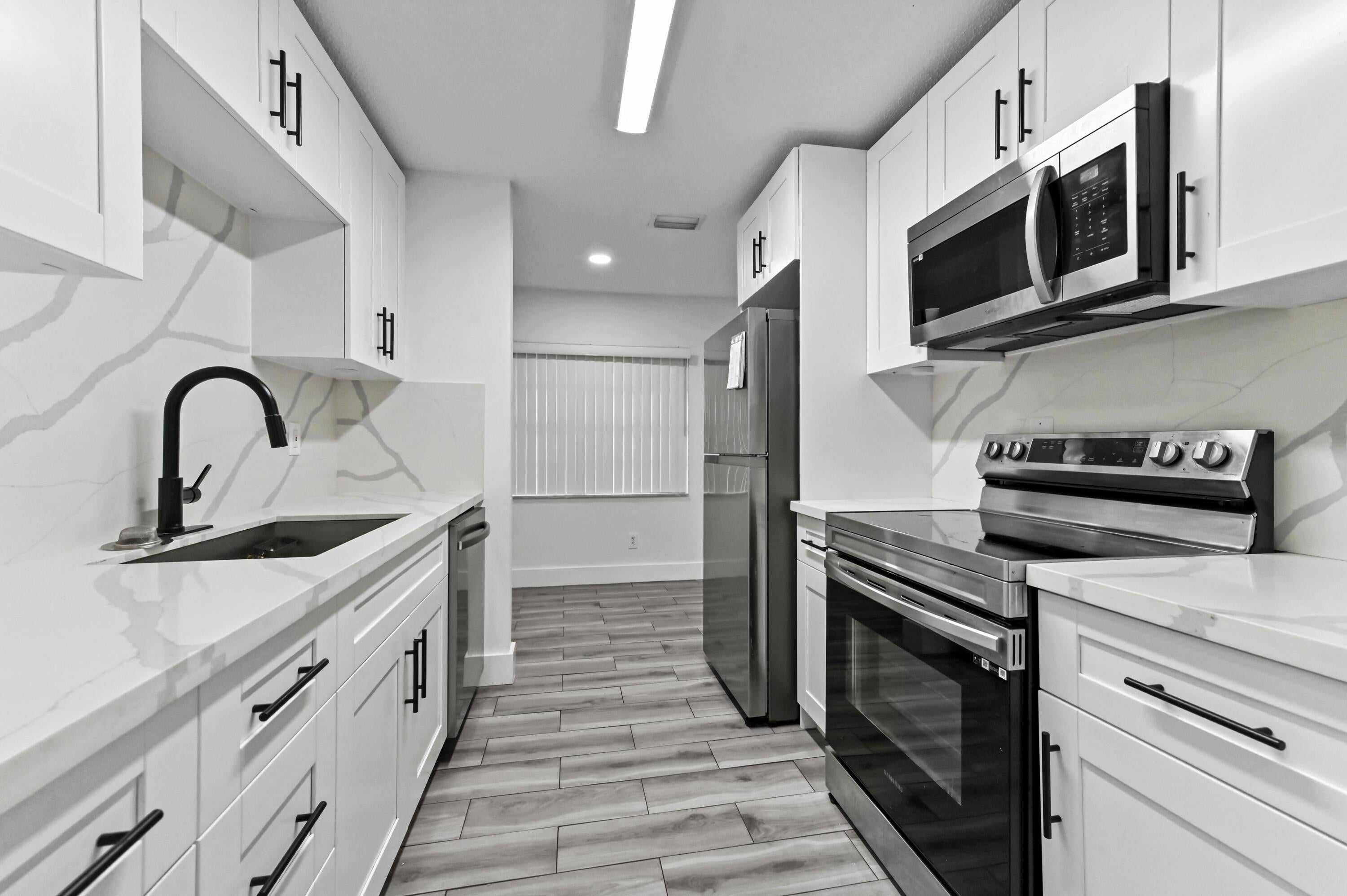 Welcome to Summit Pines! This charming 1-story home offers 1,456 sq ft of comfortable living space featuring 3 bedrooms and 2 bathrooms. This beautifully updated home featuring a fresh, modern interior and a light, airy feel throughout. From the moment you step inside, you'll notice the sleek tile flooring, recessed lighting, and contemporary color palette that create a clean and inviting atmosphere.The stunning kitchen has been completely upgraded with white shaker cabinetry, stainless steel appliances, modern hardware, and stylish countertops, offering both functionality and a crisp, designer look. The layout flows seamlessly into the main living areas, making it perfect for everyday living and entertaining.Enjoy spacious open-concept living and dining areas filled with natural light, plus sliding glass doors that lead to the backyard, blending indoor and outdoor living. Each bedroom offers comfortable space, great light, and the same modern finishes carried throughout the home.