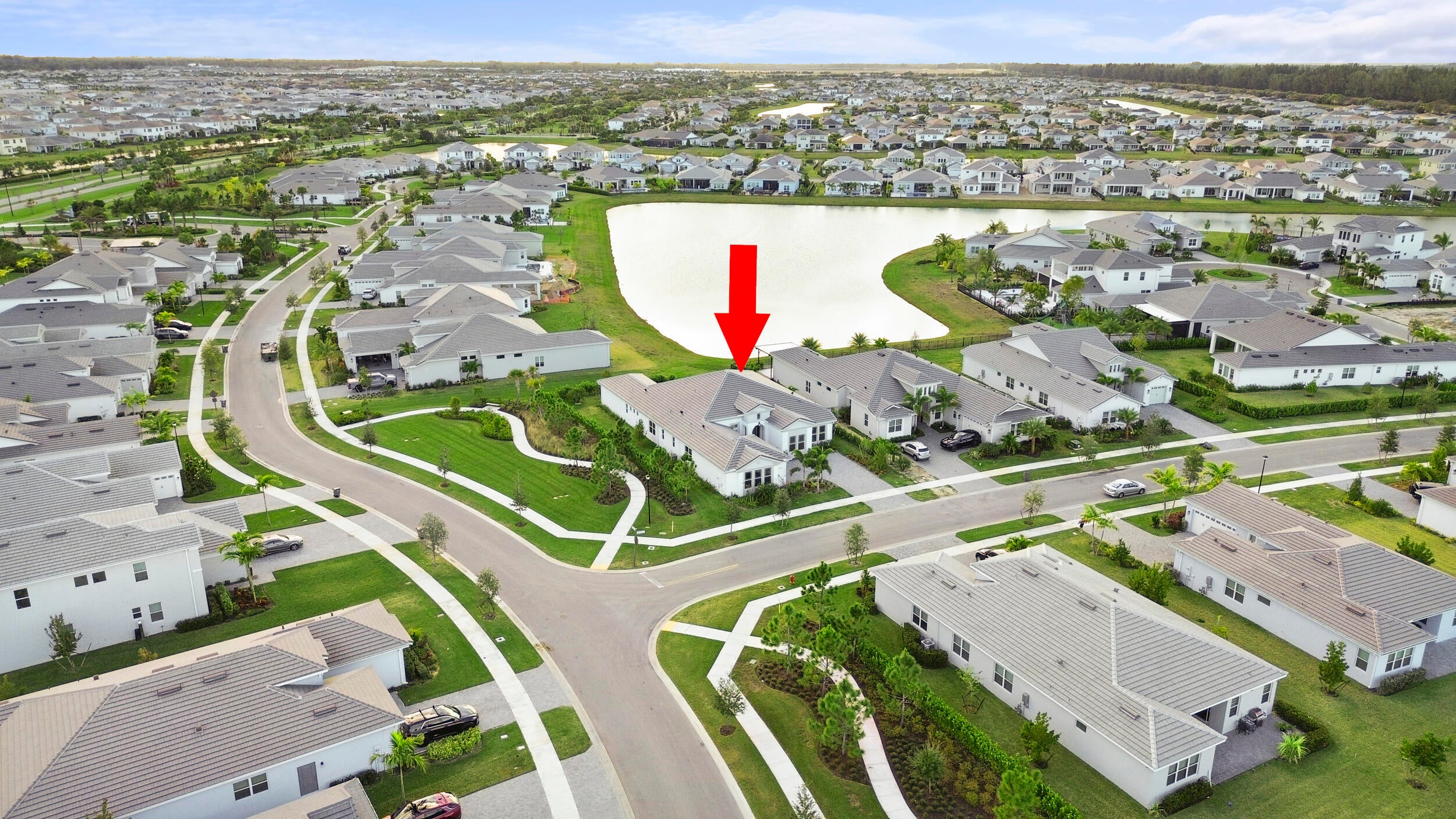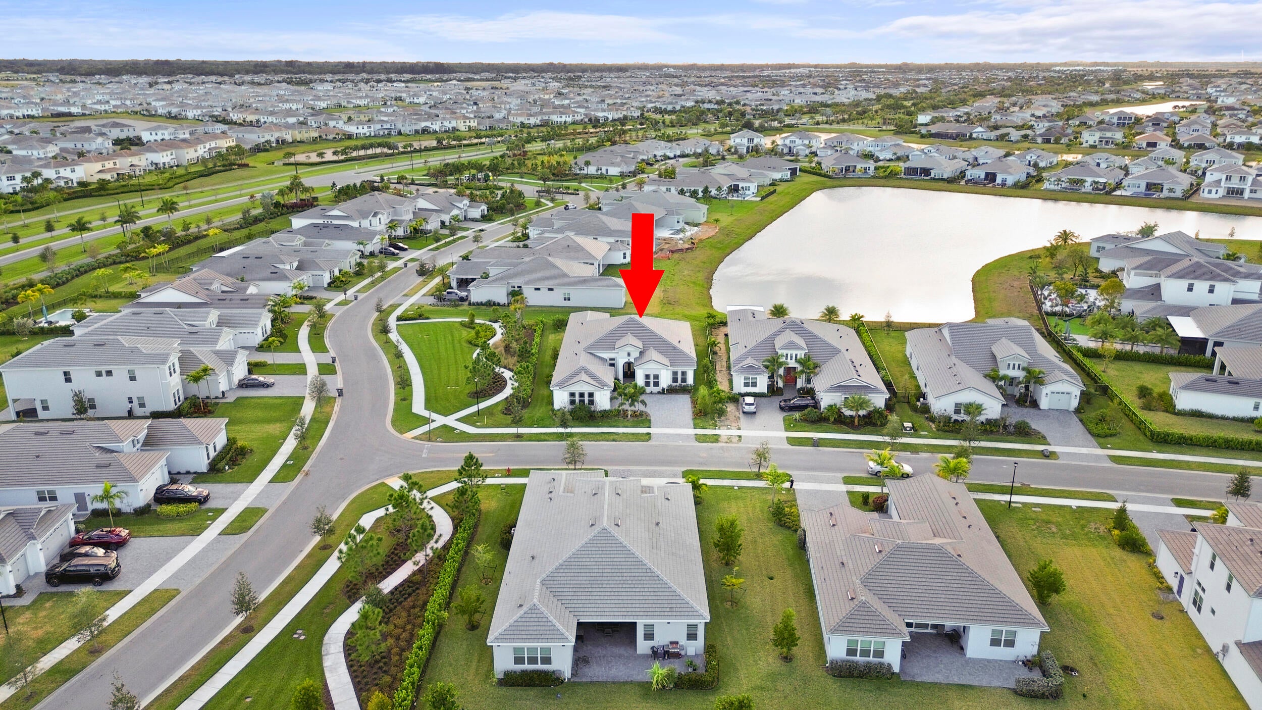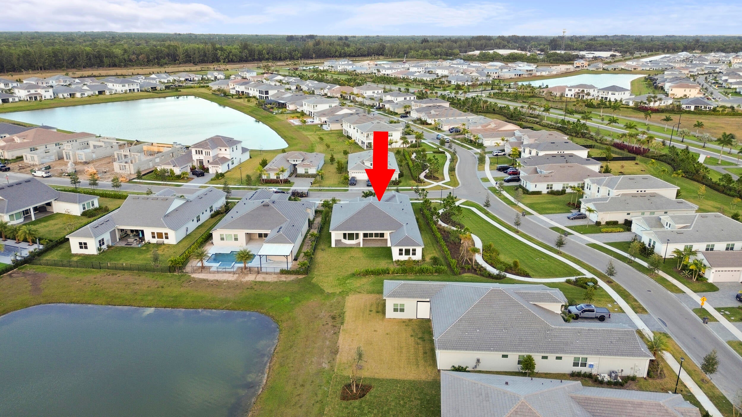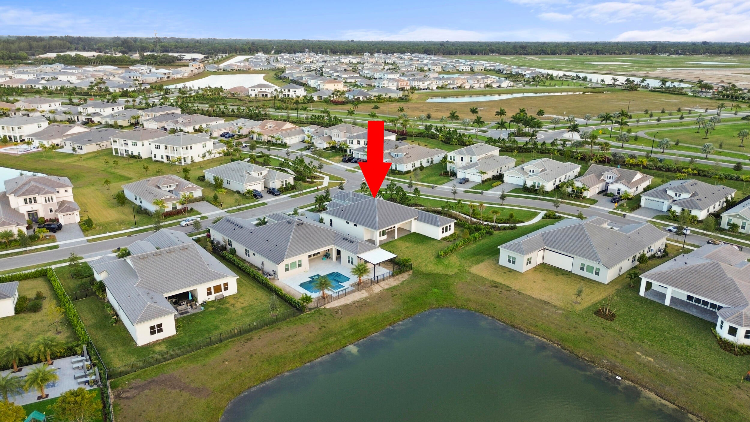 Welcome to 5741 Beechnut Dr. an exceptional lakefront Atlantic Collection, Jupiter Grand model located in the highly sought-after Westlake, FL community the Woodlands of Westlake. Situated on a premium corner lot, this stunning home offers enhanced privacy, breathtaking long lake views, and unforgettable sunsets from the backyard that truly set this property apart.This expansive 5-bedroom, 5.5-bathroom residence is thoughtfully designed for both luxury living and everyday comfort. Each bedroom features its own en-suite bathroom, providing privacy and convenience for family members and guests alike. An added half bath enhances functionality for entertaining.As you step inside, you're welcomed by a bright, open layout filled with natural light. The main living area is anchored by upgraded 12-foot sliding glass doors, creating a seamless indoor-outdoor flow and showcasing stunning water views. The chef's kitchen features upgraded bay window heights overlooking the lake, making the space as scenic as it is functional and perfect for both casual meals and entertaining. This Jupiter Grand model includes a separate den, ideal for a home office, study, or flex space, along with a beautifully appointed dry bar that elevates the home's entertainment appeal. The primary suite offers peaceful lake views and a spa-inspired bathroom, creating a true private retreat. Outside, enjoy tranquil lakefront living with plenty of room to relax or entertain while taking in the spectacular sunset views. A daily reminder of Florida's natural beauty. Community & Lifestyle: Westlake is a master-planned community known for its resort-style amenities and vibrant lifestyle. Residents enjoy access to Westlake Adventure Park, featuring a lagoon-style pool with water slide, splash pad, sports courts, dog park, walking and biking trails, and regular community events. The community offers a perfect blend of recreation, relaxation, and convenience. Nearby Hospitals & Healthcare: The home is conveniently located near several major medical facilities, including Palms West Hospital, Wellington Regional Medical Center, St. Mary's Medical Center, Palm Beach Gardens Medical Center, and the West Palm Beach VA Medical Center, providing easy access to quality healthcare. Prime Location: Centrally located with quick access to shopping, dining, grocery stores, and major roadways, Westlake offers the perfect balance of peaceful living and everyday convenience, all within a short drive to Palm Beach County's beaches and attractions. This rare lakefront Jupiter Grand with extensive upgrades, privacy, and breathtaking views is an exceptional opportunity to enjoy luxury living in one of Palm Beach County's most desirable communities.