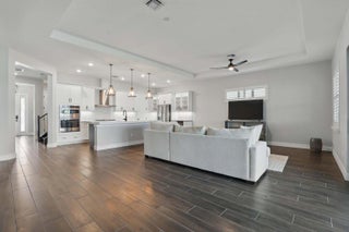 An exceptional lakefront retreat where luxury meets effortless Florida living. Perfectly positioned within the prestigious Cresswind Palm Beach active adult community, this refined residence offers sweeping views of the largest lake in the neighborhood and a serene, resort-inspired setting designed for elevated everyday living.From the moment you enter, the home reveals a sophisticated blend of timeless design and modern comfort. The chef's kitchen is both striking and functional crafted for those who appreciate quality and style. Premium GE Profile appliances, including a wall oven and microwave, are complemented by custom soft-close cabinetry in elegant white and rich gray tones, upgraded hardware, and a crisp designer backsplash. The dramatic quartz island with a mitered edge anchors the space, while a 36-inch cooktop, architectural hood, glass-front display cabinetry, butcher-block pantry counter, and wine cooler create an environment equally suited for refined entertaining or intimate evenings at home. The primary suite is a private sanctuary, offering direct access to the extended screened patio and uninterrupted lake views. Designed with spa-level finishes, the primary bath features upgraded tile, quartz countertops, frameless glass shower, and curated fixtures that evoke a luxury resort experience. A custom-designed walk-in closet provides exceptional storage with a tailored feel. Upstairs, a spacious loft delivers flexible luxury, ideal for a private lounge, media room, or refined guest retreat. Throughout the home, three beautifully appointed bathrooms showcase upgraded tile and designer finishes, while plantation shutters add architectural elegance and light control throughout. A den with stately double-door entry offers a polished space for a private office, library, or executive study. Luxury upgrades continue with real hardwood flooring in the primary suite, office, and staircase, laminate flooring upstairs, and wood-look tile throughout the main living areas. Outdoors, the extended screened patio becomes an extension of the living space perfectly framed by tranquil water views and a fenced yard that provides privacy without compromising the scenery. The garage features epoxy flooring, and the extended three-car driveway ensures ample parking for guests. Completing this exceptional offering is a whole-house generator, delivering seamless, automatic power to essential systems including air conditioning, lighting, and refrigeration providing absolute peace of mind year-round. This is not simply a home, it is a statement of refined living, designed for those who expect comfort, elegance, and uncompromising quality. All this in the Prestigious Cresswind at Westlake a residential community offering a range of amenities tailored for active adults 55+. Move-in ready, newly finished home. World-class amenities, Clubhouse, Very active community, Silver Award Winner - Best of 55+ Housing Awards (National Association of Home Builders)" "2021 "Top 100 Places to Live" (ideal Living Magazine)" The community clubhouse, managed by a full-time lifestyle director, offers a SmartFIT Training Center powered by EGYM, event and game rooms, an arts and crafts studio, pickleball and tennis courts, a dog park, resort-style and resistance pools, a spa, outdoor event plaza, and much more. Westlake Adventure Park amenities include a lagoon pool with a 3-story slide, a splash pad, cabanas, lawn space for parties, an outdoor concert pavilion, basketball courts, an adult pool clubhouse (lodge), a playground, a dog park. As an owner, you also have access to Westlake's Adventure Park. Cresswind HOA covers lawn maintenance, internet and the community amenities.