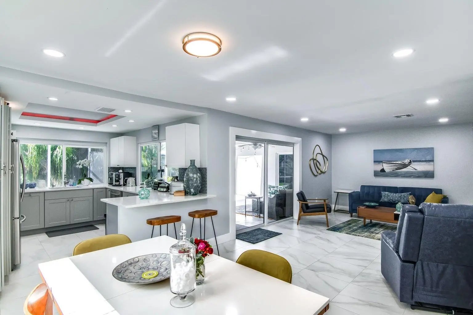 Welcome to this charming ranch-style home, perfectly situated in the heart of College Park in Lake Worth Beach. This renovated 3 bedroom, 2 bathroom residence is filled with natural light and features impact glass throughout. Enjoy serene morning walks just steps from the Intracoastal Waterway, with breathtaking sunrises and expansive water views. Step outside to a backyard oasis, complete with a hot tub, outdoor fire pit, and plenty of space for entertaining. Located just minutes from downtown Lake Worth's vibrant shops and restaurants, and a short drive from The Park golf course, this home blends comfort, style, and convenience.