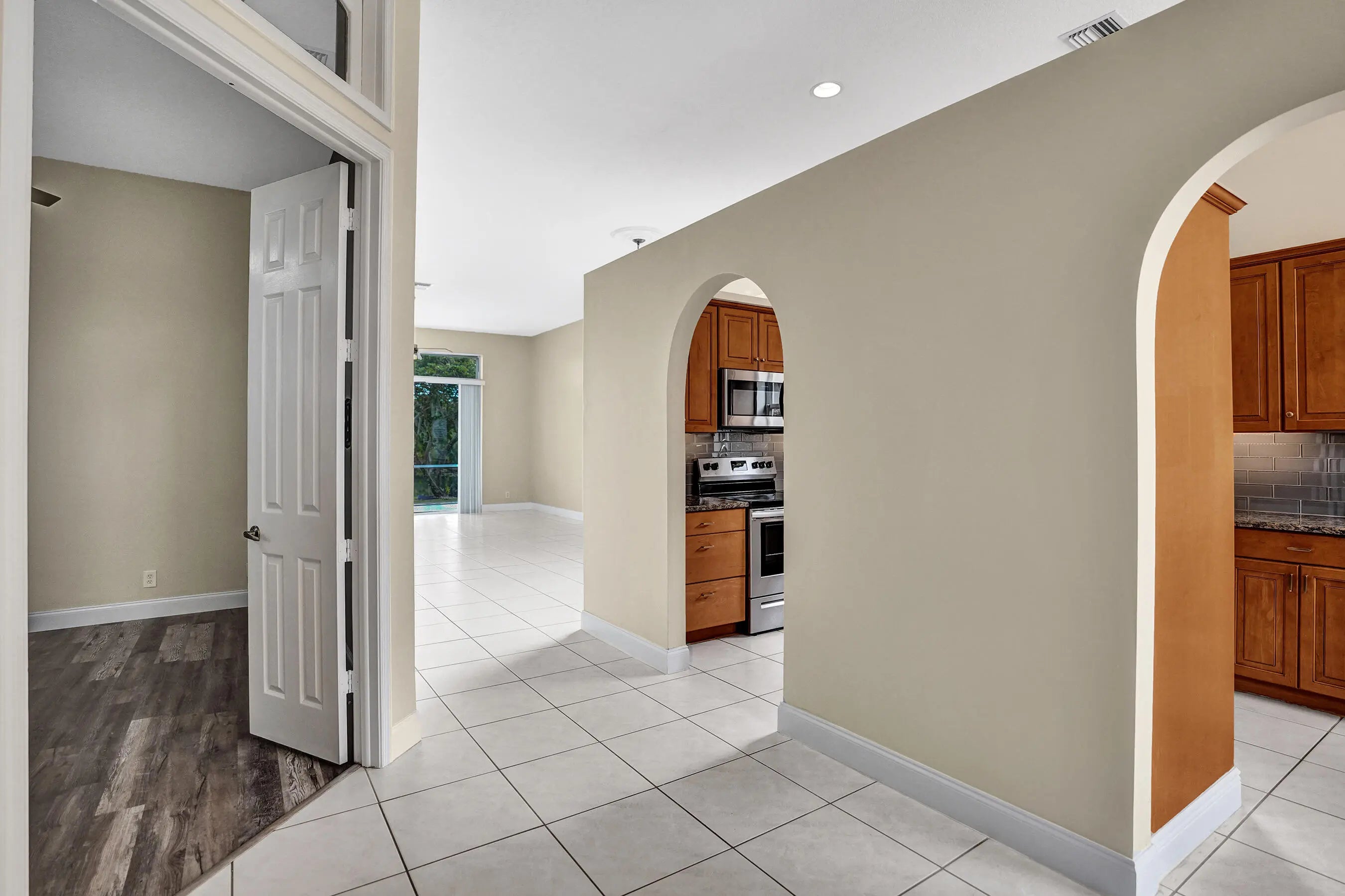 This exceptional three bedroom two bathroom unfurnished annual rental offers a rare blend of modern refinement and tranquil living in Delray Beach. Thoughtfully remodeled in 2022, the home is filled with natural light and an open, airy layout that immediately feels both welcoming and serene. The kitchen is beautifully appointed with a sleek glass backsplash and updated appliances, creating a space that is as functional as it is visually refined. Generously sized closets throughout the home provide ample storage, allowing for an uncluttered and effortless lifestyle.The property has been extensively upgraded to offer long term comfort and confidence, including a new roof installed in 2022, a new refrigerator in 2024, and a new water heater, new dishwasher, and new air conditioning